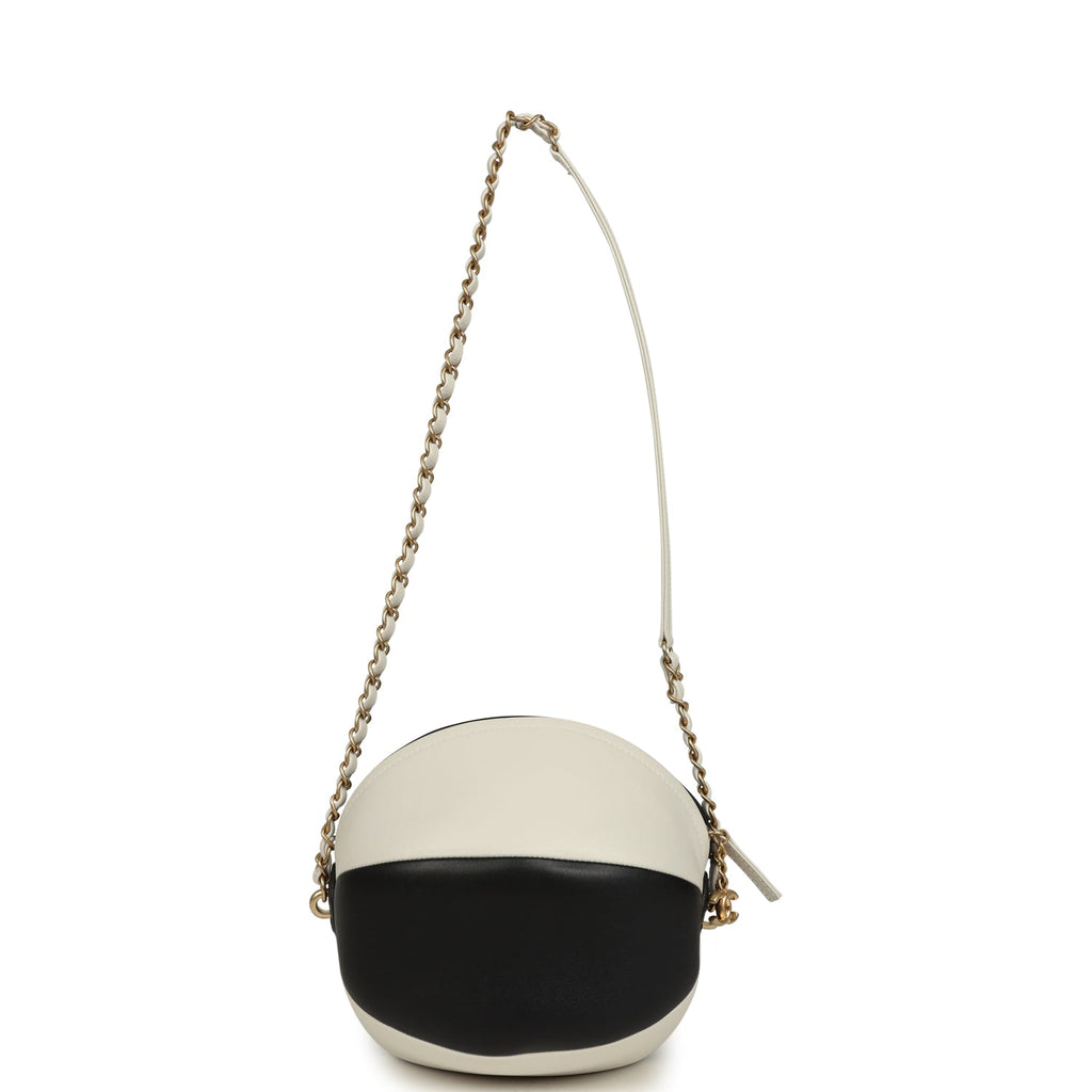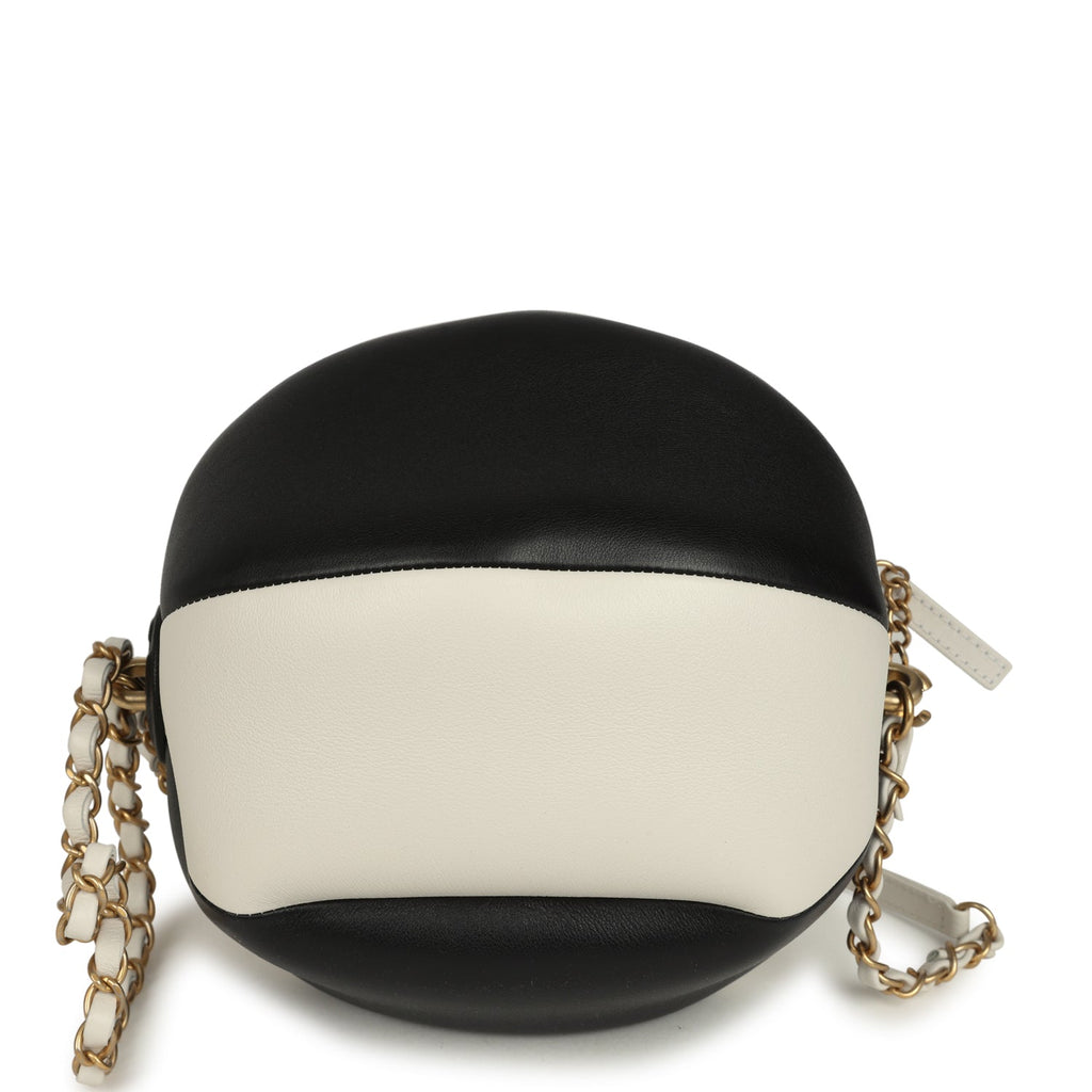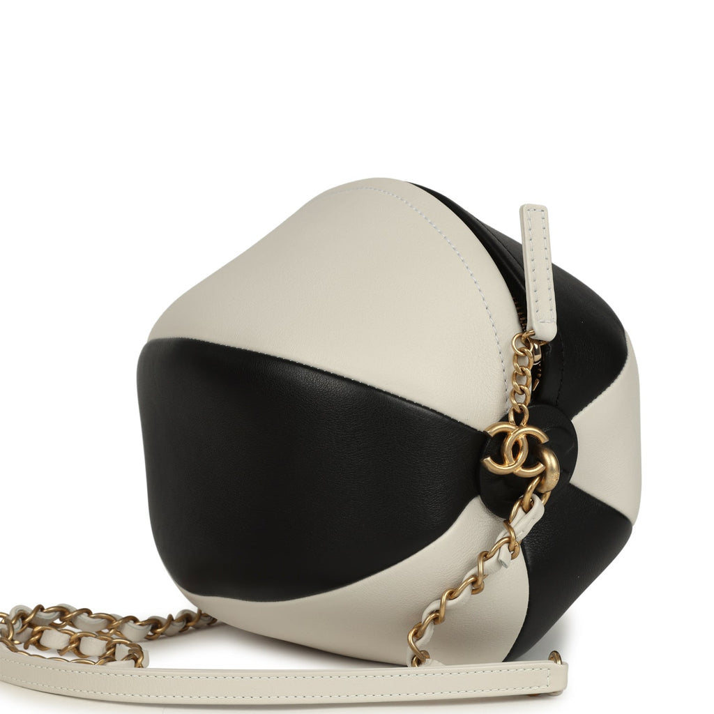 Chanel Coco Beach Ball Bag Black and White Calfskin Antique Gold Hardware