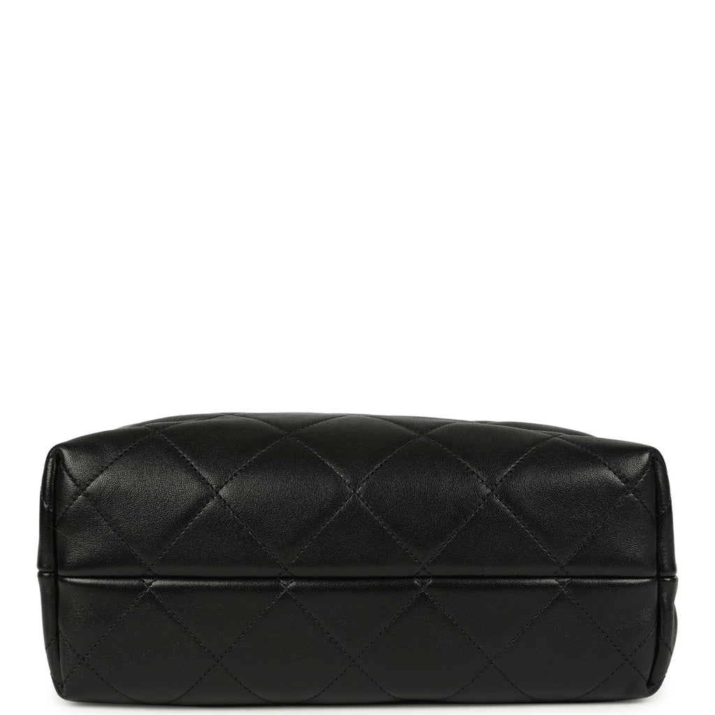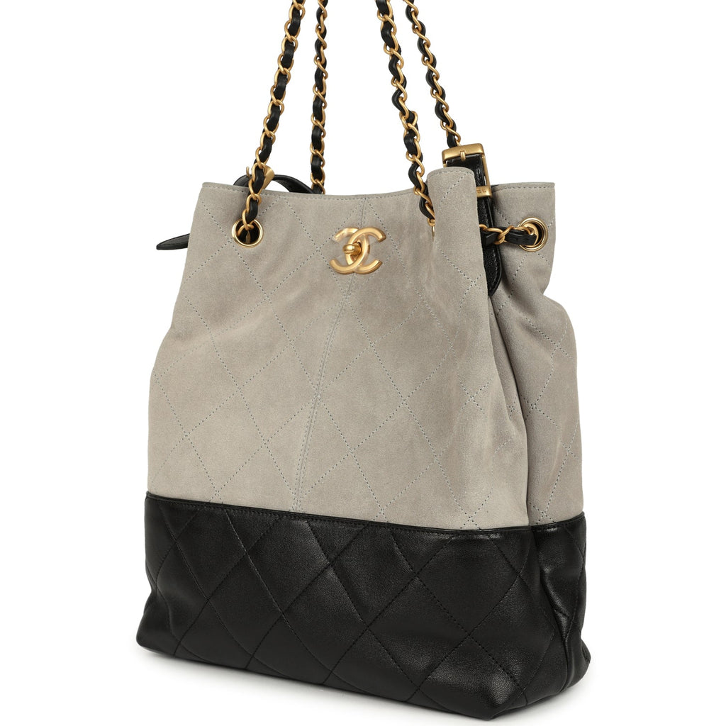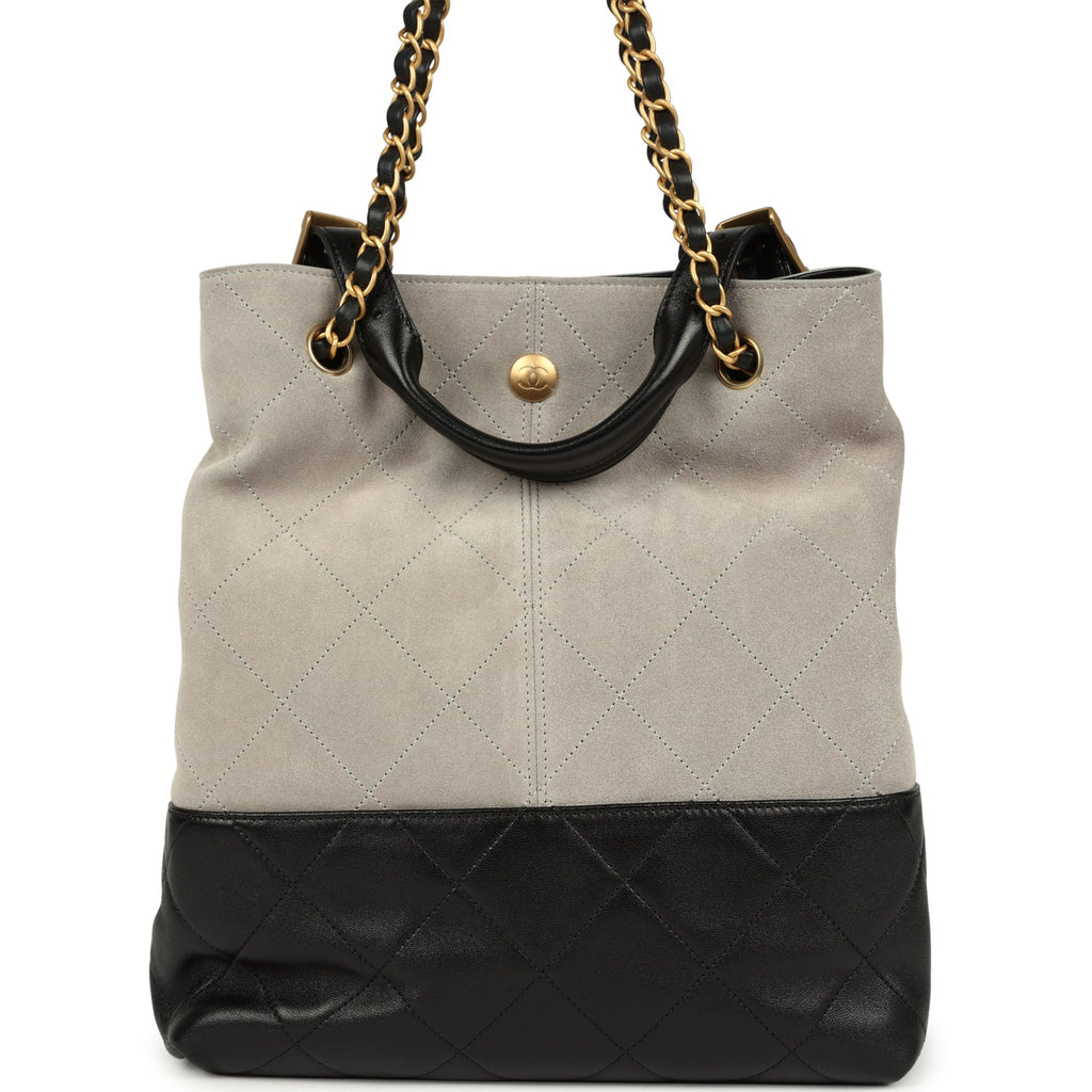 Chanel Coco Shopping Bag Dark Grey Suede and Black Shiny Lambskin Brushed Gold Hardware