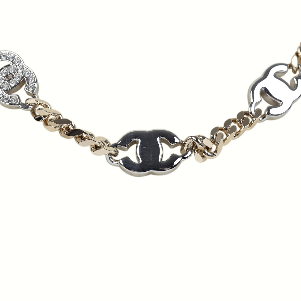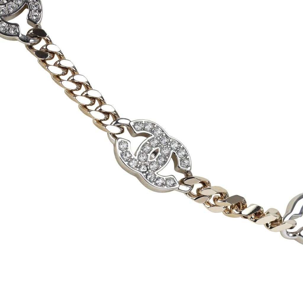 Chanel Crystal CC Choker Necklace Silver Tone and Light Gold Tone Hardware
