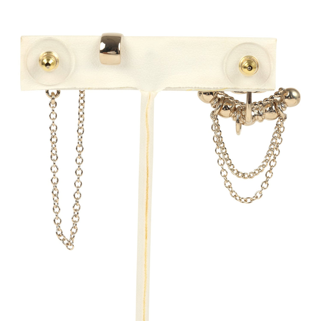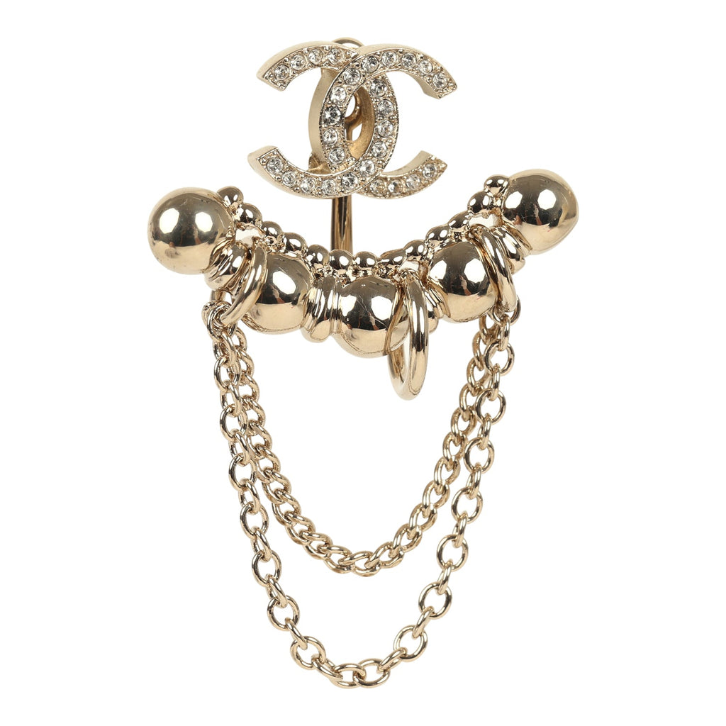 Chanel Crystal CC Dangle & Chain Link Ear Cuff Earrings Light Gold Tone Hardware