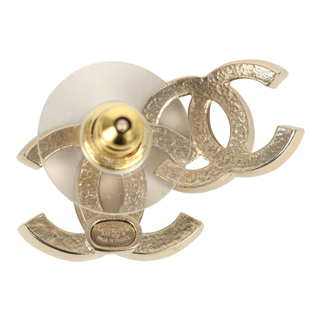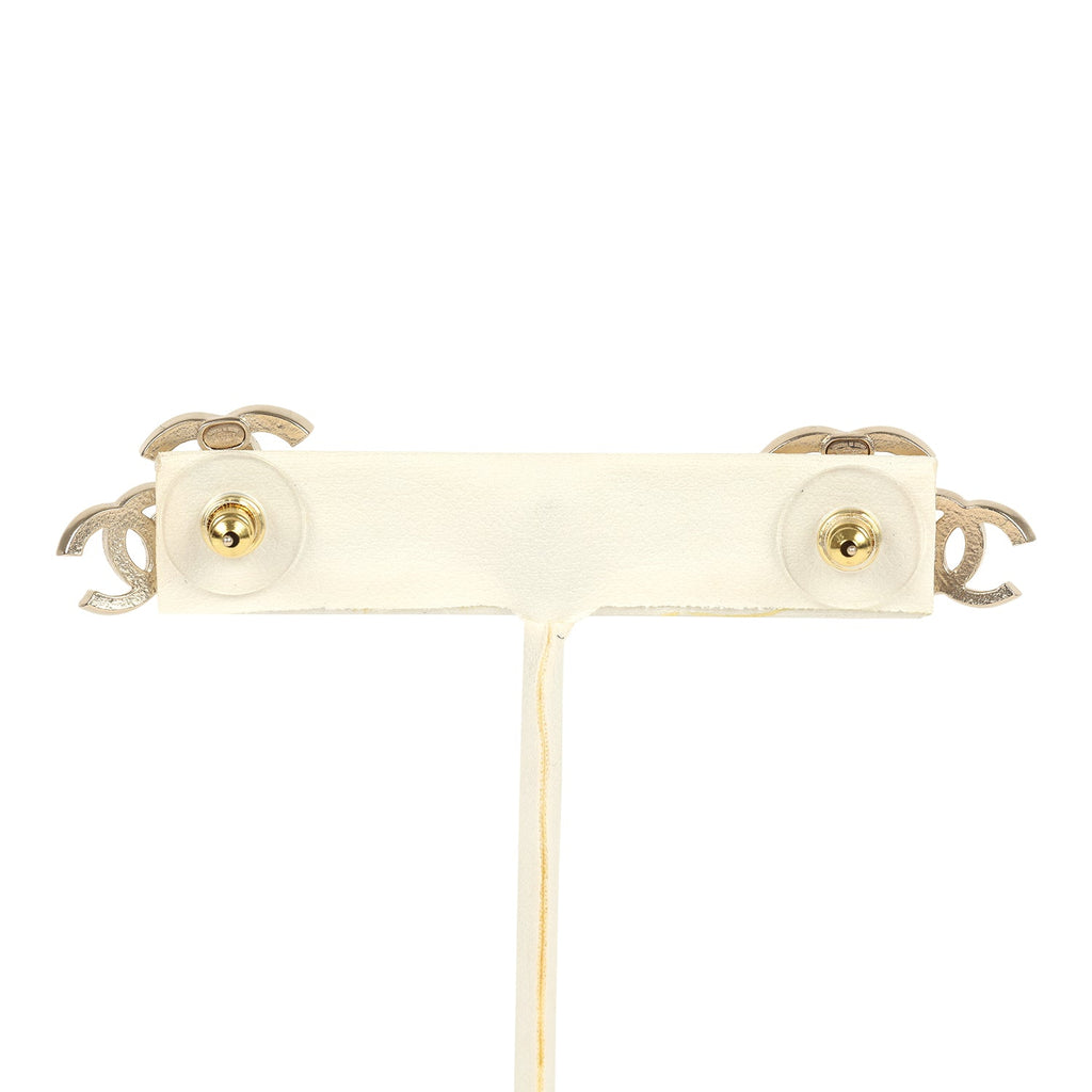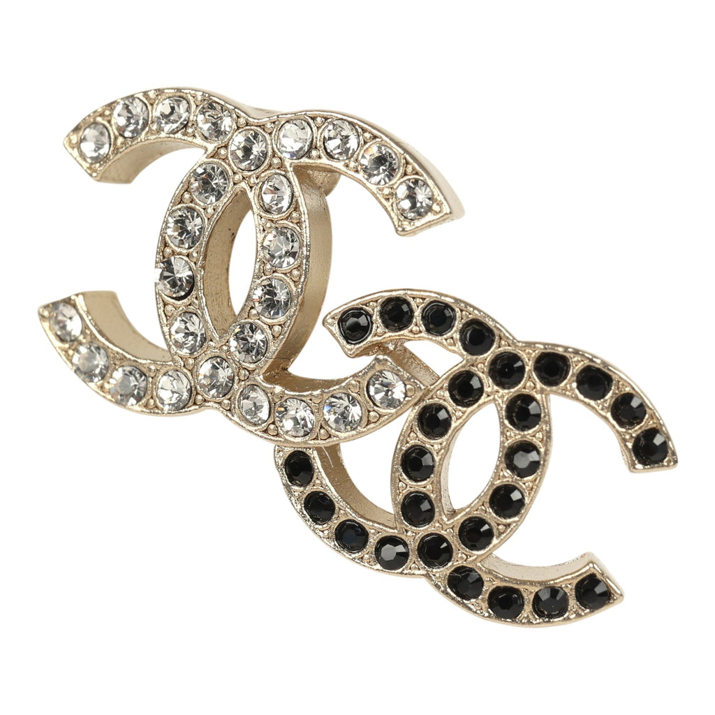 Chanel Double CC Crystal Stud Earrings Black Gold Tone Hardware