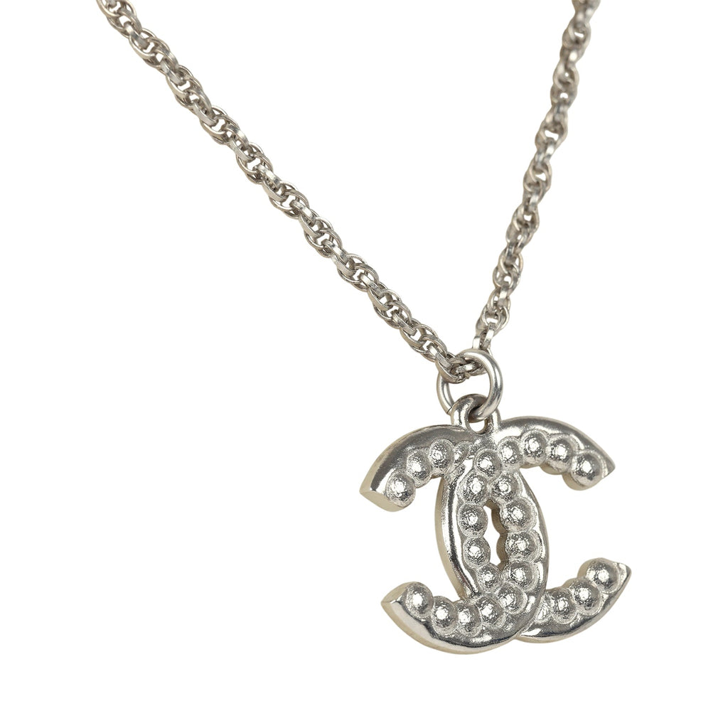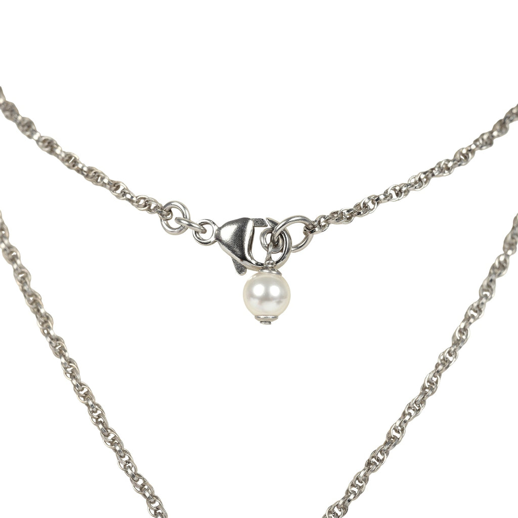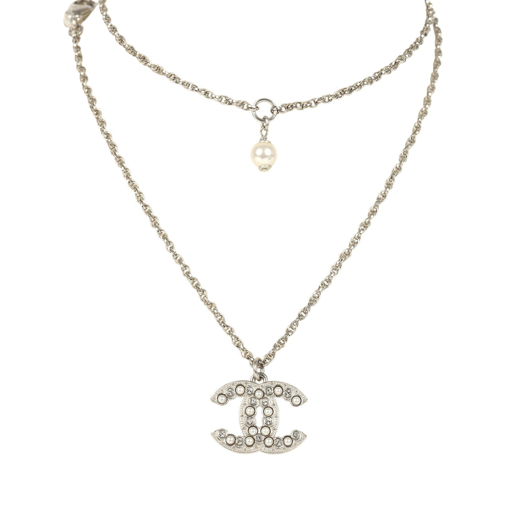 Chanel Faux Pearl and Crystal CC Pendant Necklace Silver Tone Hardware