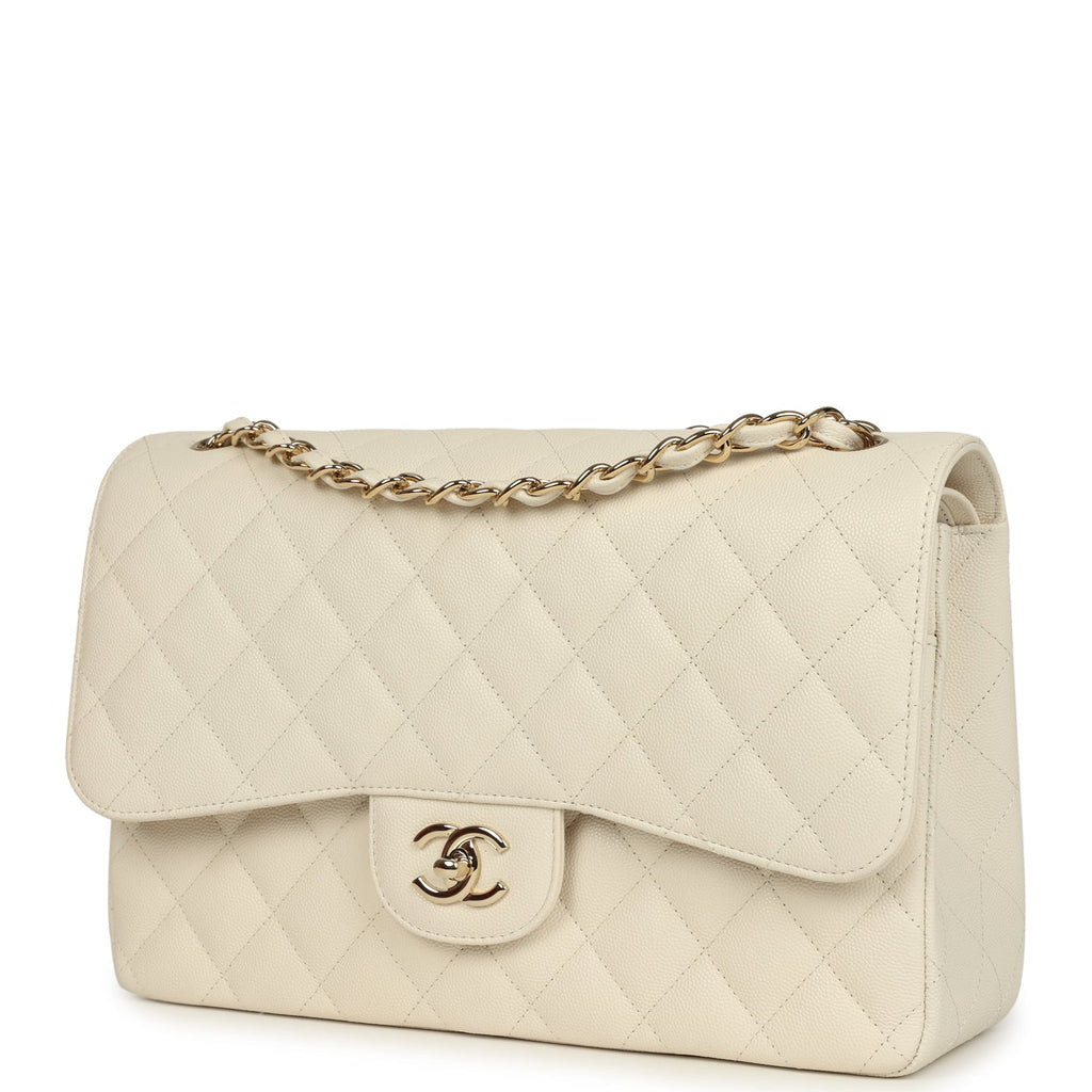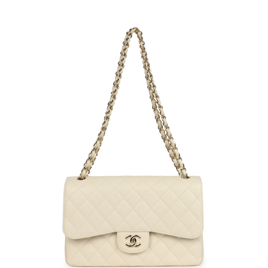 Chanel Jumbo Classic Double Flap Bag Cream Caviar Gold Hardware