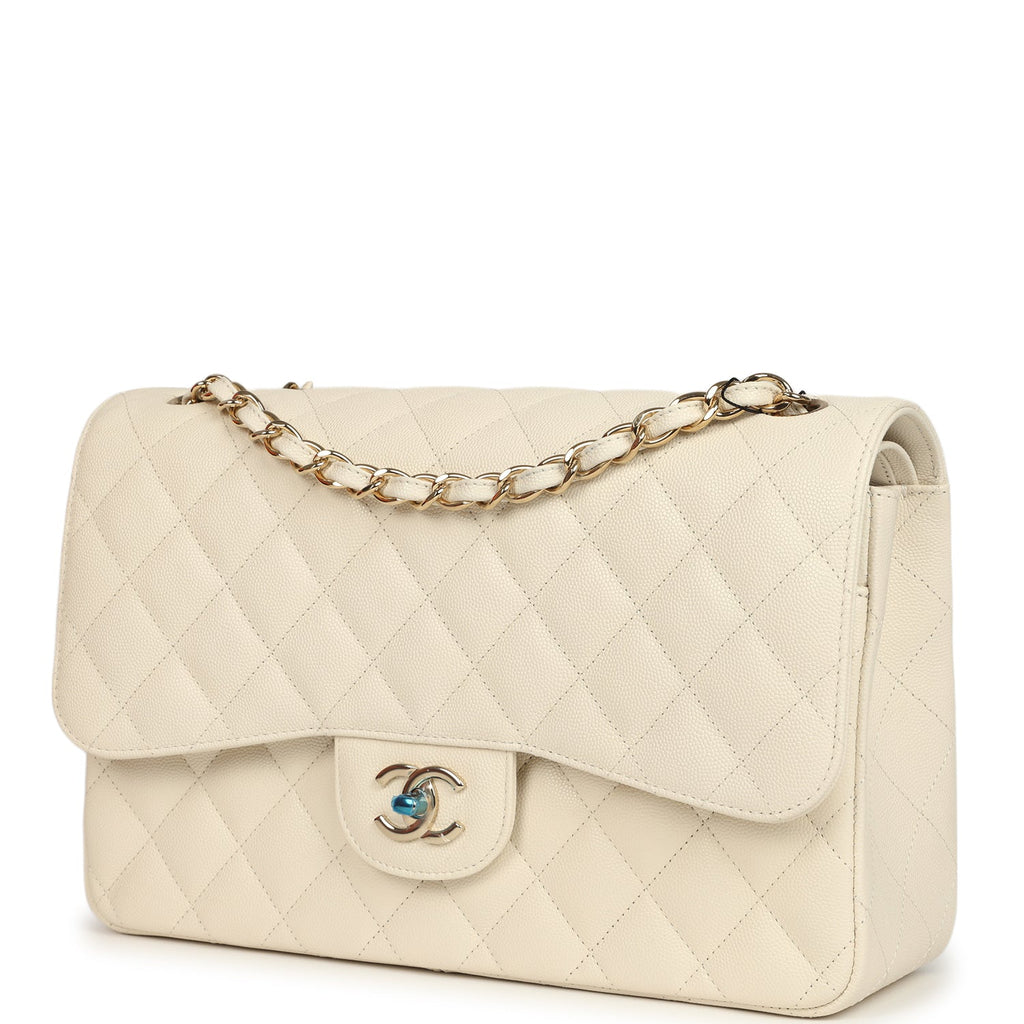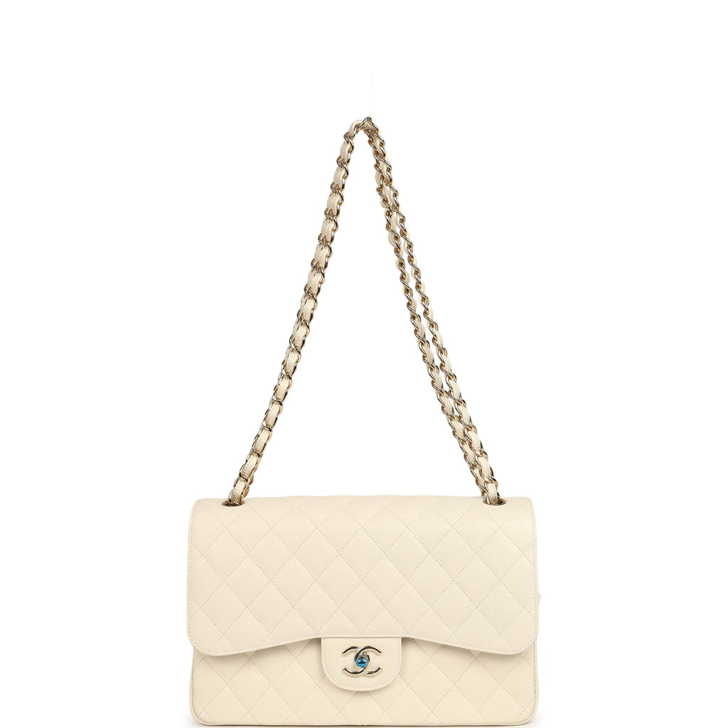 Chanel Jumbo Classic Double Flap Bag Cream Caviar Gold Hardware