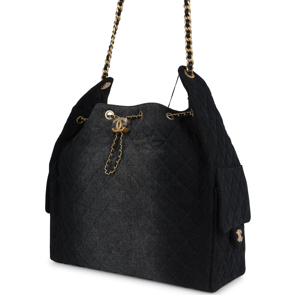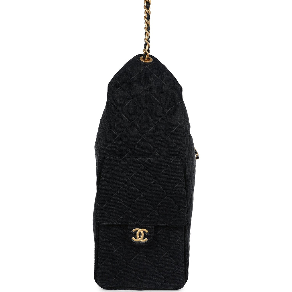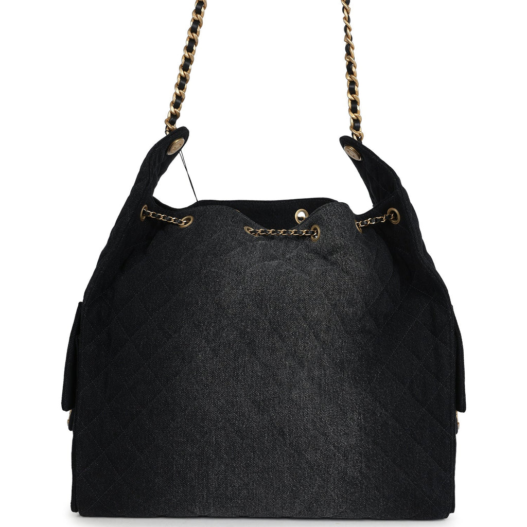 Chanel Large 25 Hobo Bag Black Washed Denim Antique Gold Hardware