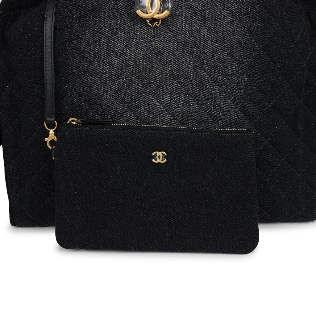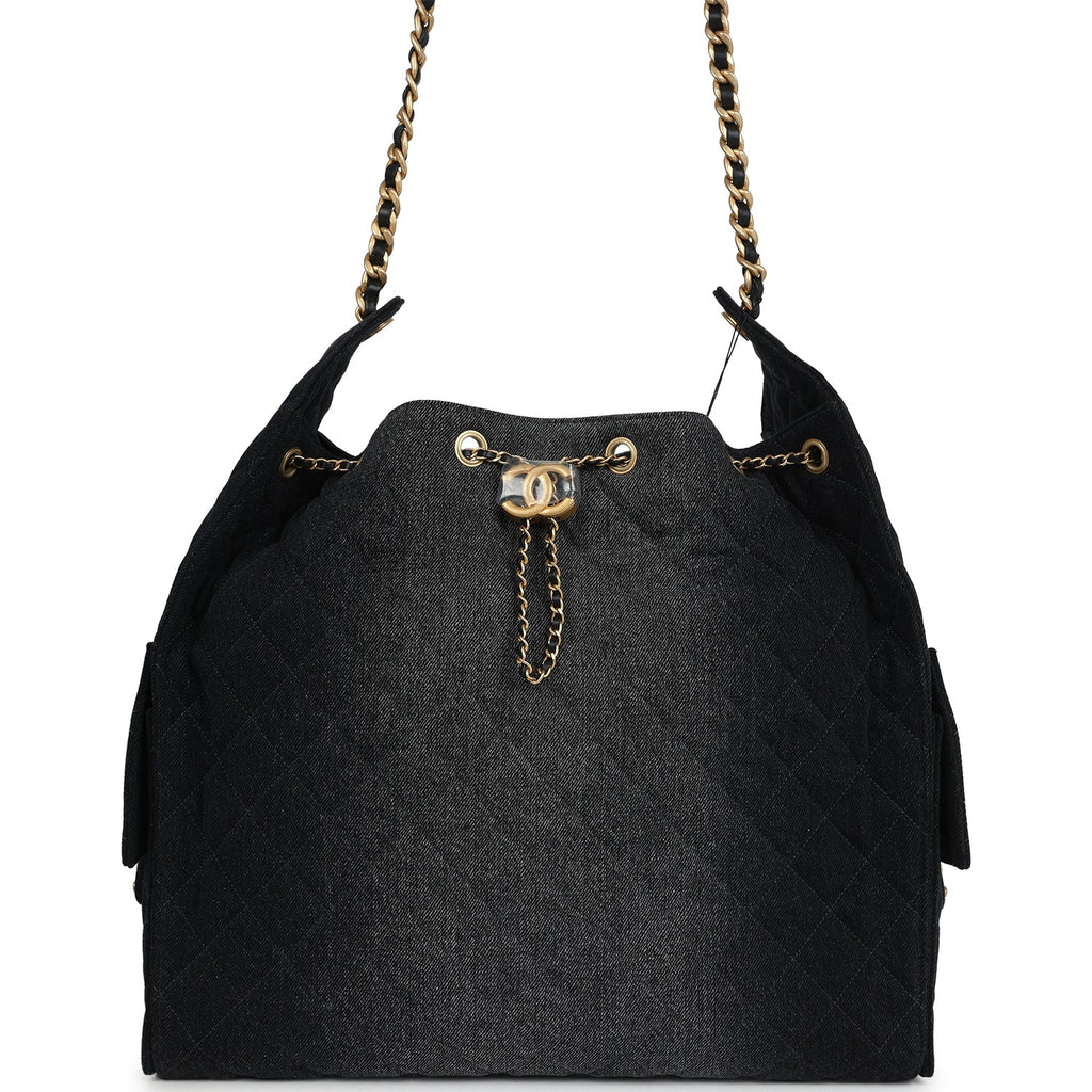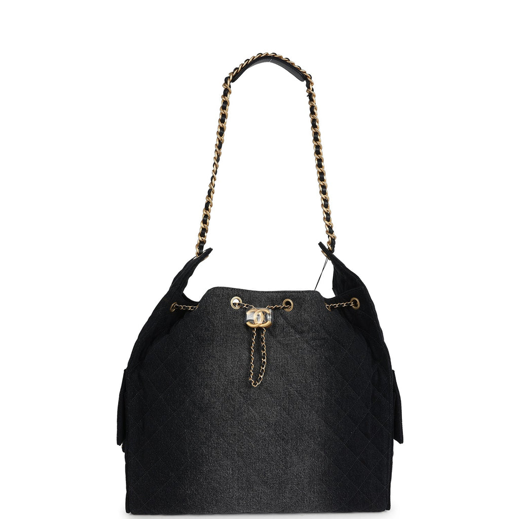 Chanel Large 25 Hobo Bag Black Washed Denim Antique Gold Hardware