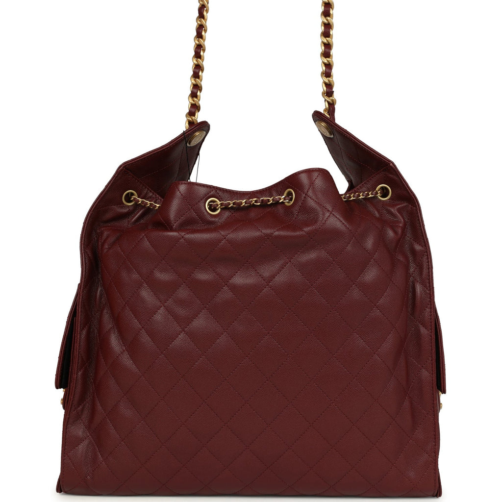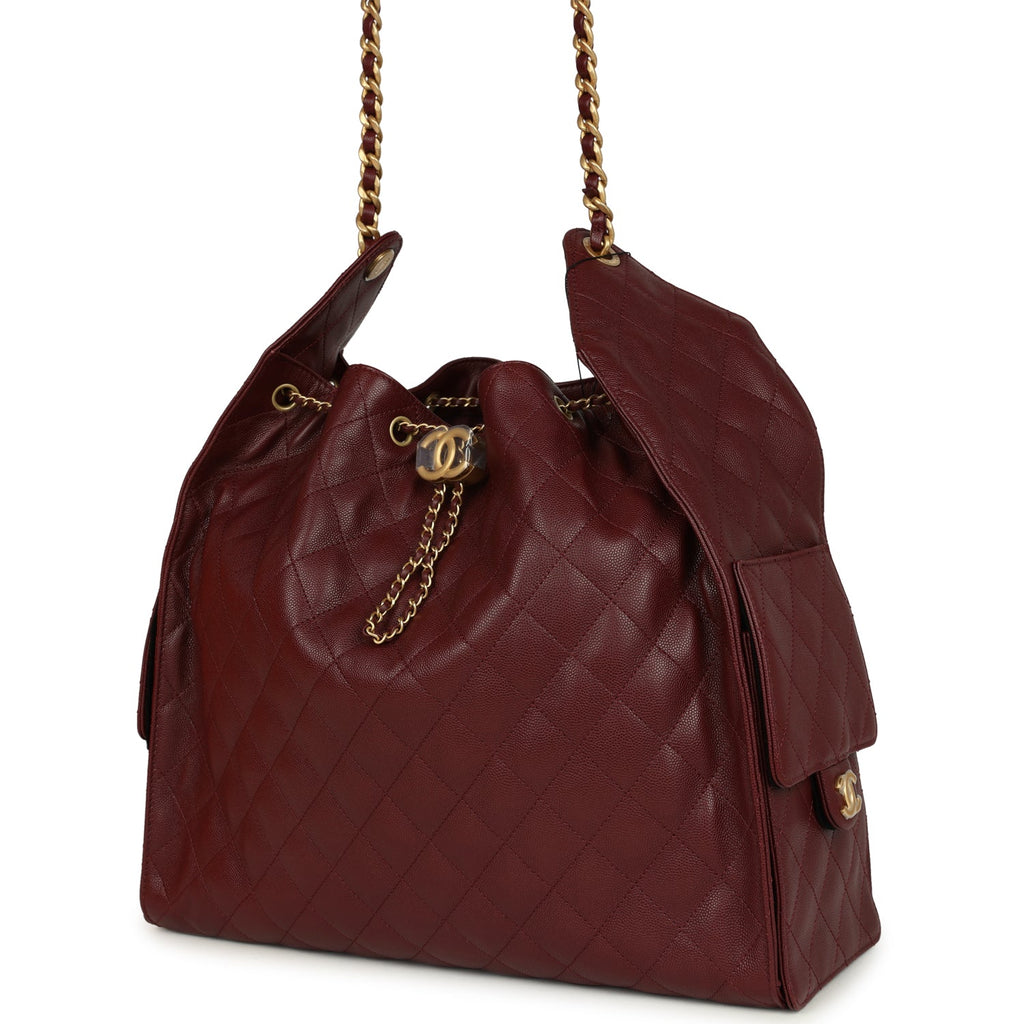 Chanel Large 25 Hobo Bag Burgundy Caviar Antique Gold Hardware