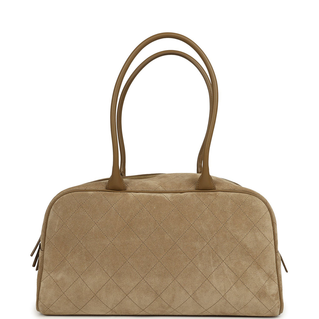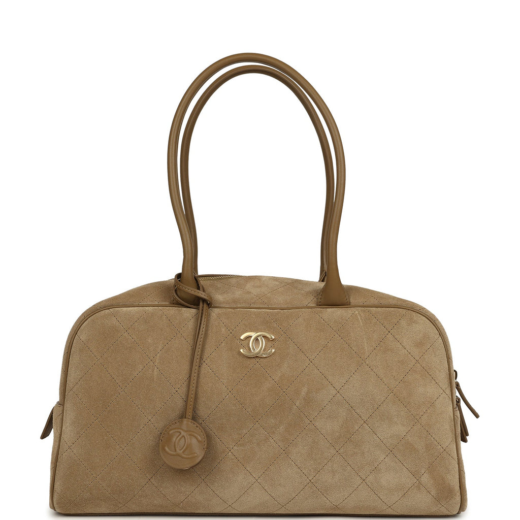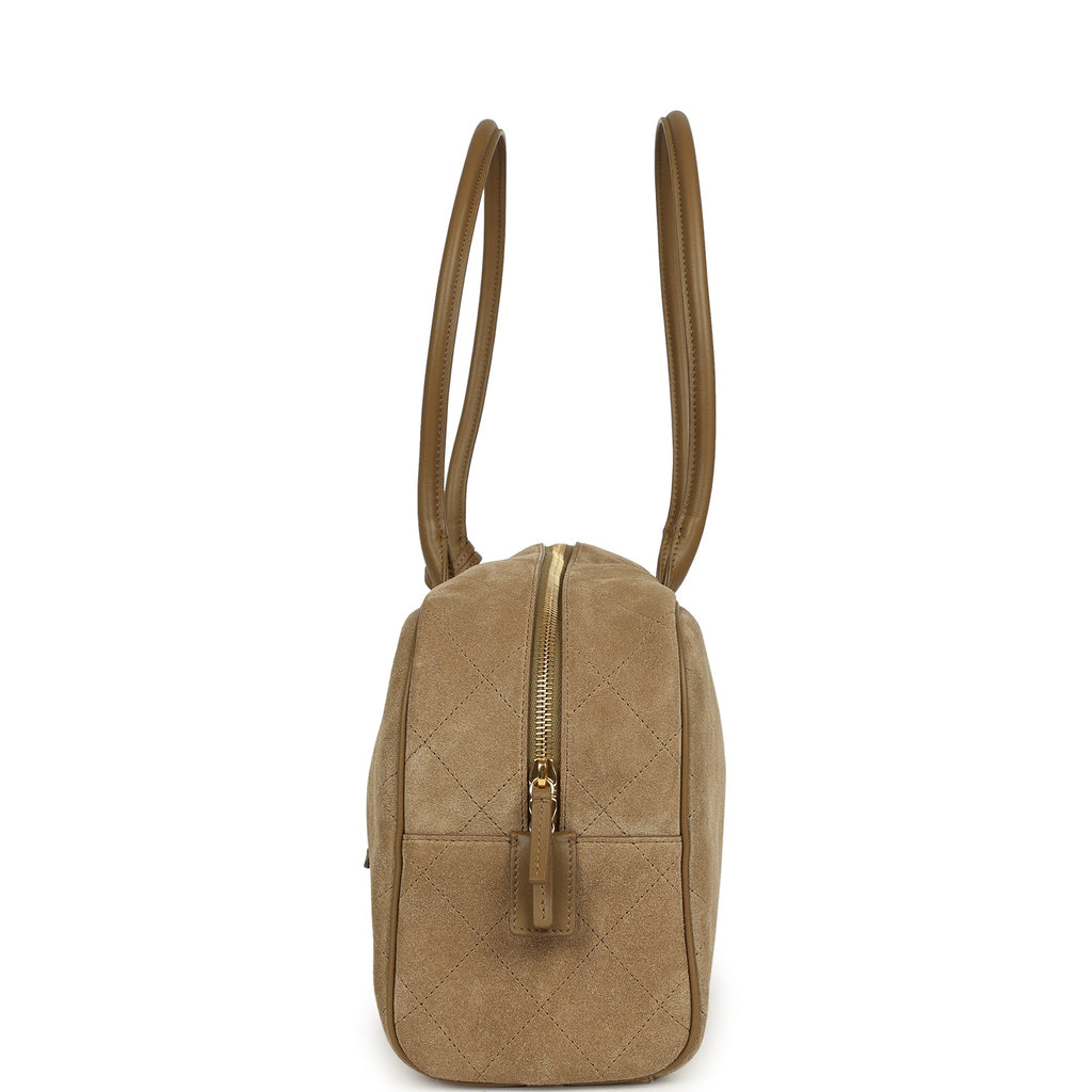 Chanel Large "Perfect Bowling" Bag Dark Beige Suede Gold Hardware