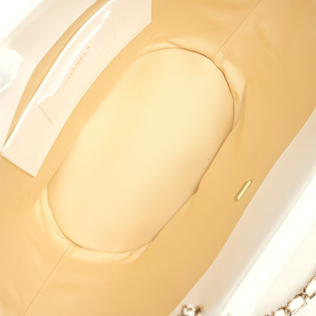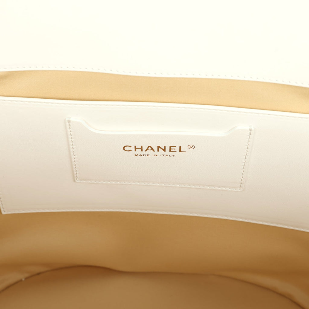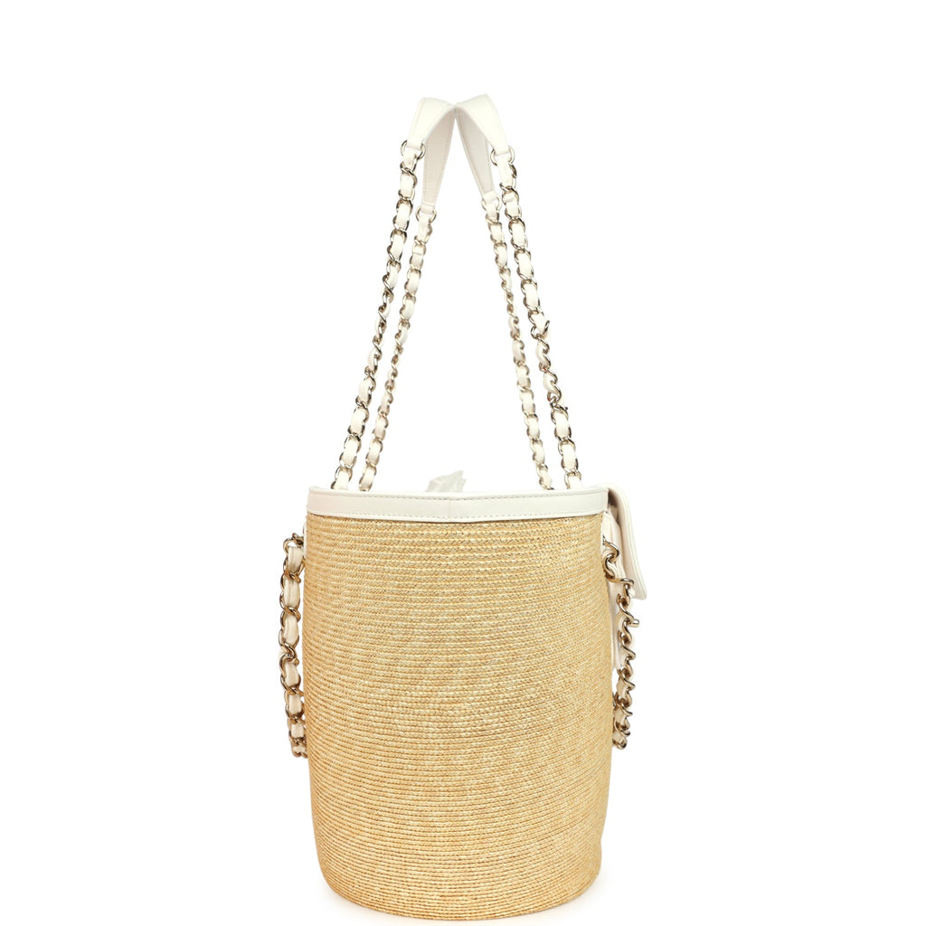 Chanel Large Shopping Tote Bag Beige Raffia and White Lambskin Light Gold Hardware