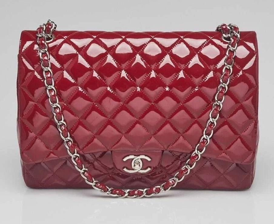 Pre-Owned Chanel Maxi Classic Double Flap Red Patent Leather Silver Hardware - Sourced