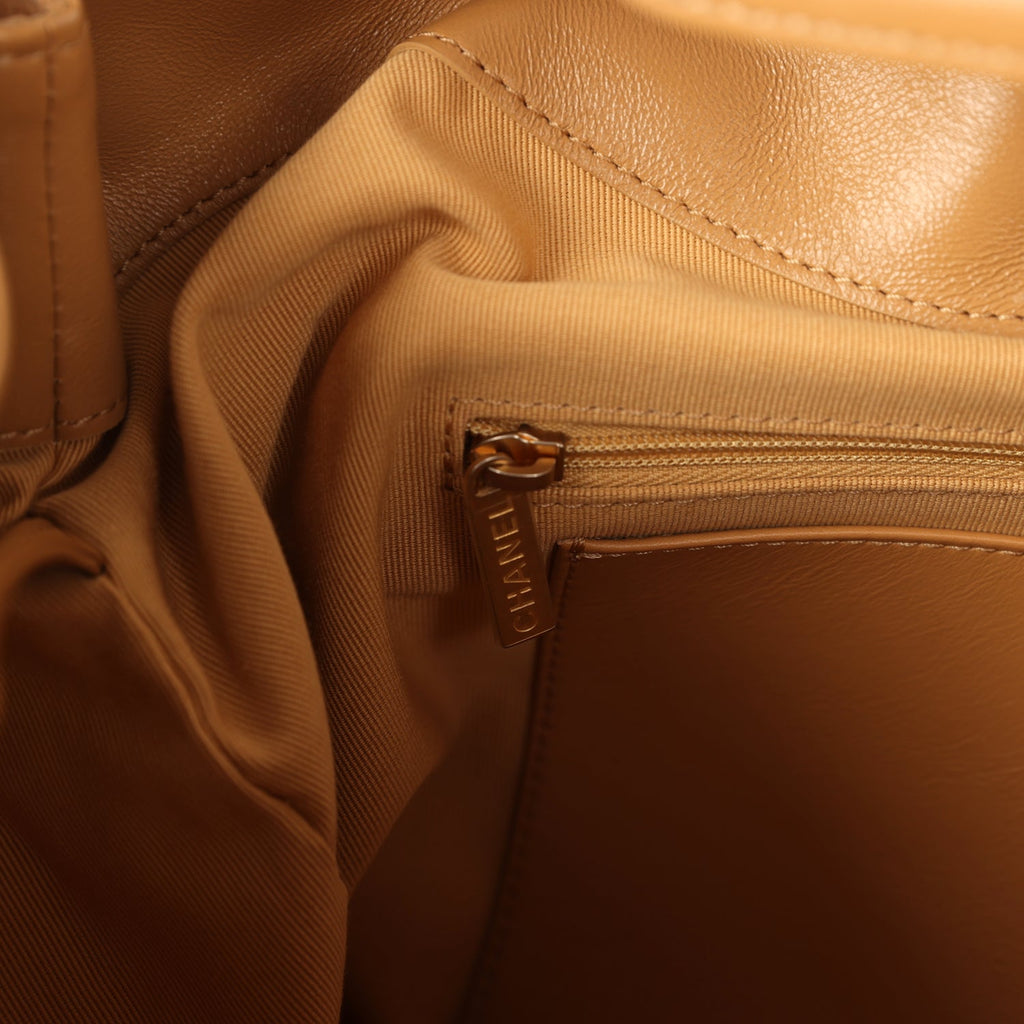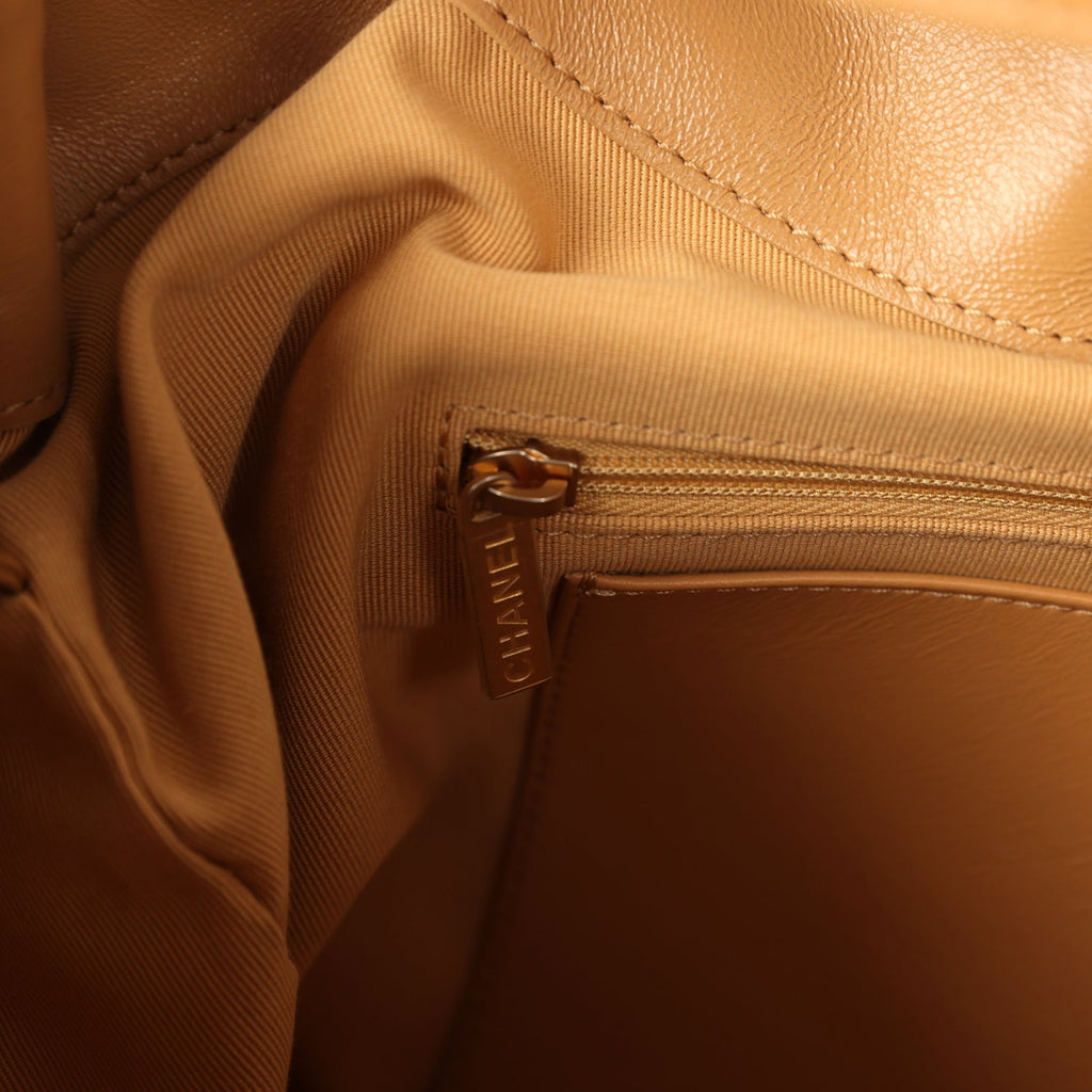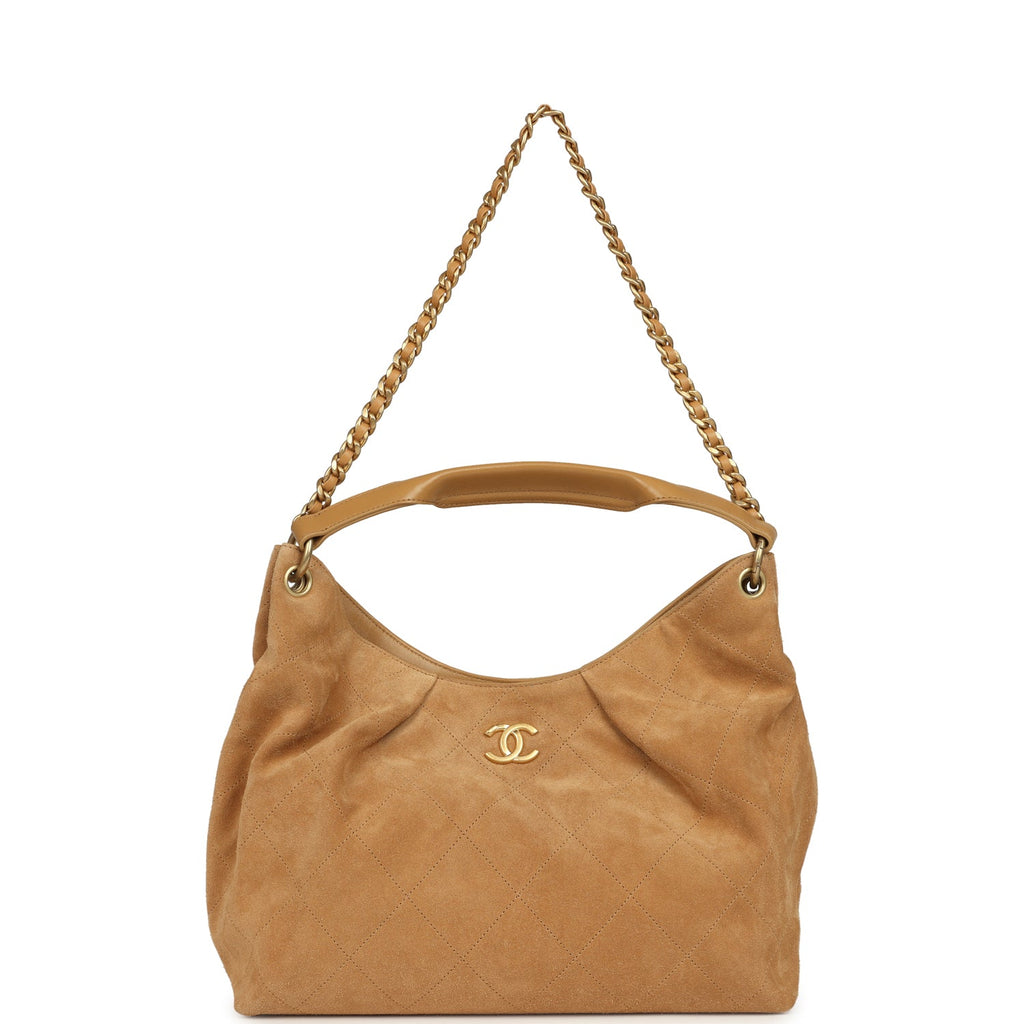 Chanel Maxi Hobo Bag Beige Suede Antique Gold Hardware