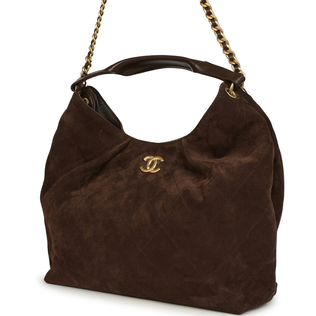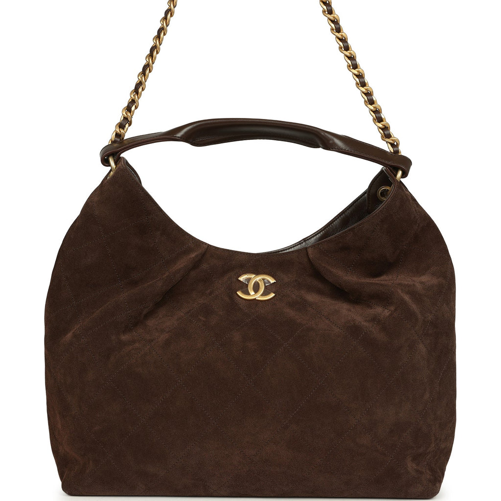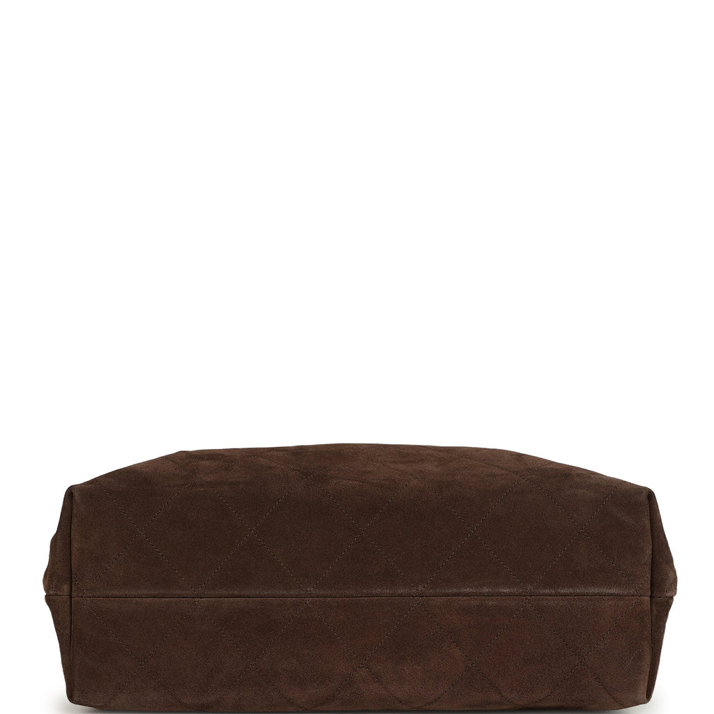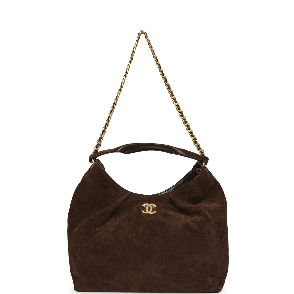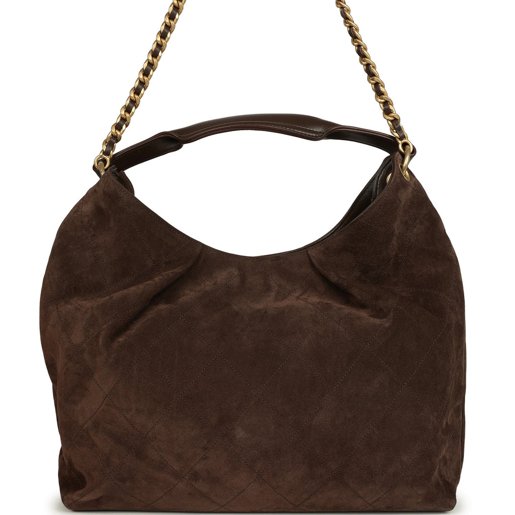 Chanel Maxi Hobo Bag Dark Brown Suede Antique Gold Hardware