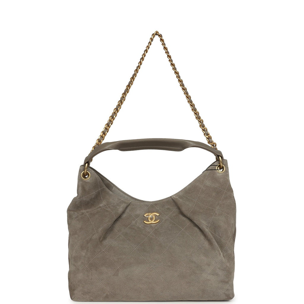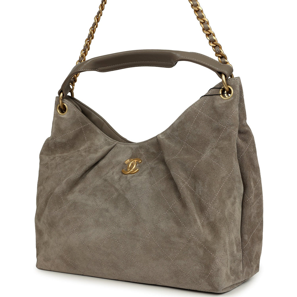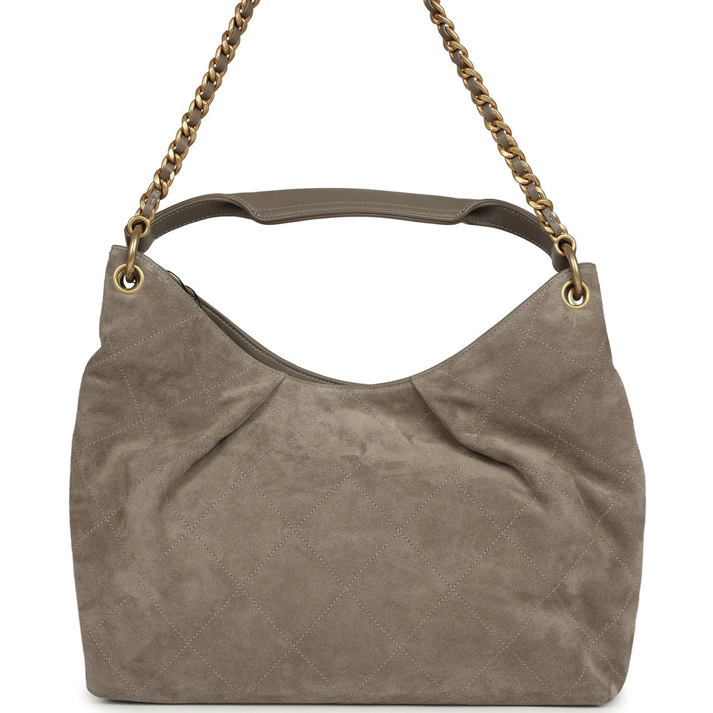Chanel Maxi Hobo Bag Dark Grey Suede Antique Gold Hardware