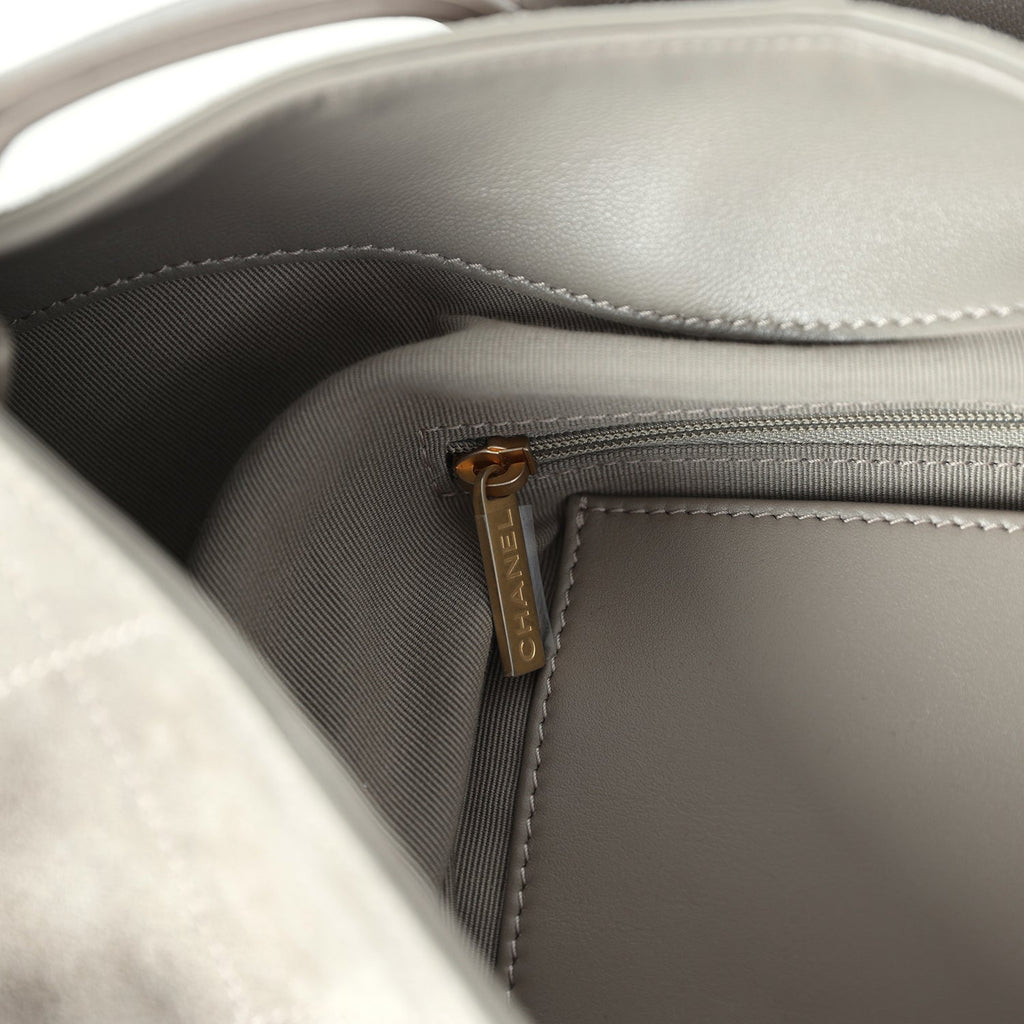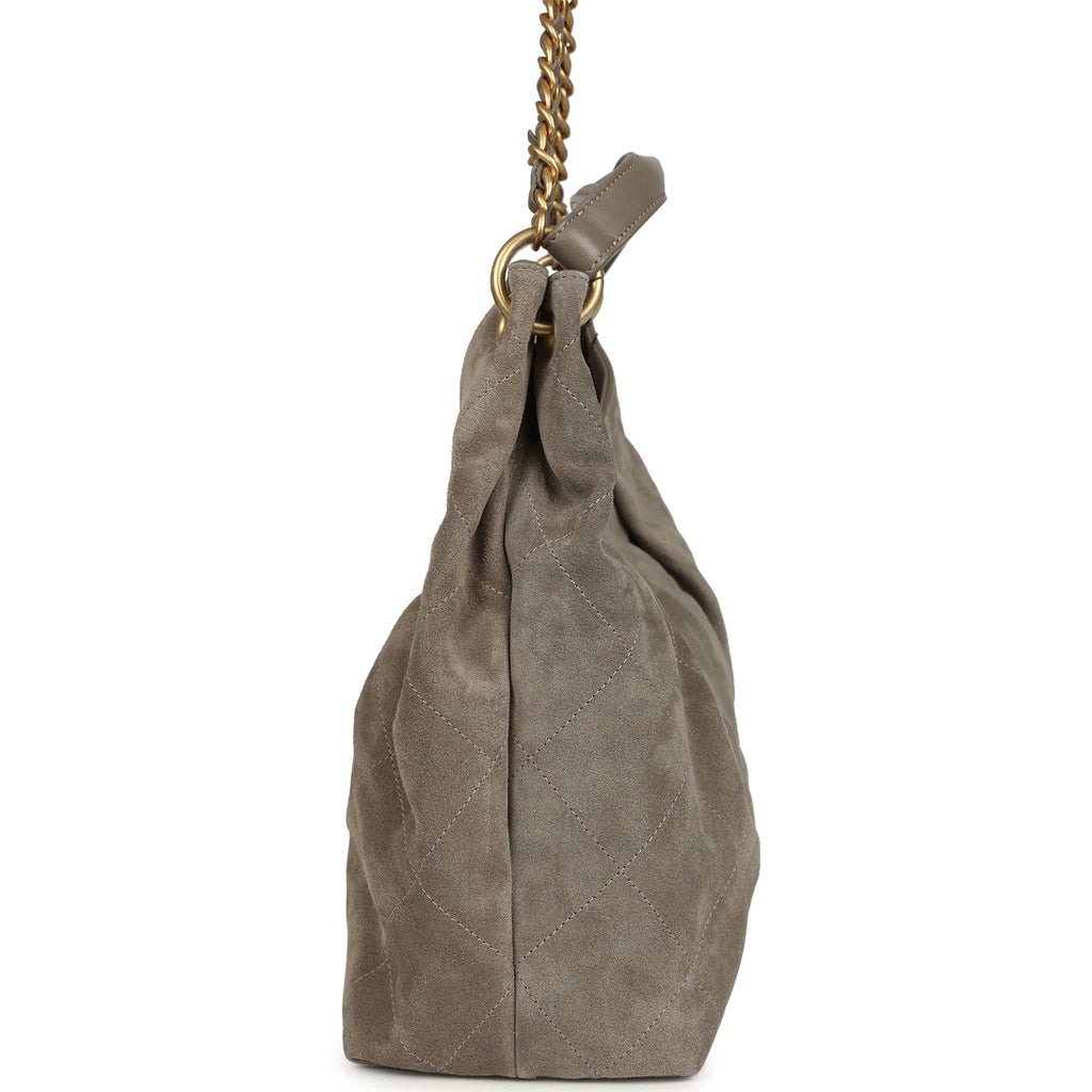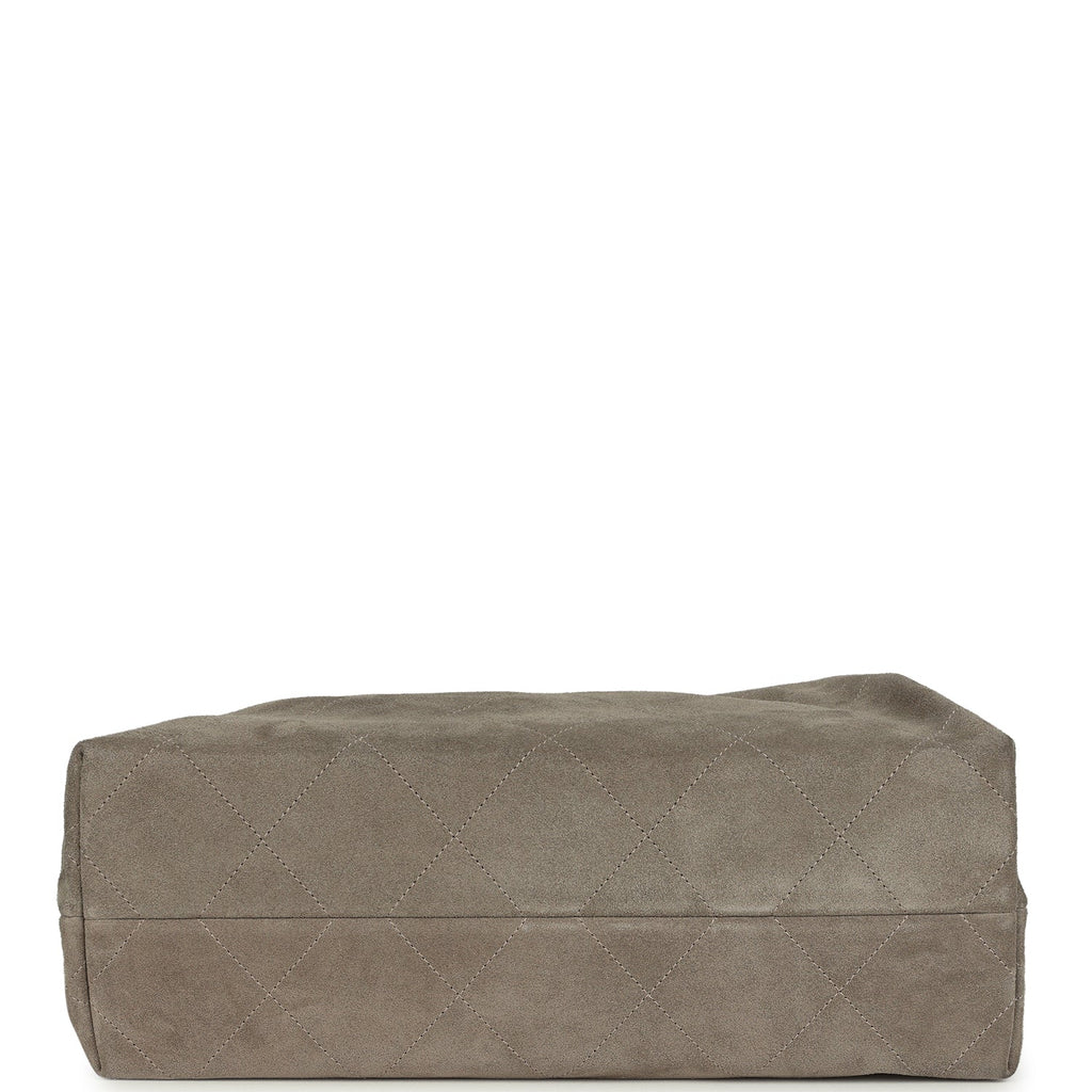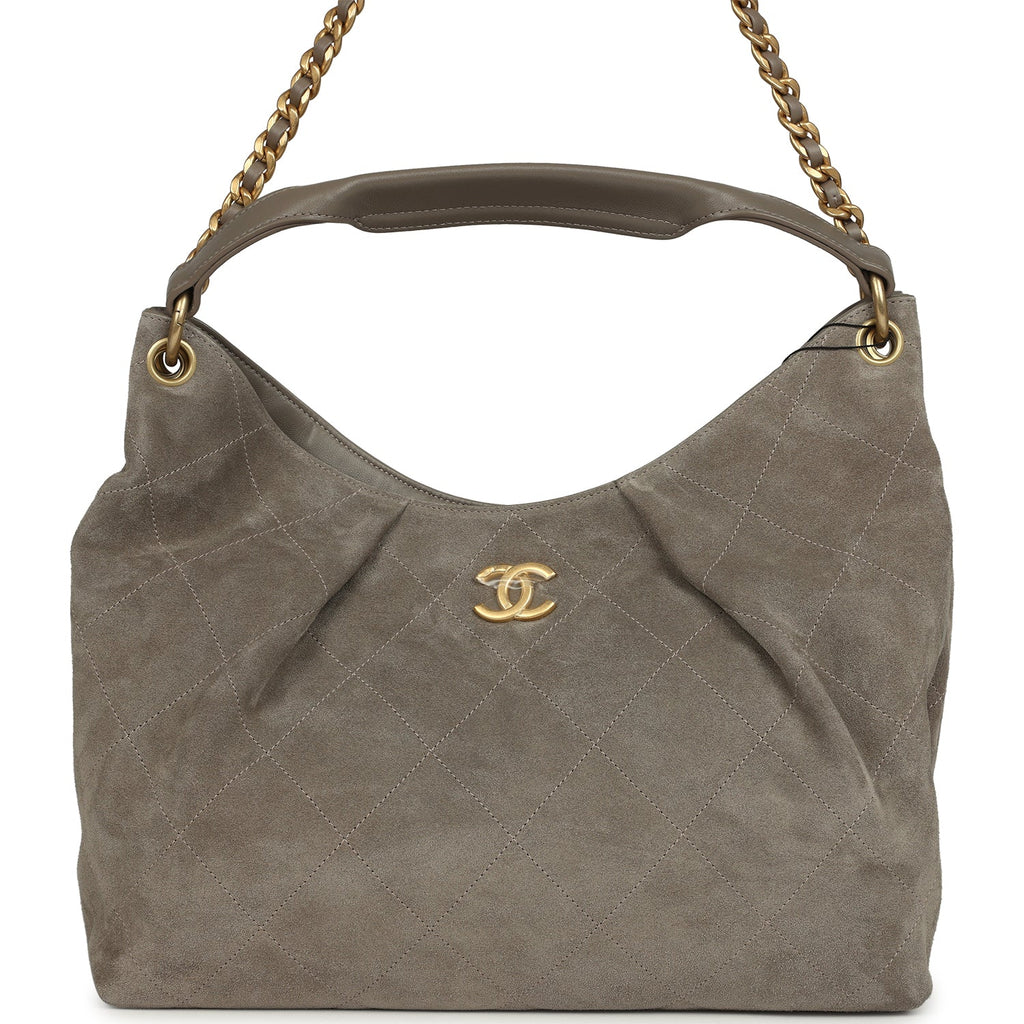 Chanel Maxi Hobo Bag Dark Grey Suede Antique Gold Hardware