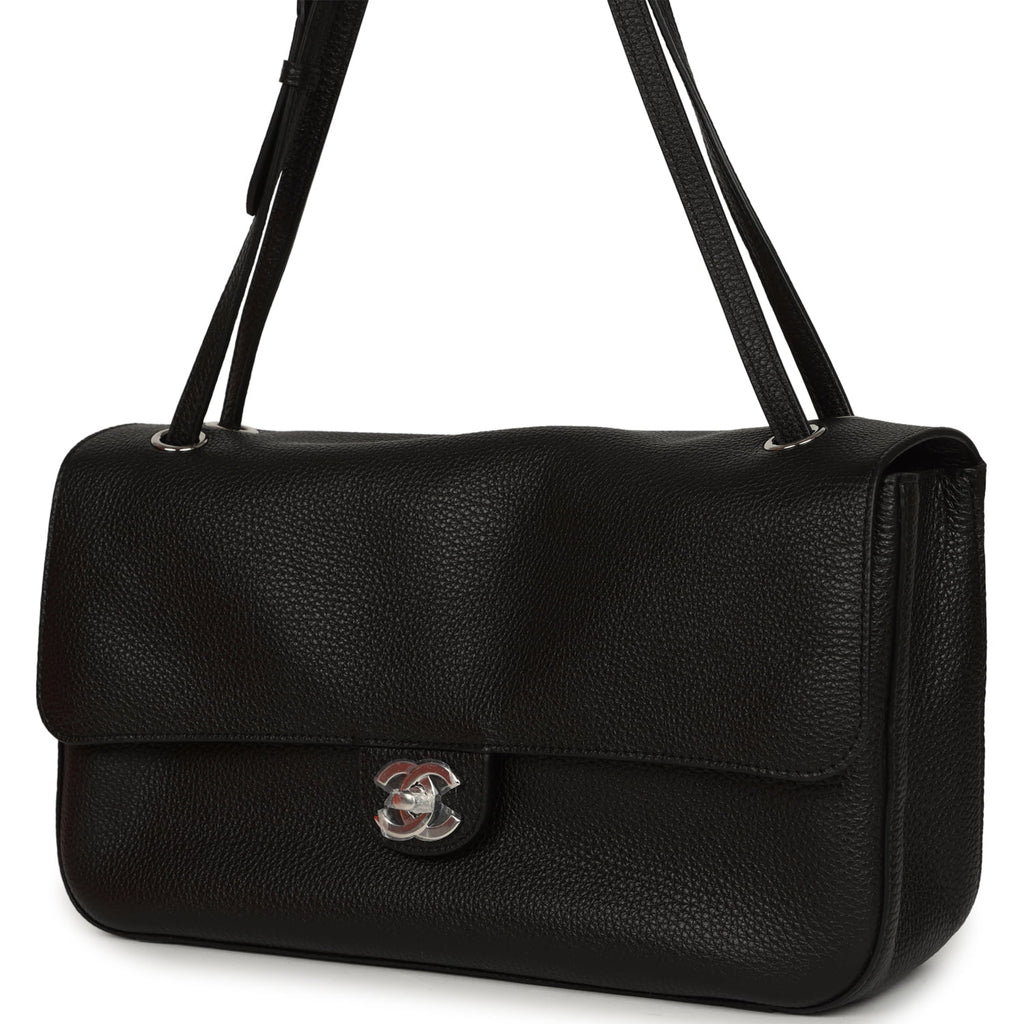 Chanel Maxi "Souplissimo" Small Flap Bag Black Caviar Silver Hardware