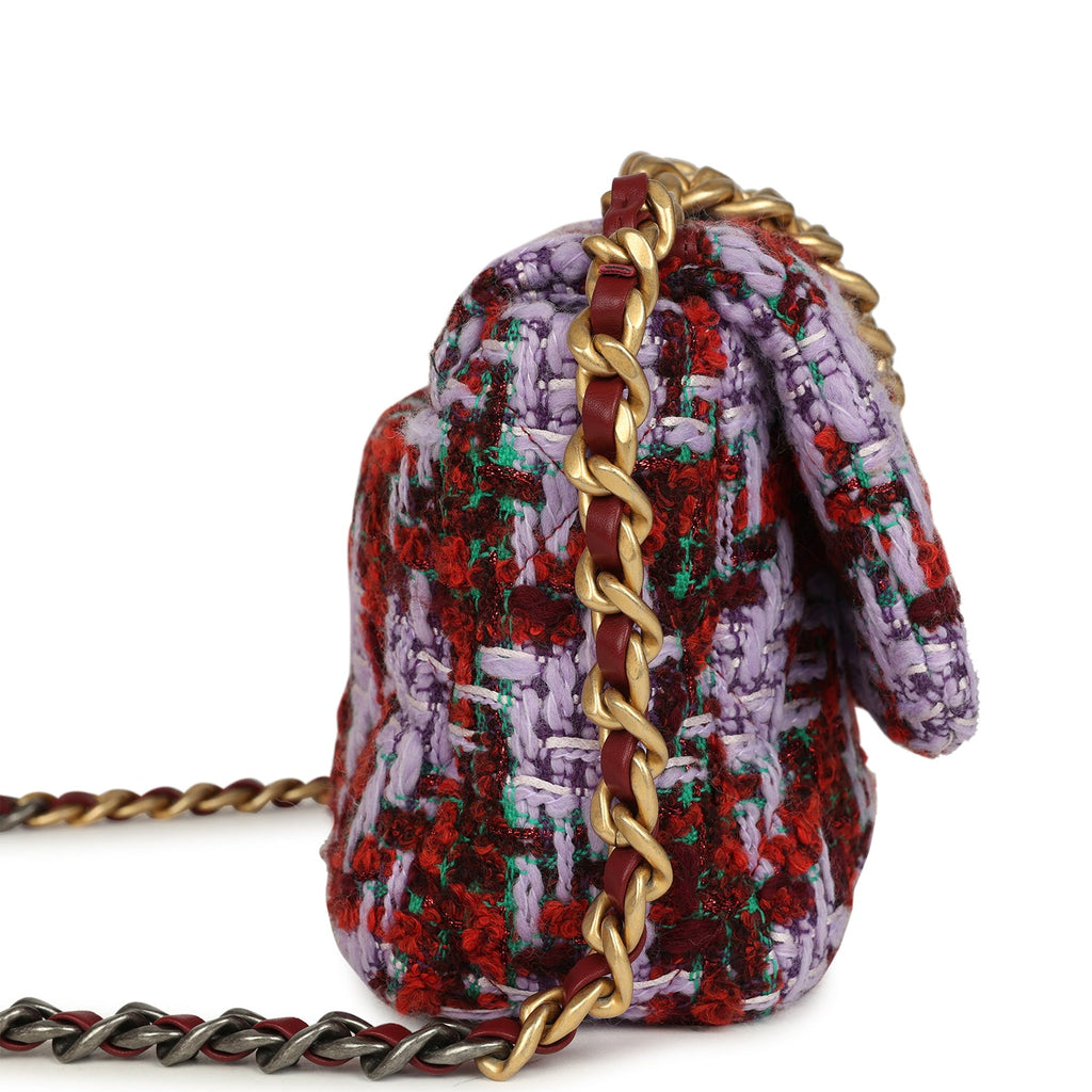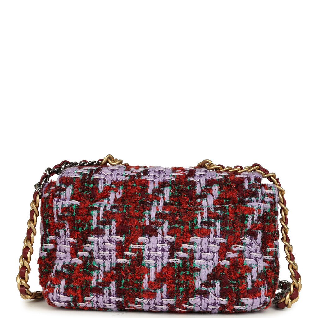 Chanel Medium 19 Flap Bag Burgundy, Purple, Red Tweed Mixed Metal Hardware