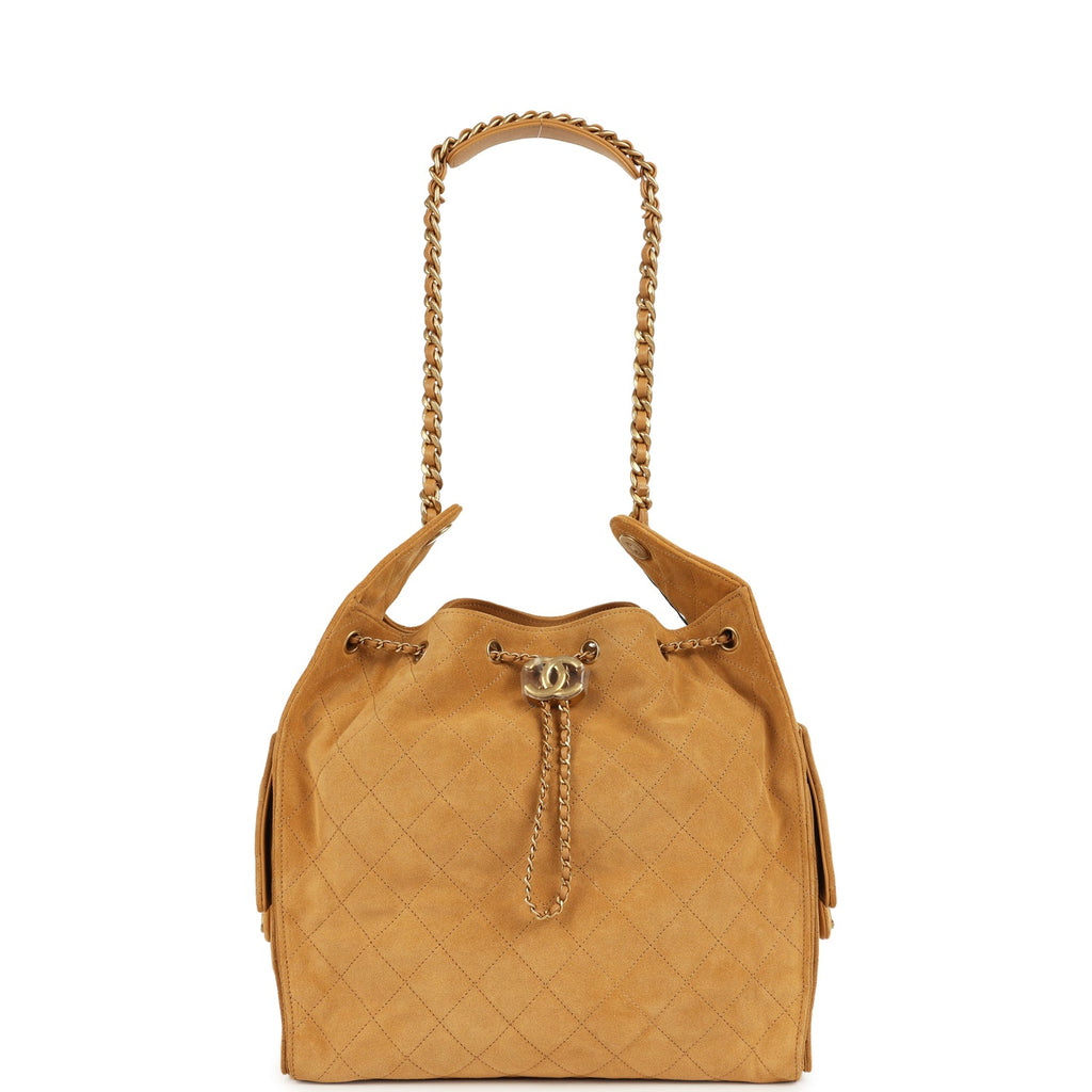 Chanel Medium 25 Hobo Bag Beige Suede Antique Gold Hardware