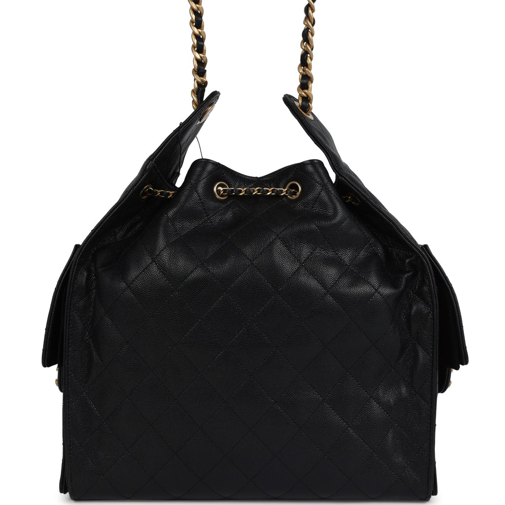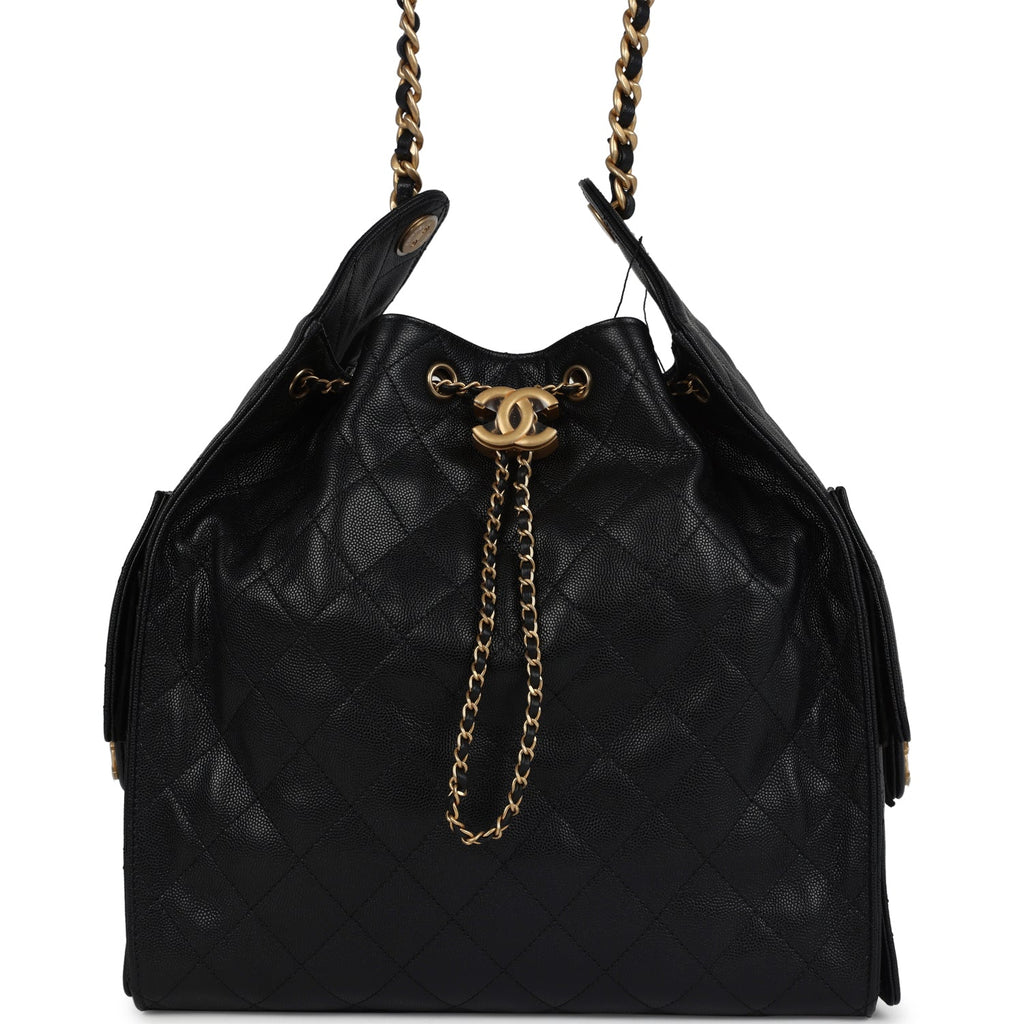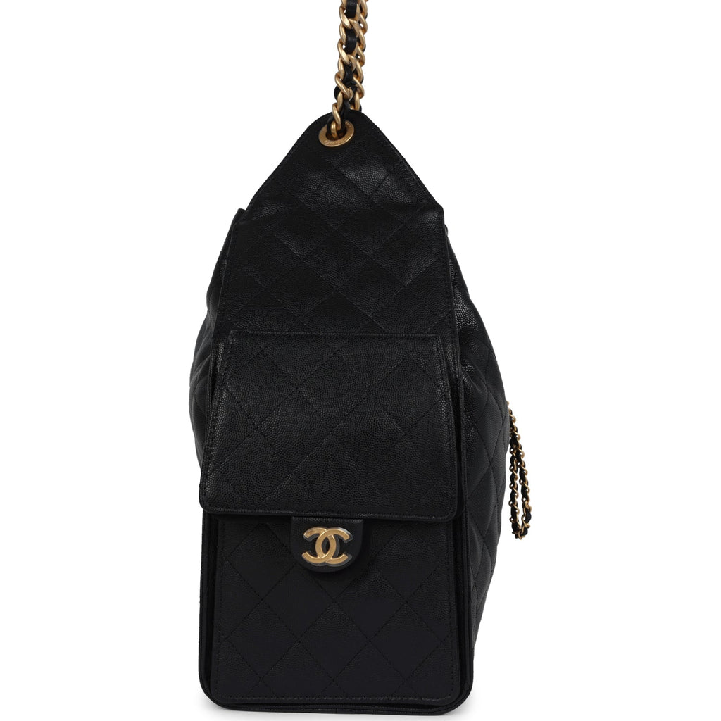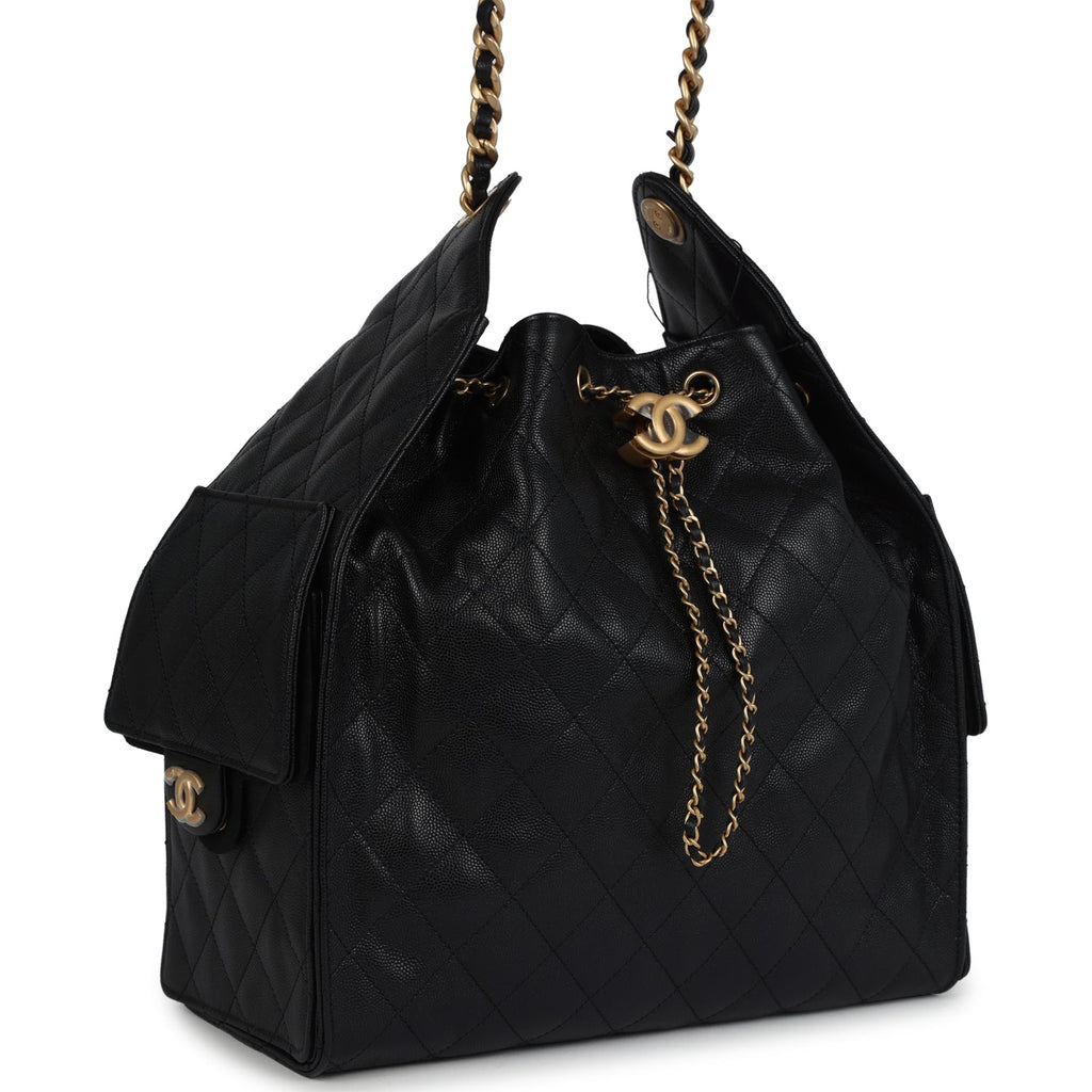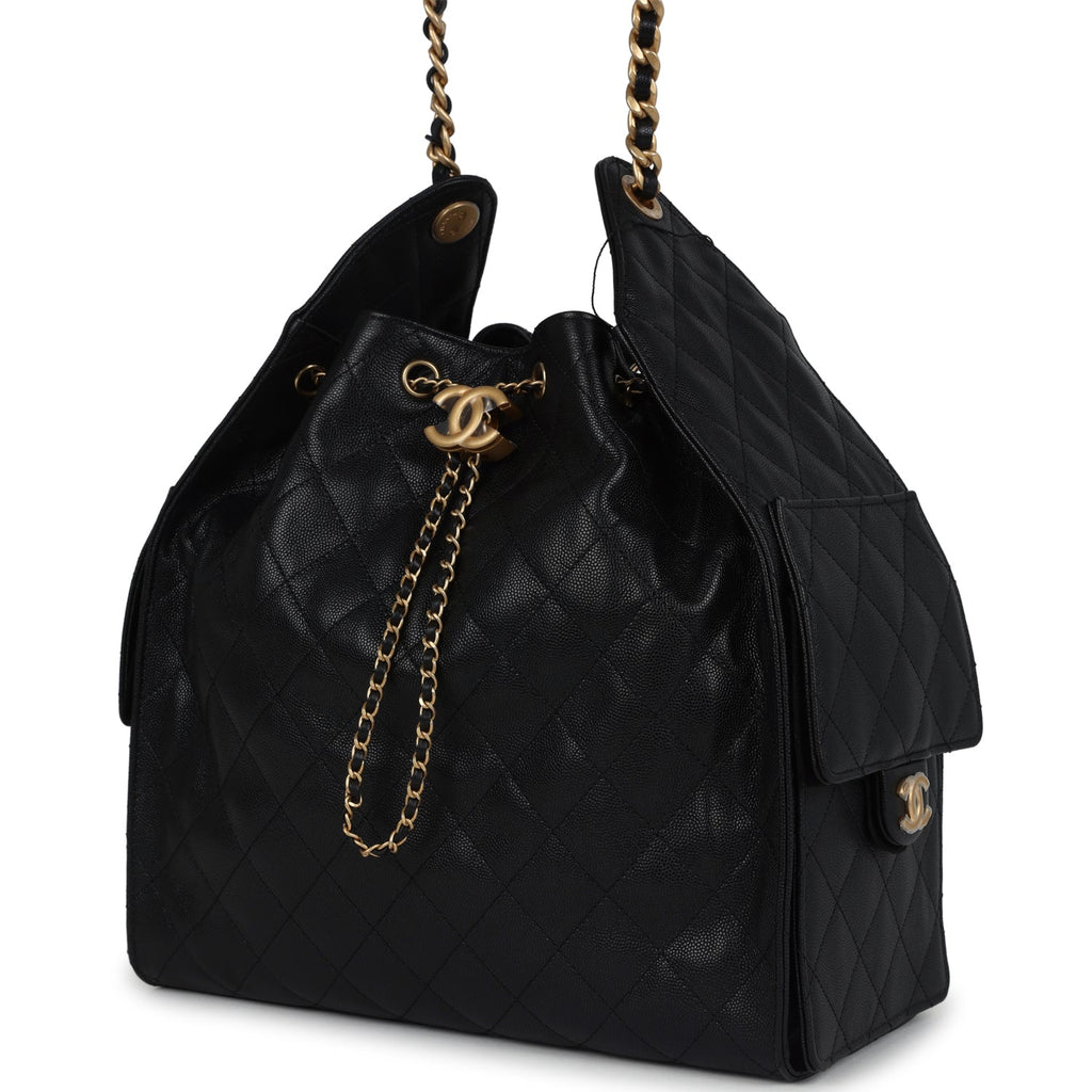 Chanel Medium 25 Hobo Bag Black Caviar Antique Gold Hardware
