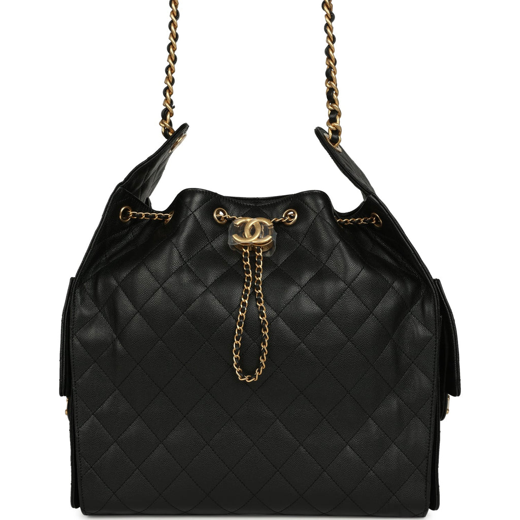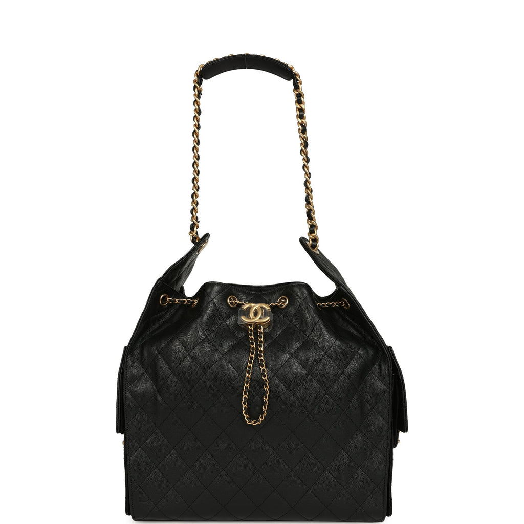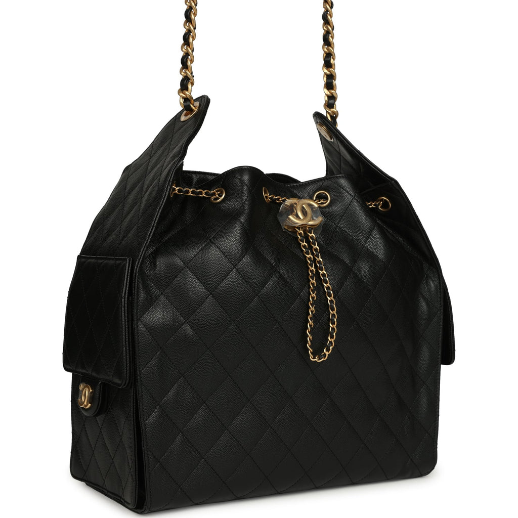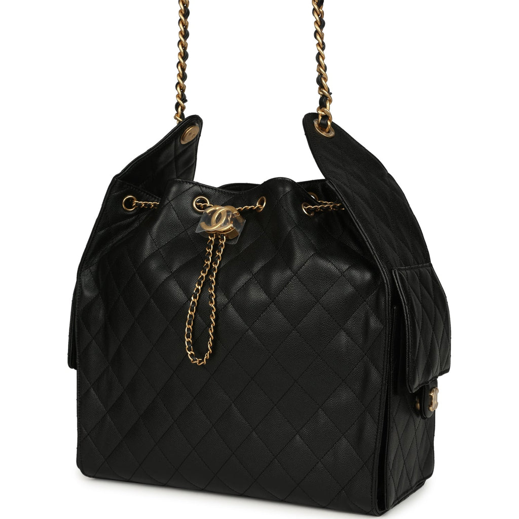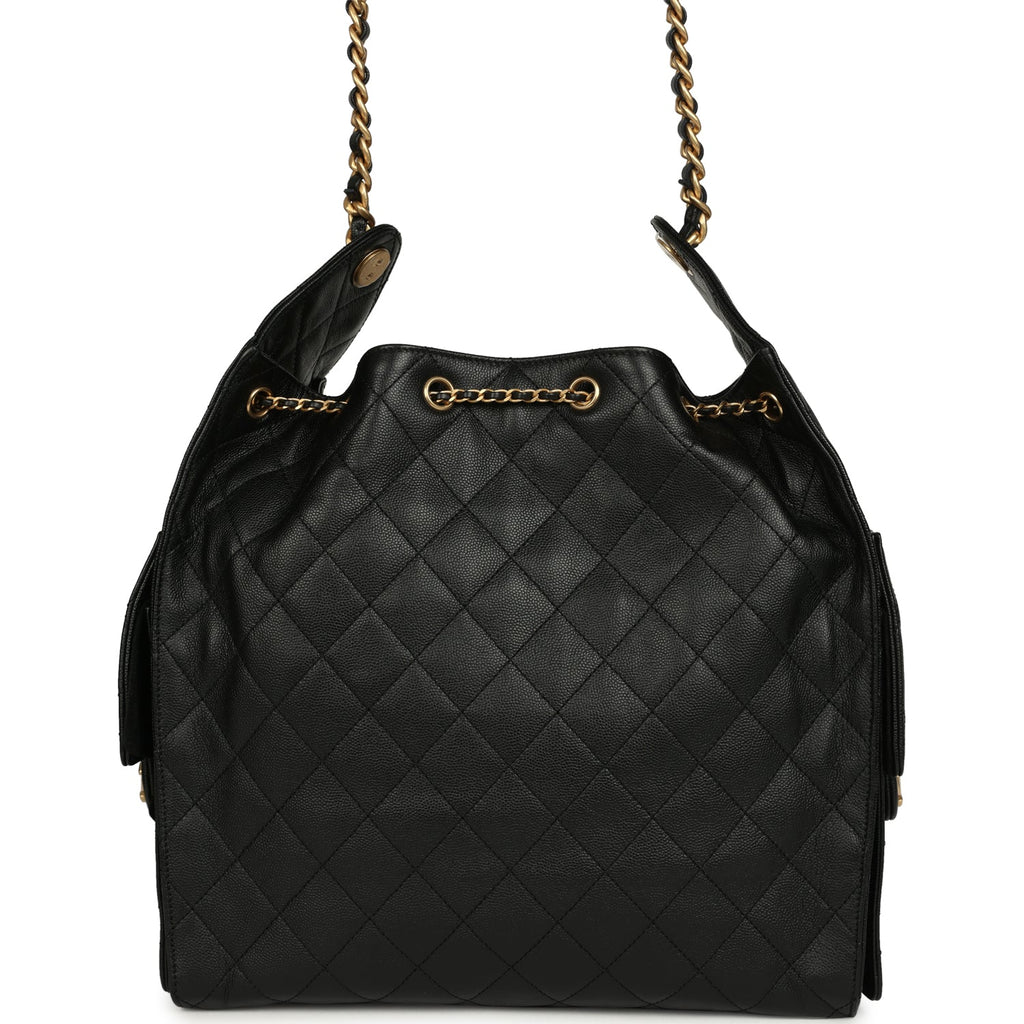 Chanel Medium 25 Hobo Bag Black Caviar Antique Gold Hardware