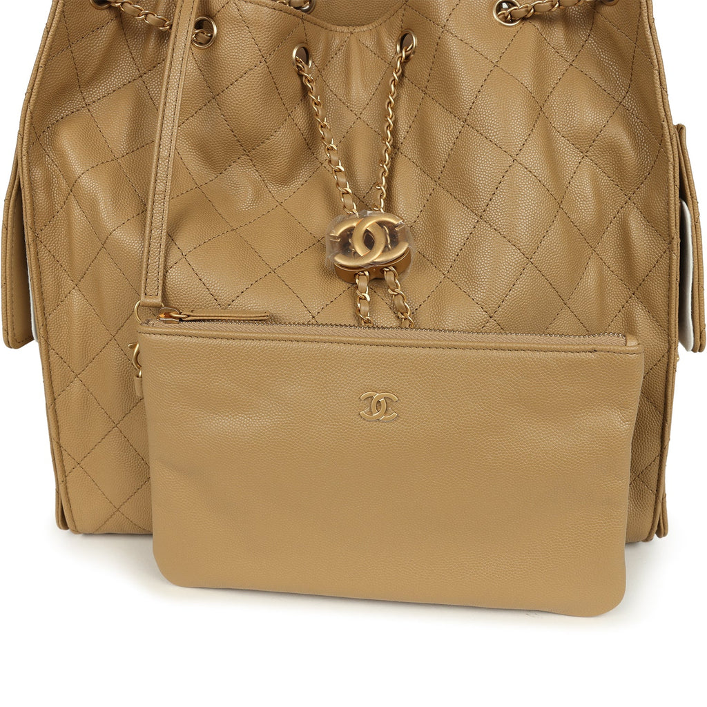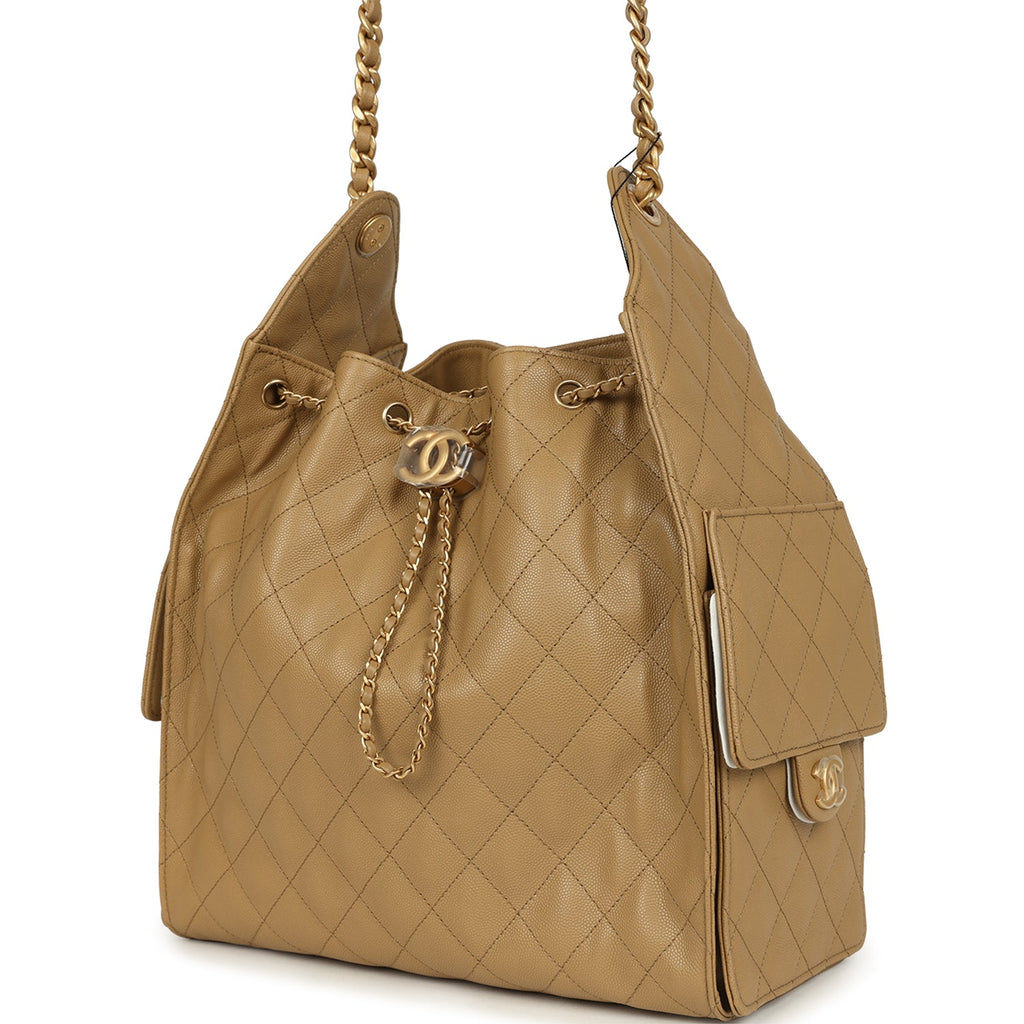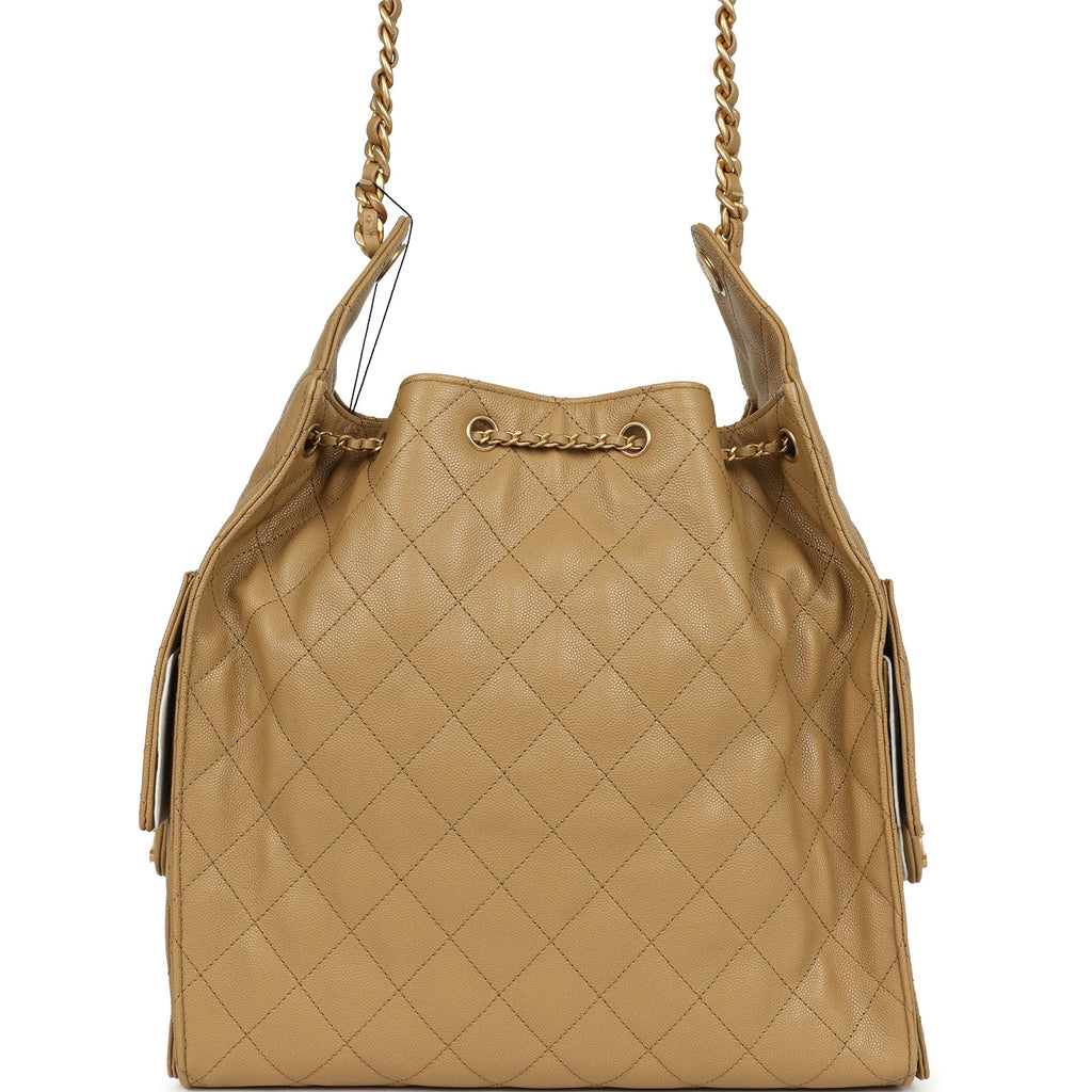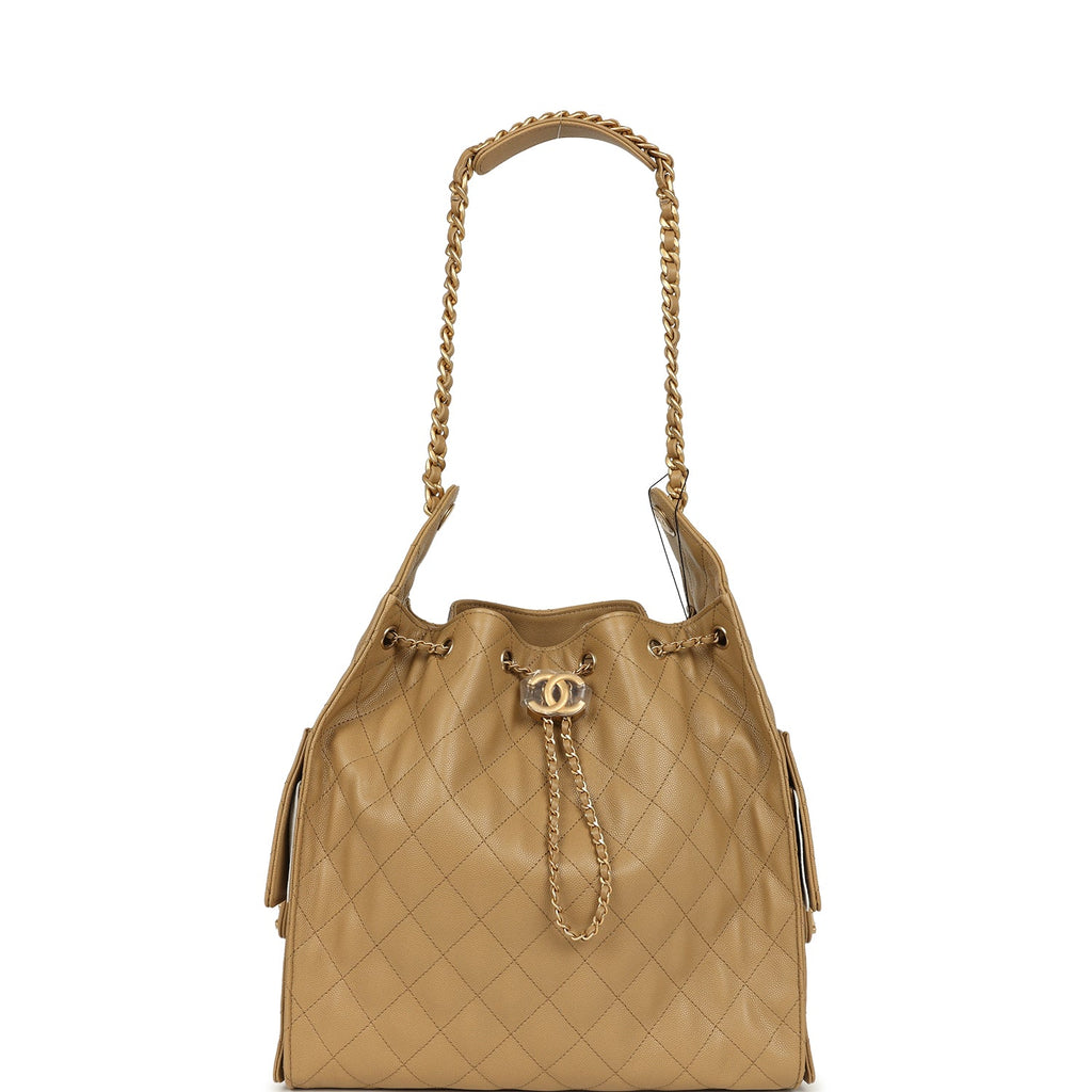 Chanel Medium 25 Hobo Bag Dark Beige Caviar Antique Gold Hardware