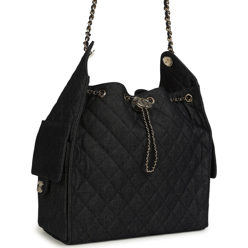 Chanel Medium 25 Hobo Bag Dark Denim Light Gold Hardware