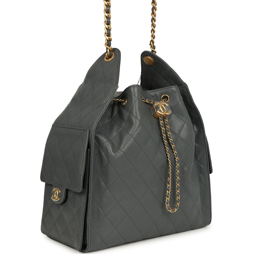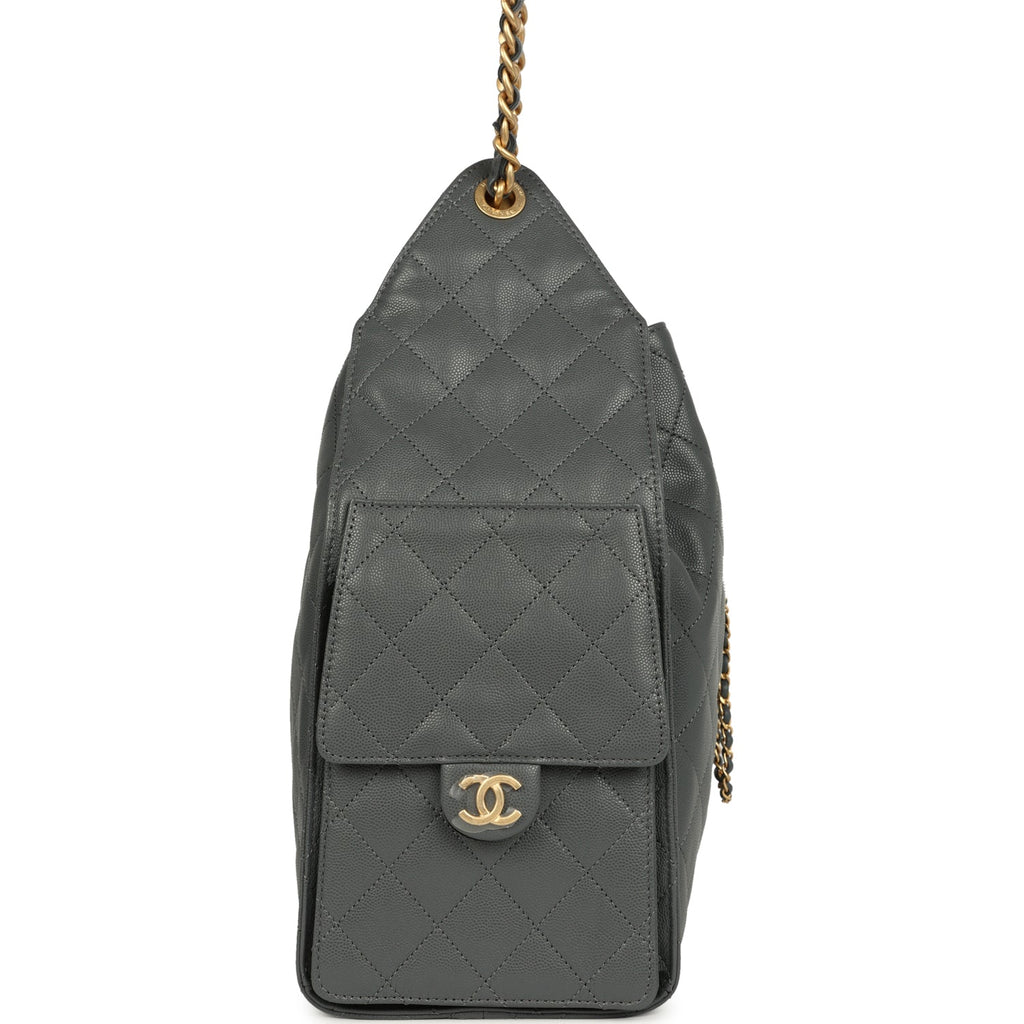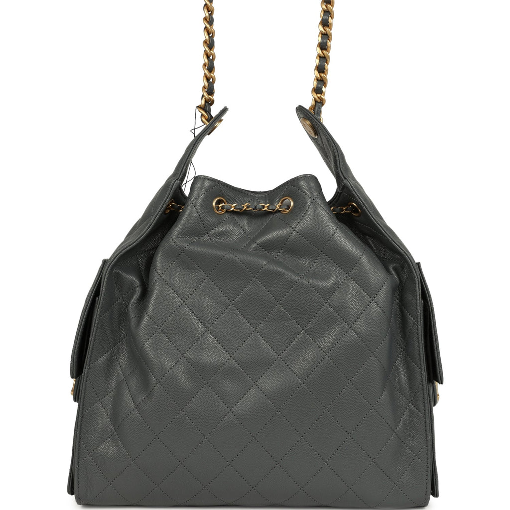 Chanel Medium 25 Hobo Bag Dark Grey Caviar Antique Gold Hardware