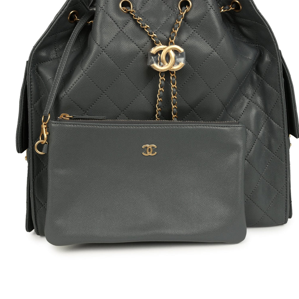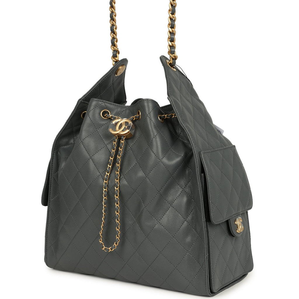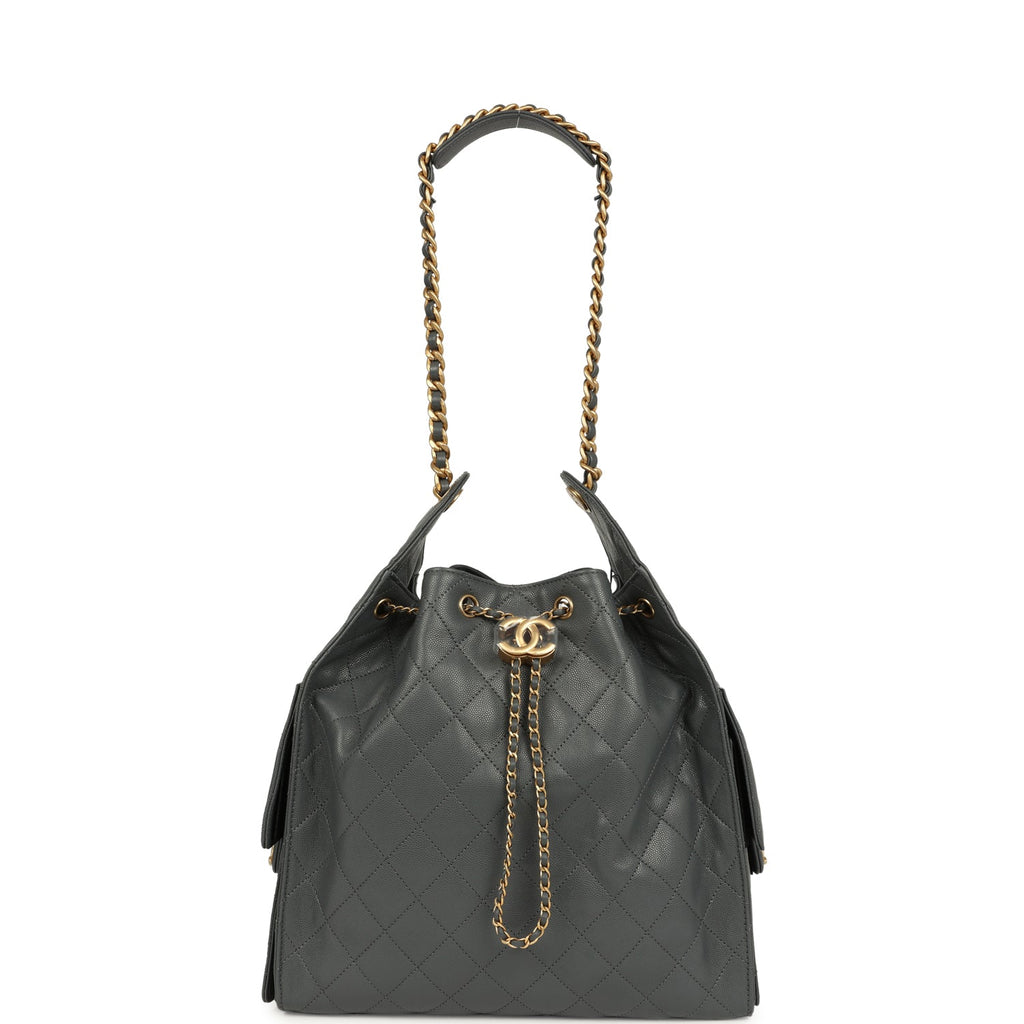 Chanel Medium 25 Hobo Bag Dark Grey Caviar Antique Gold Hardware