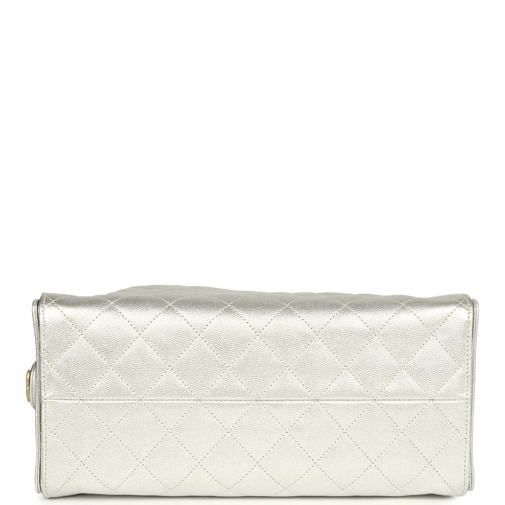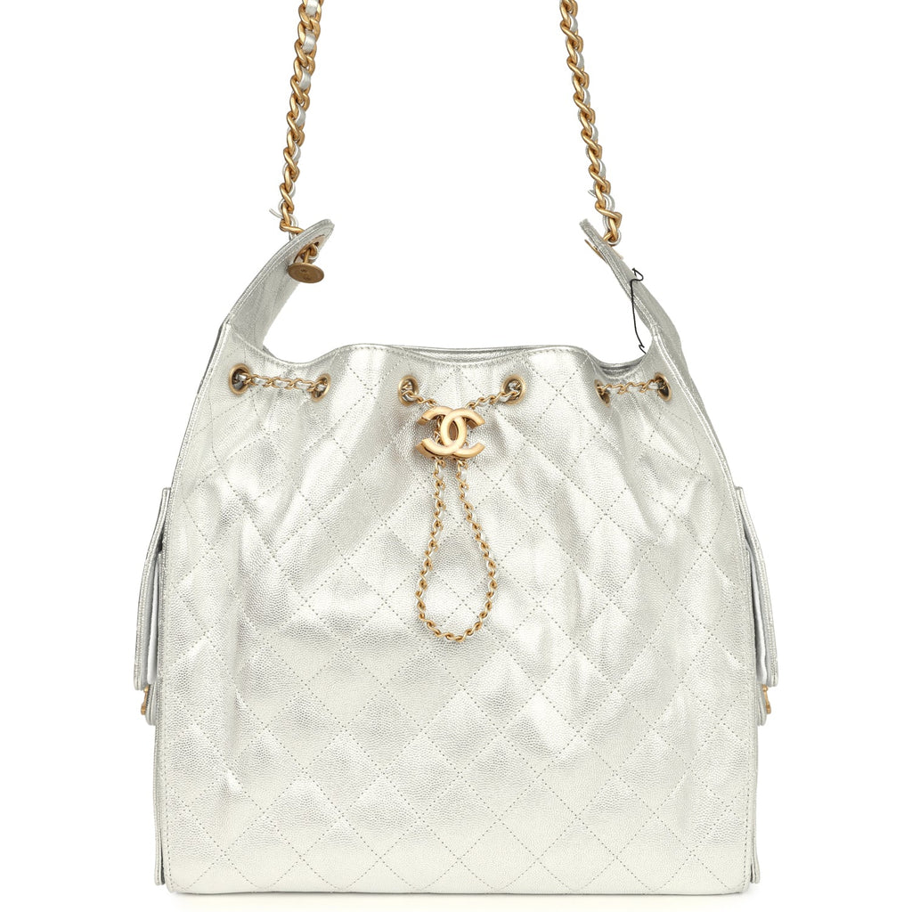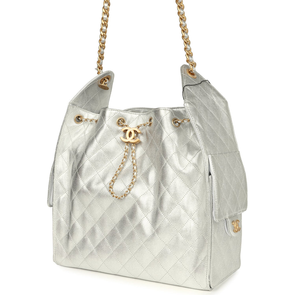 Chanel Medium 25 Hobo Bag Metallic Silver Caviar Antique Gold Hardware