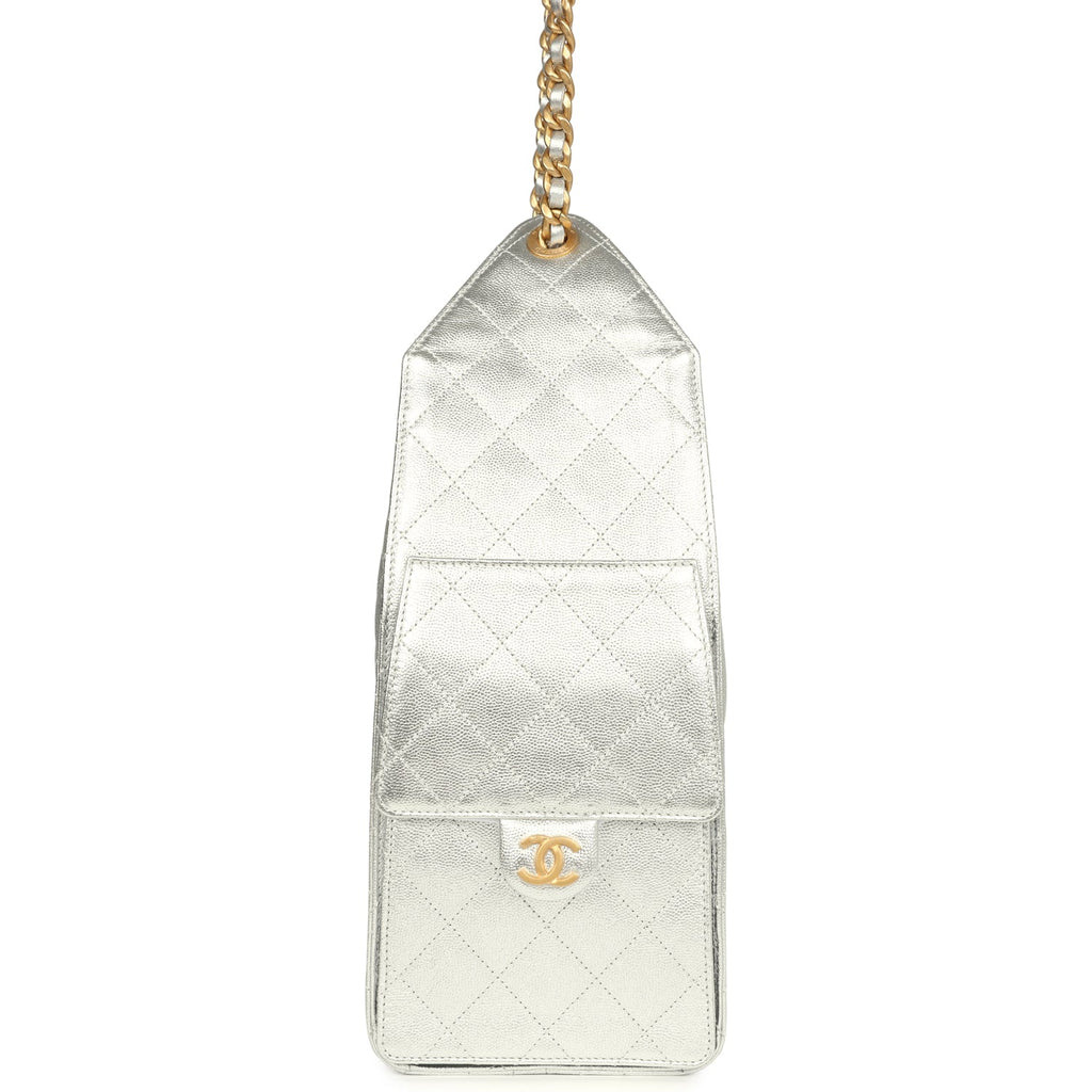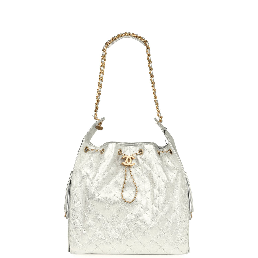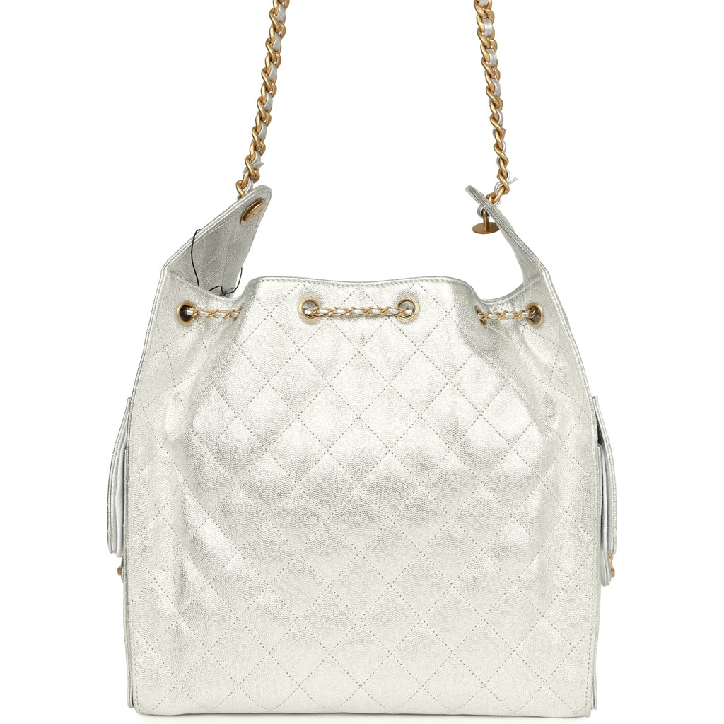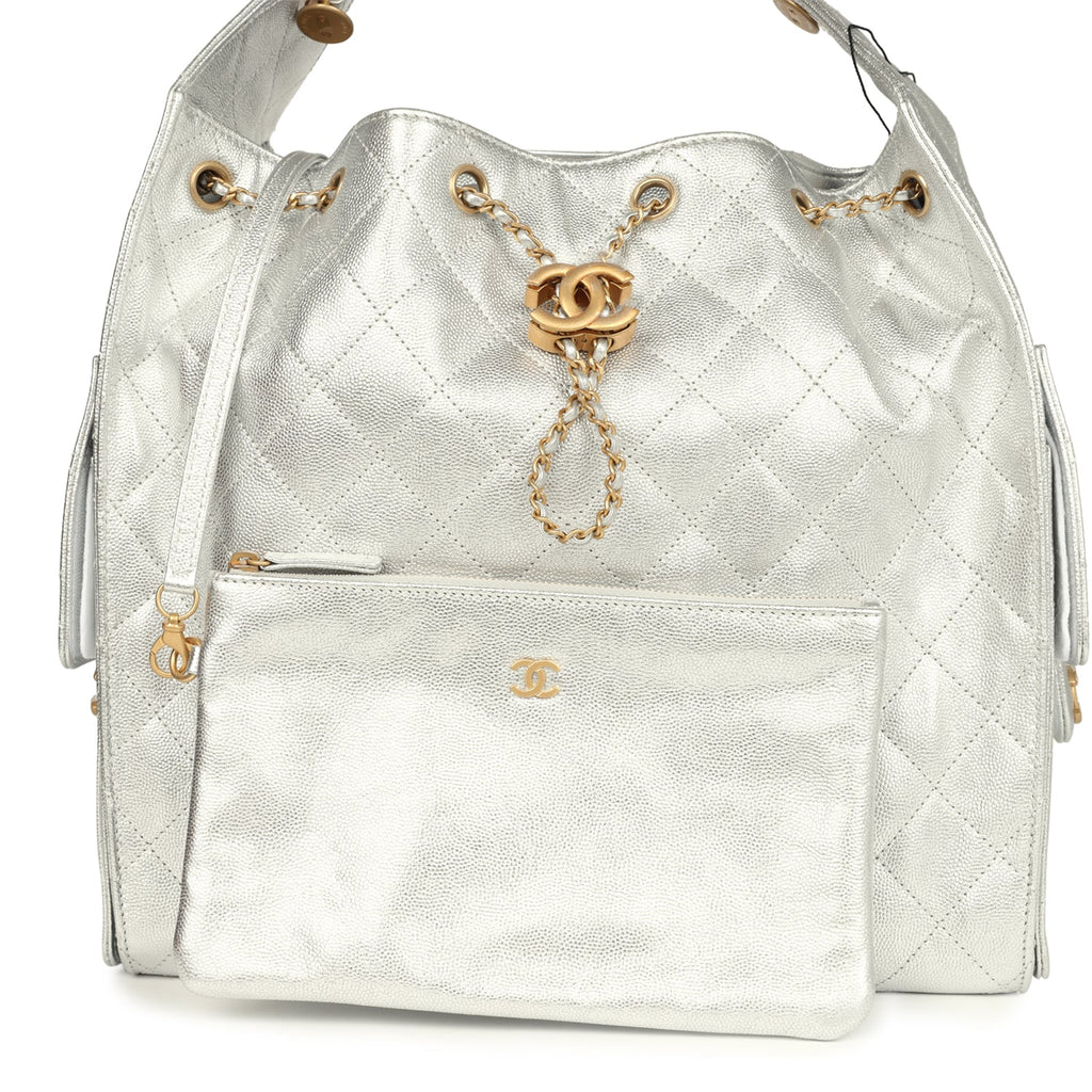 Chanel Medium 25 Hobo Bag Metallic Silver Caviar Antique Gold Hardware