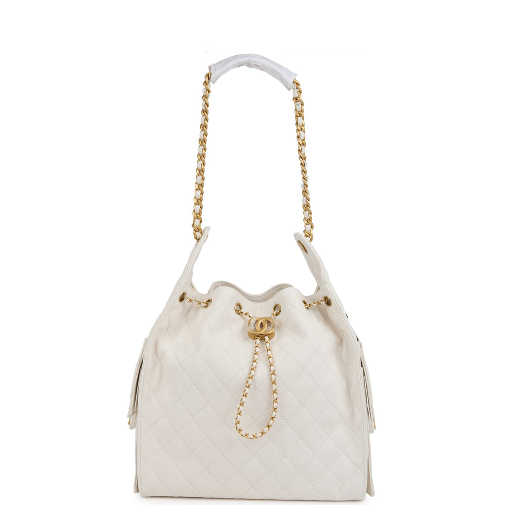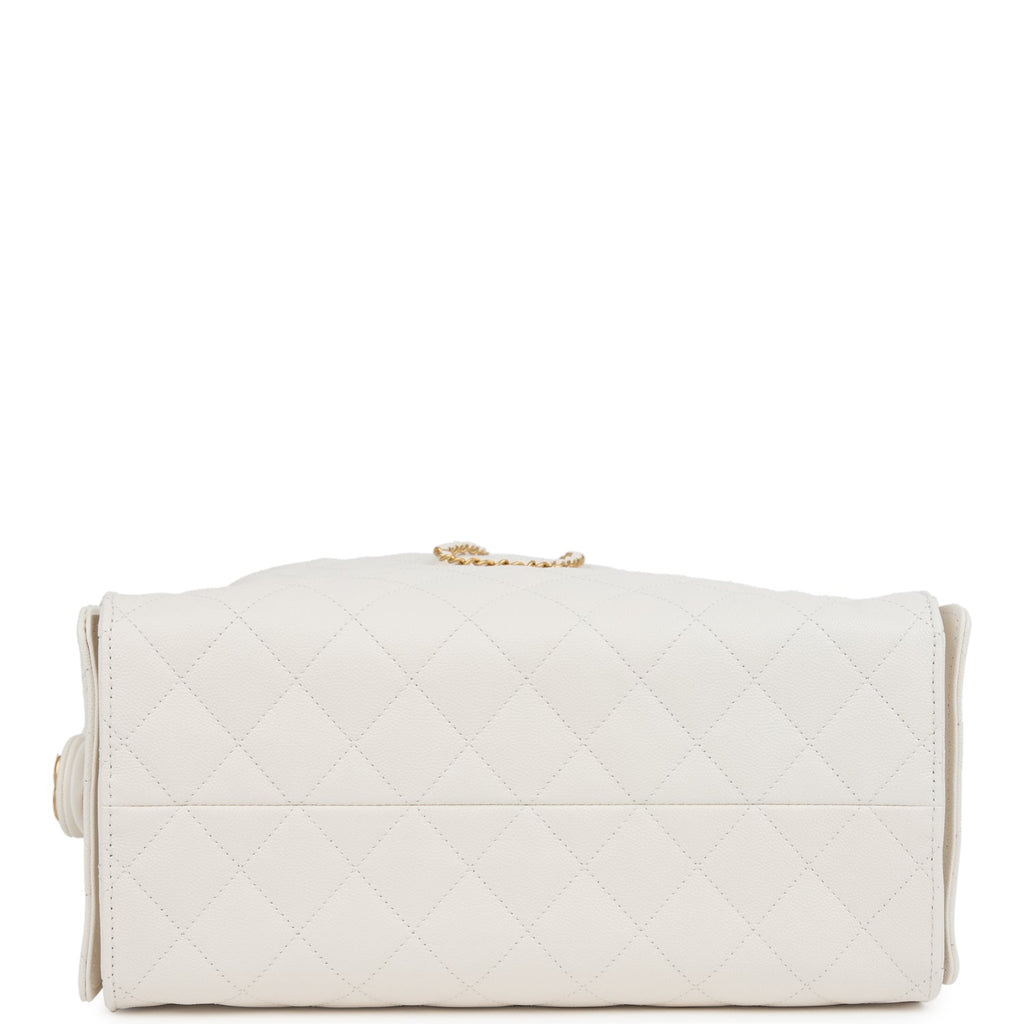 Chanel Medium 25 Hobo Bag White Caviar Antique Gold Hardware