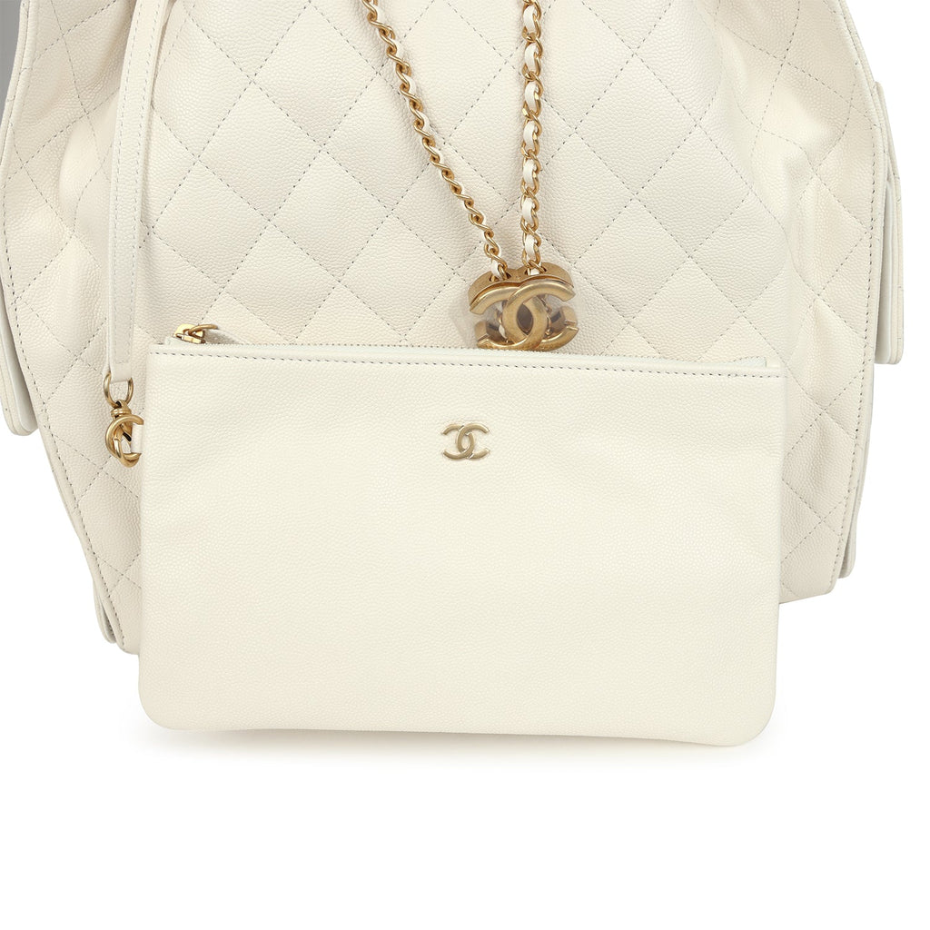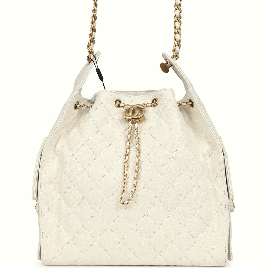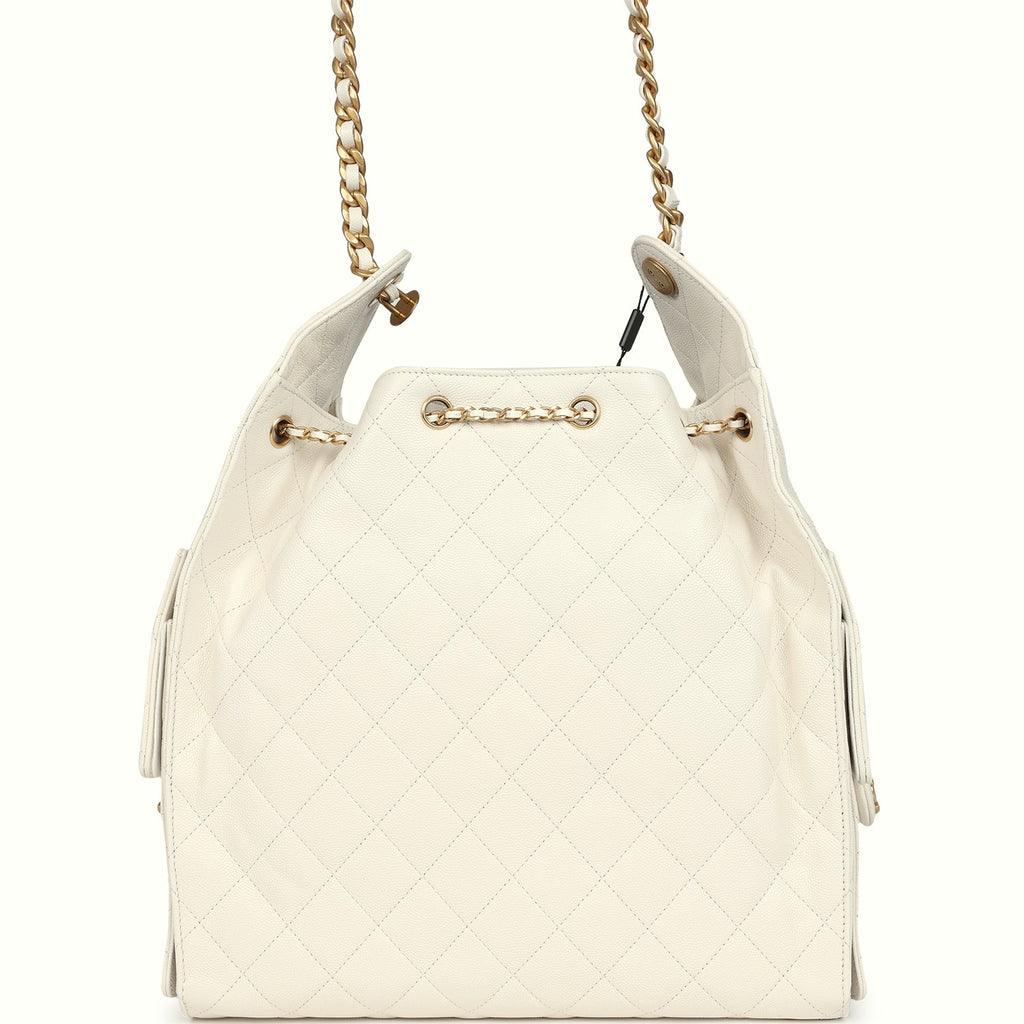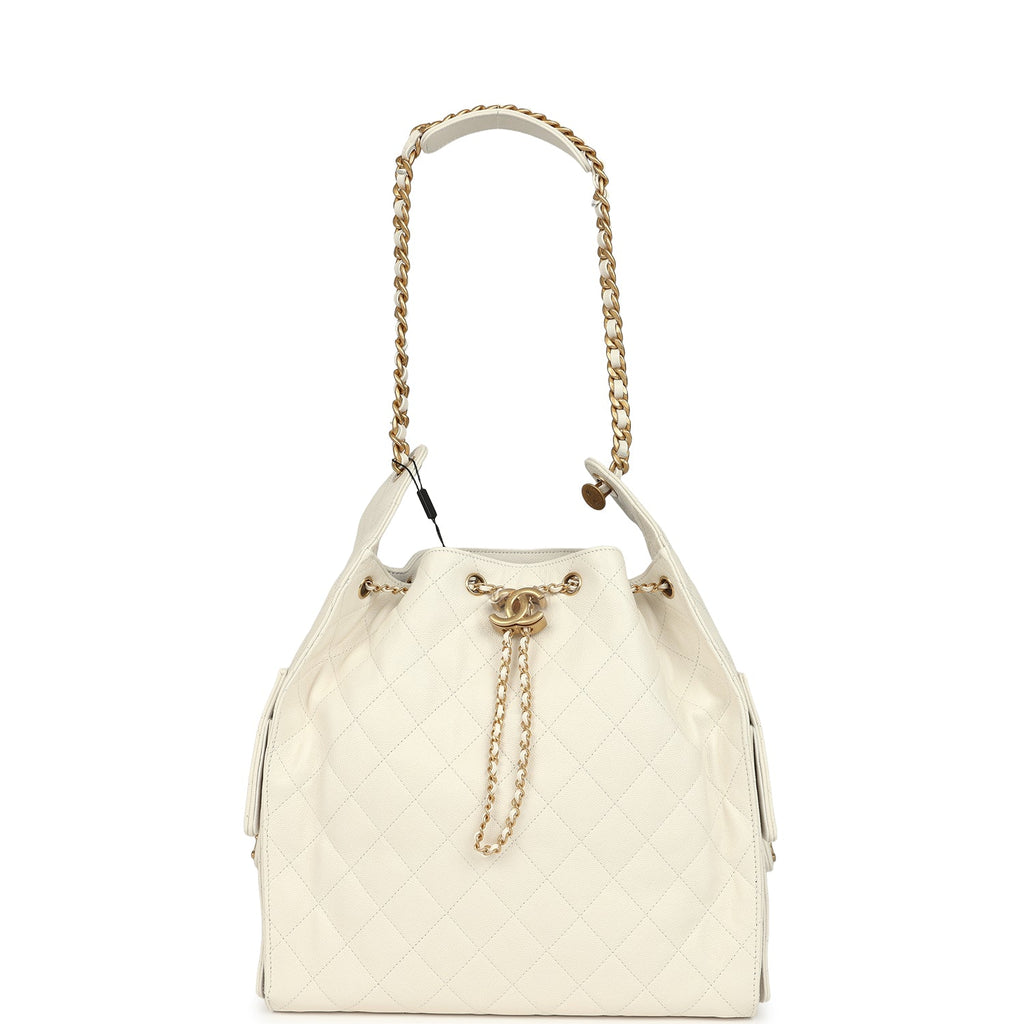 Chanel Medium 25 Hobo Bag White Caviar Antique Gold Hardware