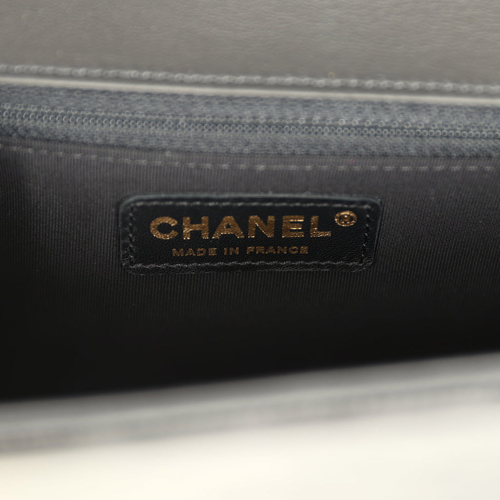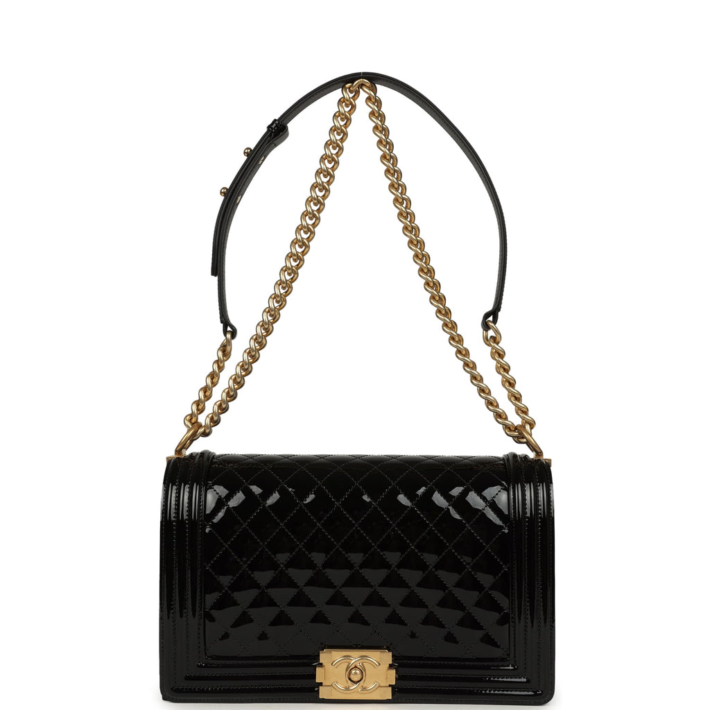 Chanel Medium Boy Bag Black Patent Antique Gold Hardware