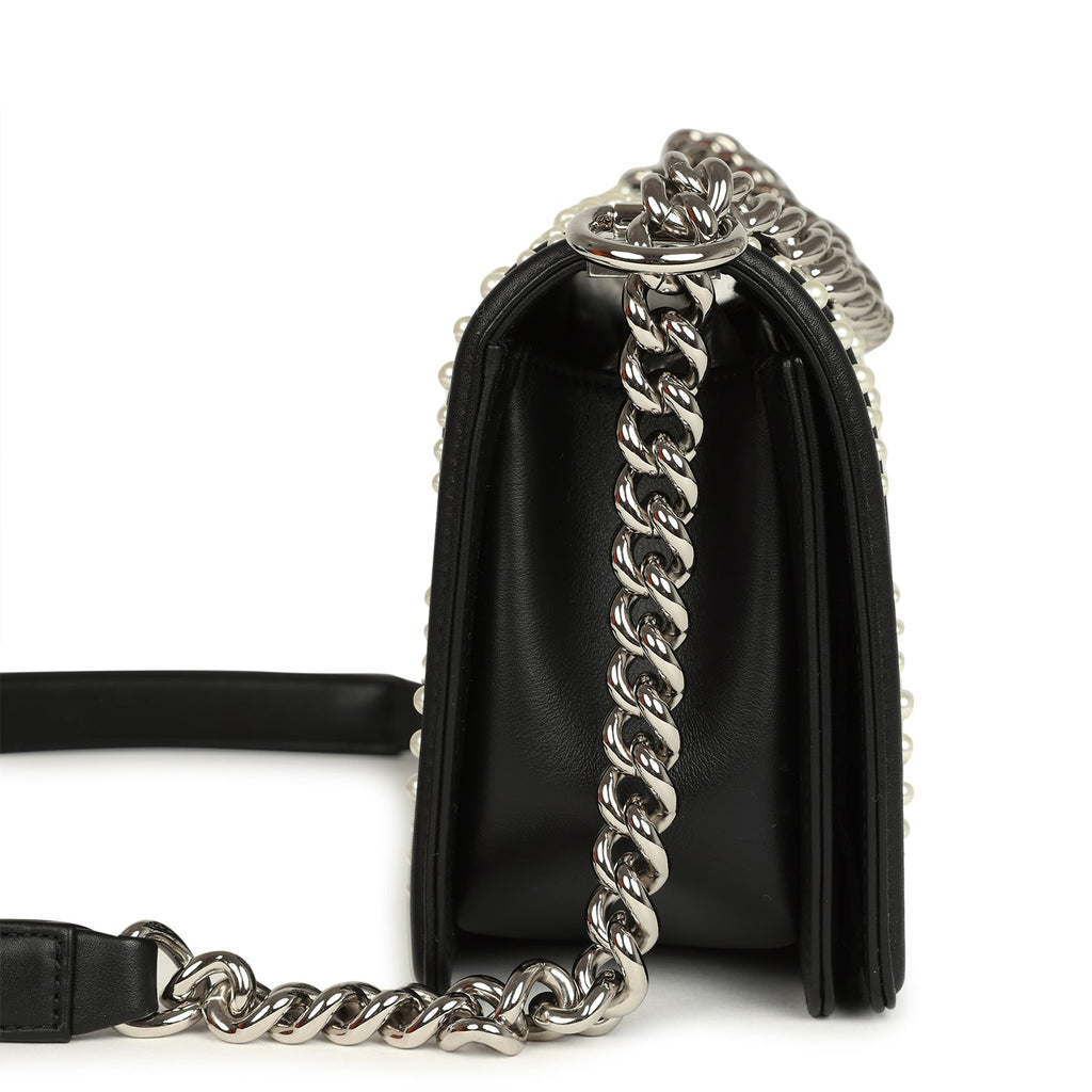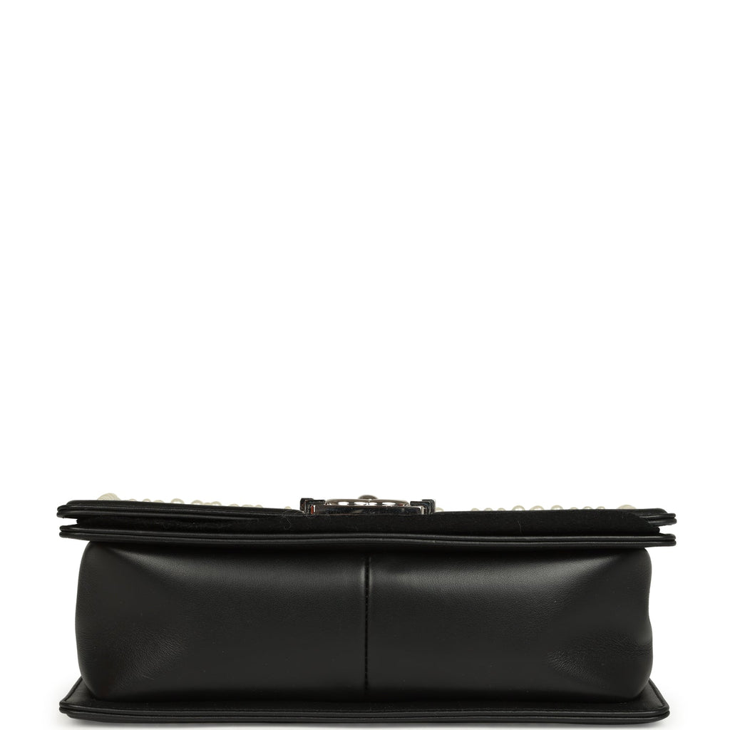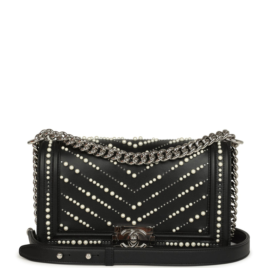 Chanel Medium Boy Bag Black Pearl Chevron Calfskin Silver Hardware