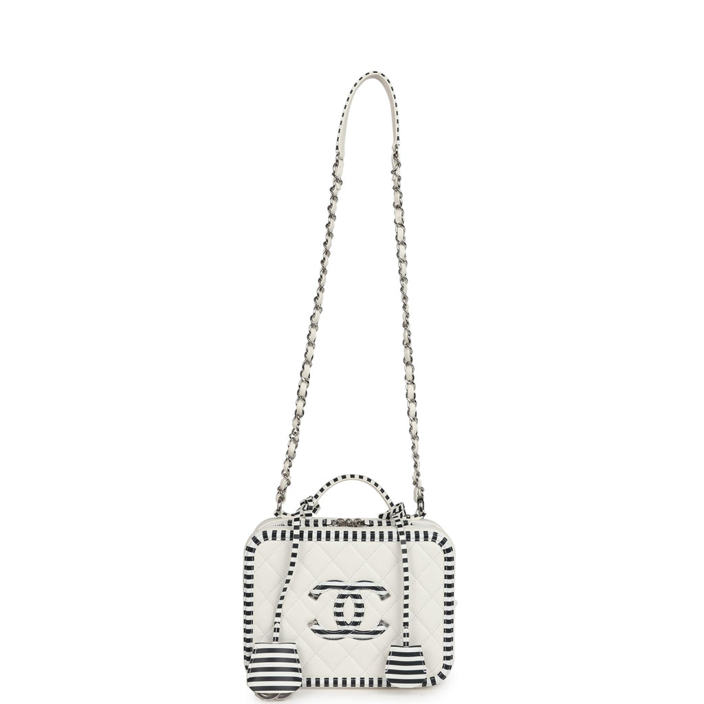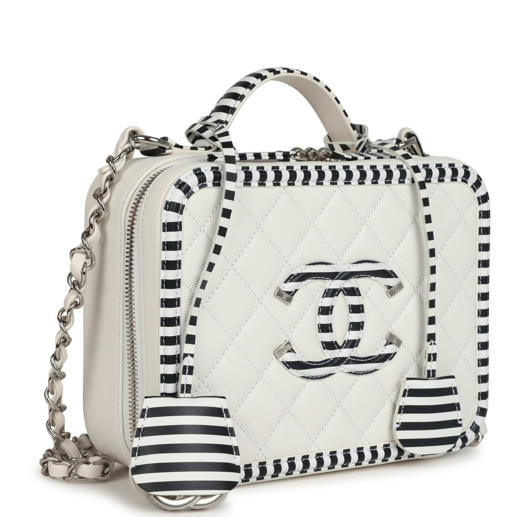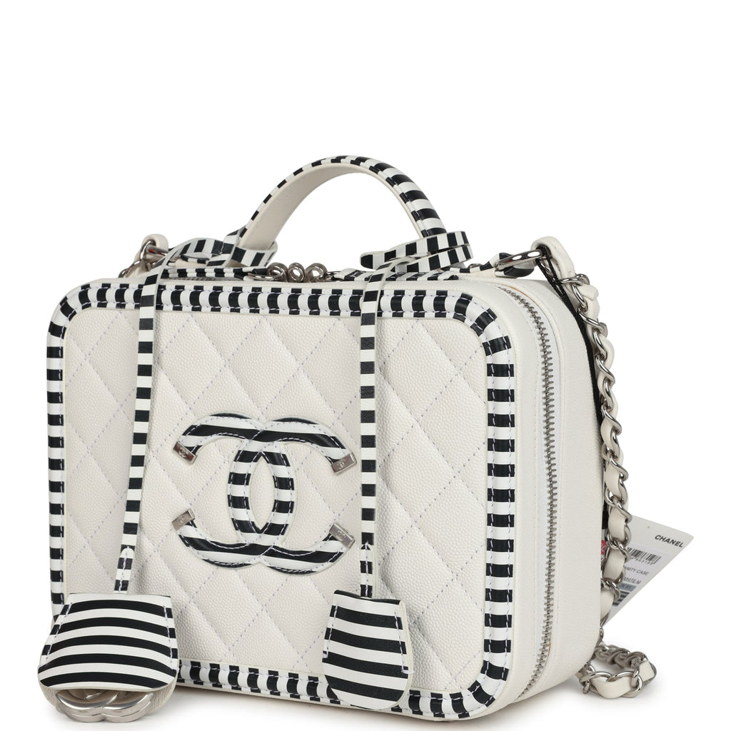 Chanel Medium CC Filigree Vanity Case Black and White Caviar Silver Hardware
