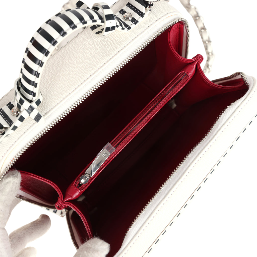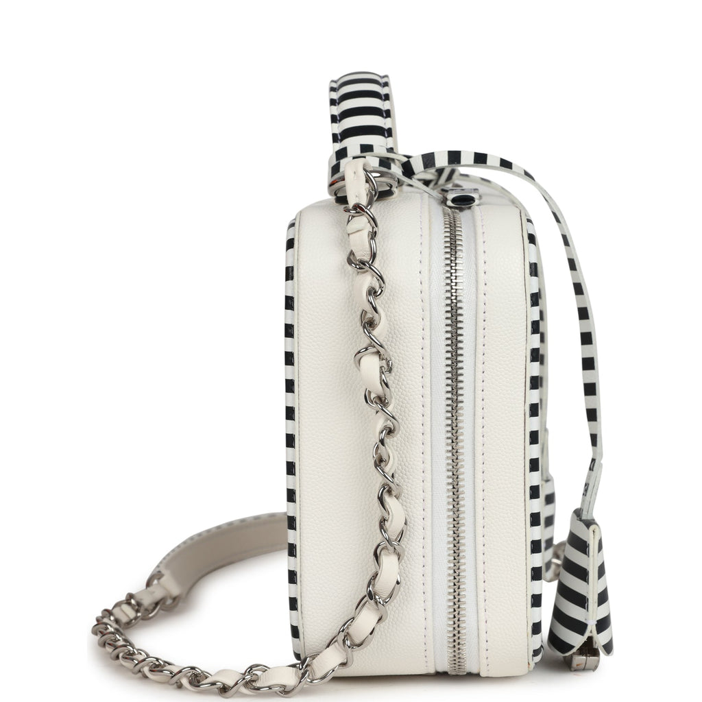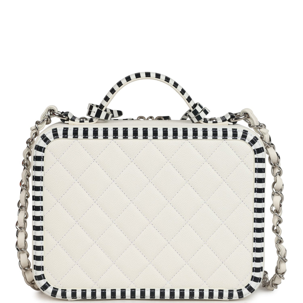 Chanel Medium CC Filigree Vanity Case Black and White Caviar Silver Hardware