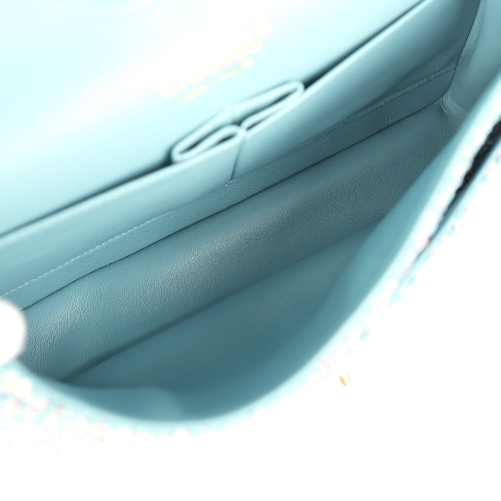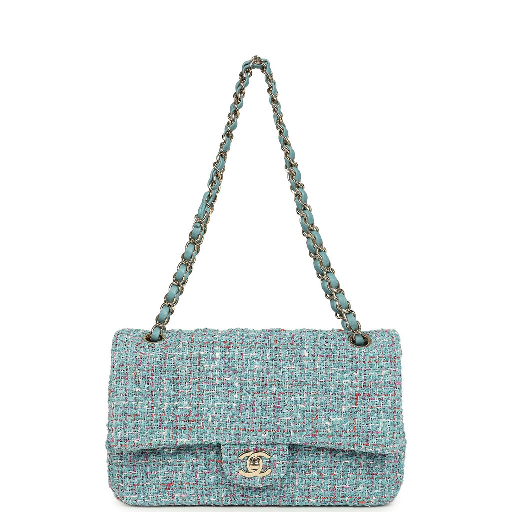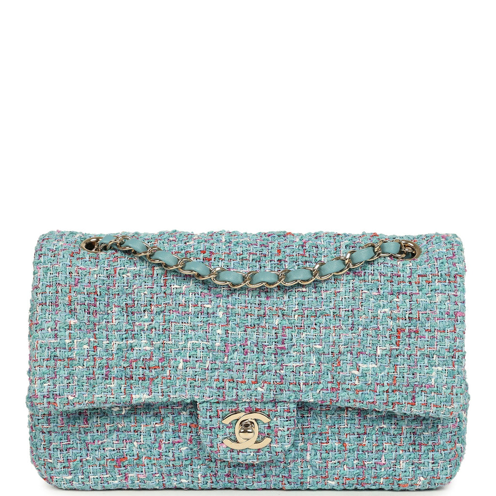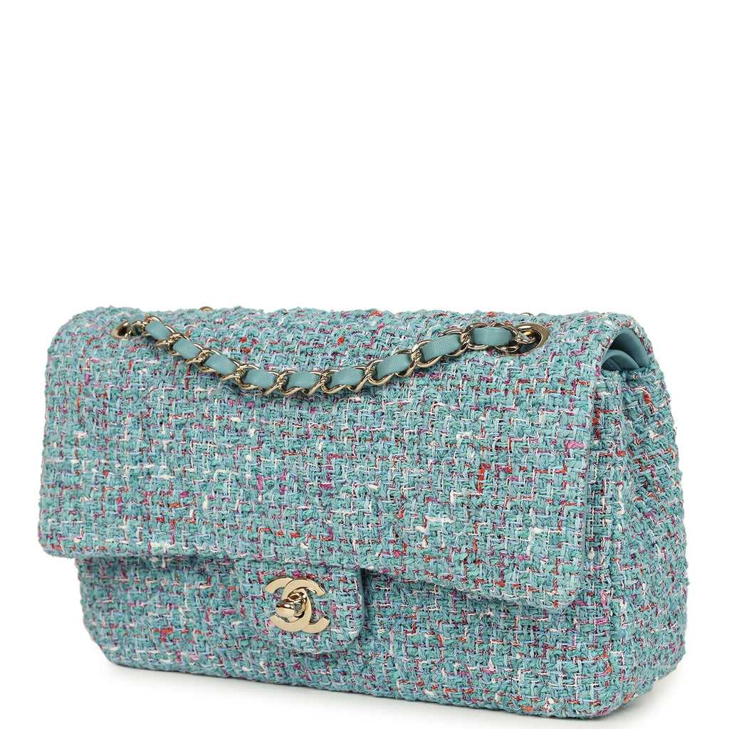 Chanel Medium Classic Double Flap Bag Blue Multi Tweed Light Gold Hardware
