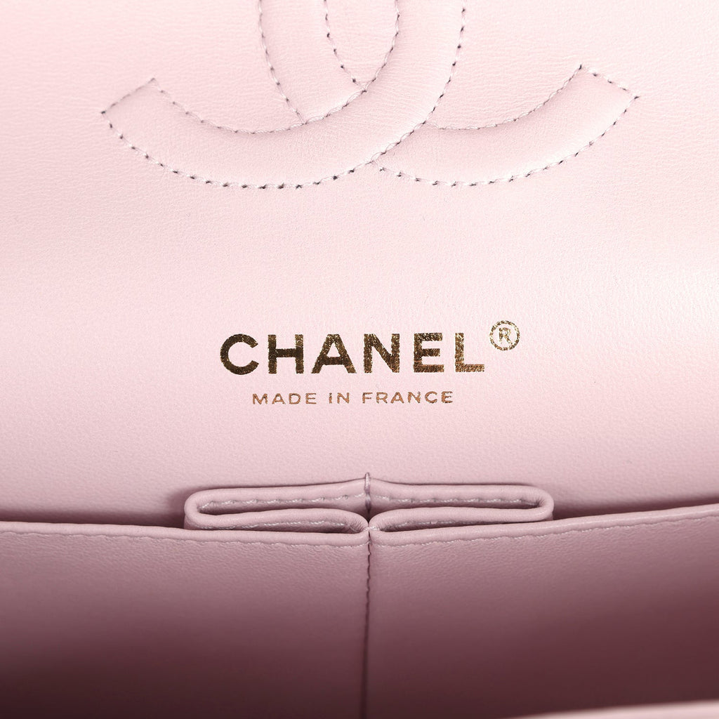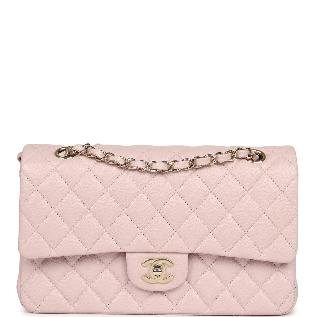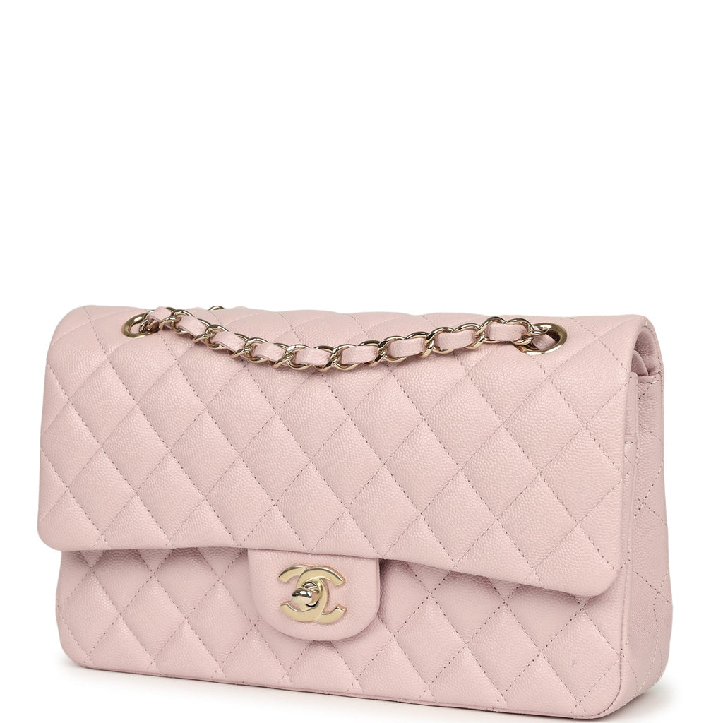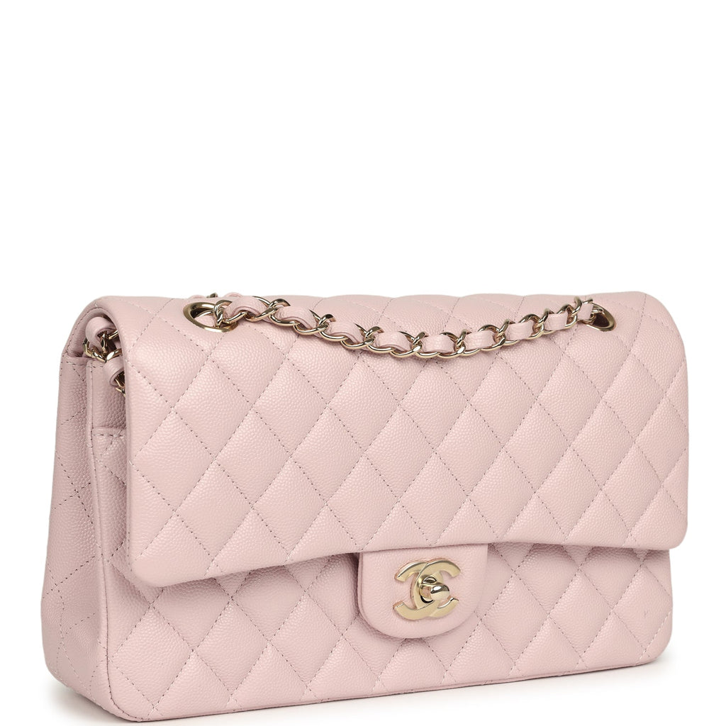 Chanel Medium Classic Double Flap Bag Light Pink Shiny Caviar Light Gold Hardware