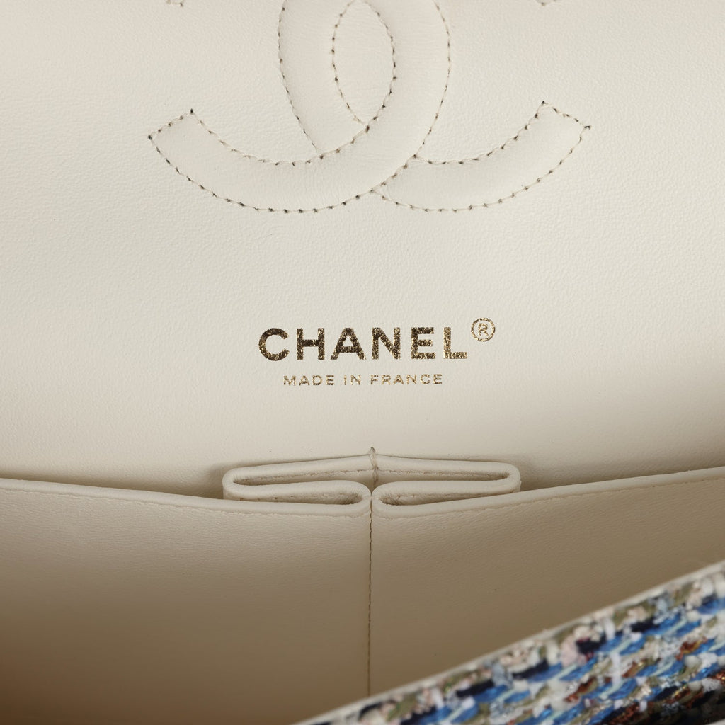 Chanel Medium Classic Double Flap Bag Multicolor Tweed Light Gold Hardware