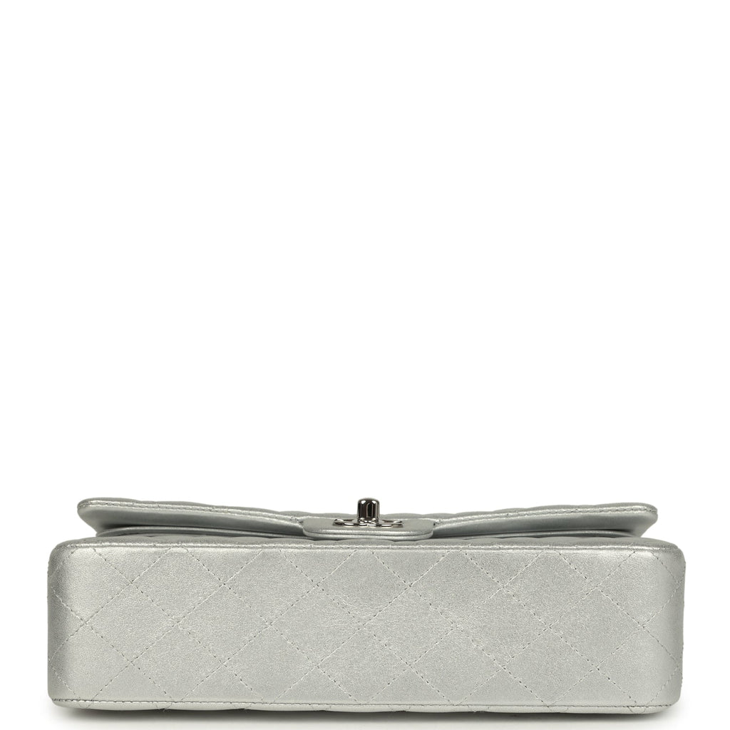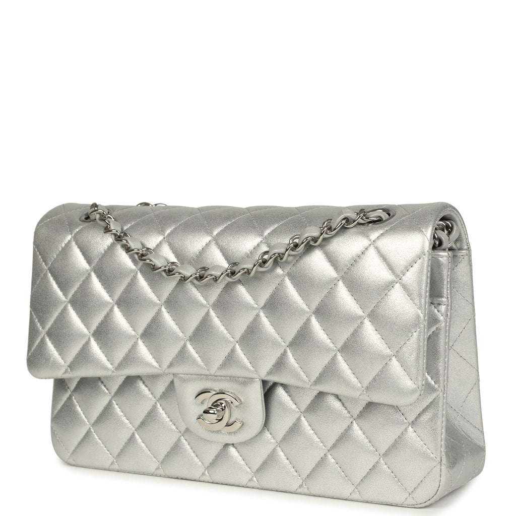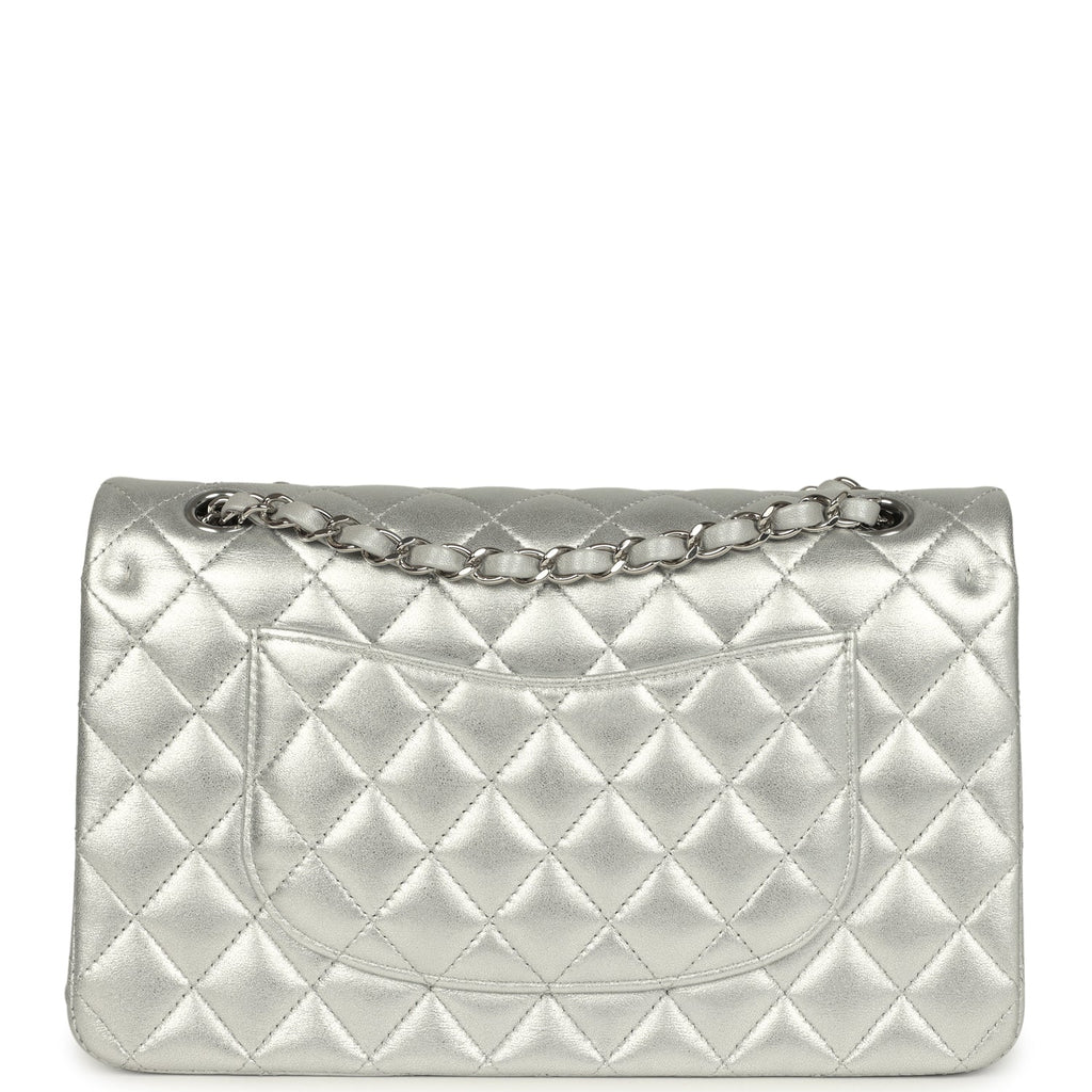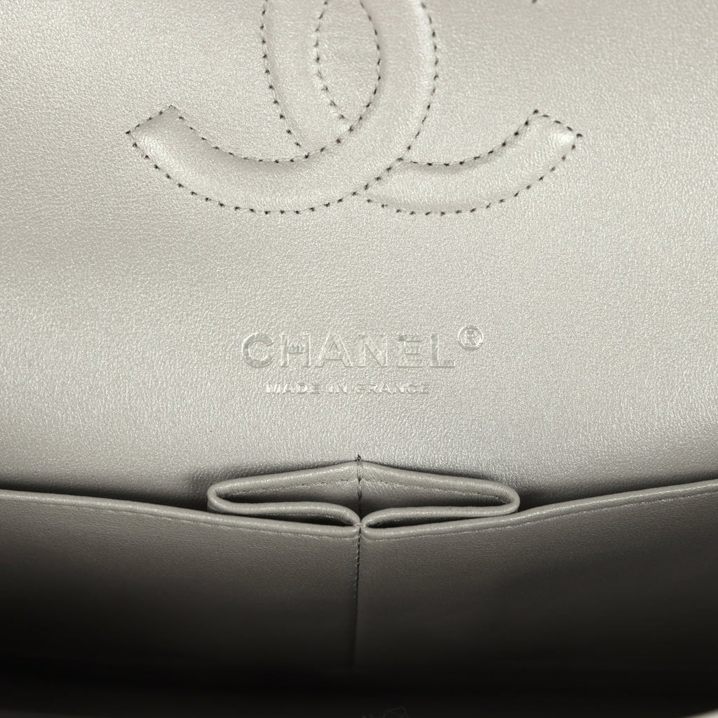 Chanel Medium Classic Double Flap Silver Metallic Lambskin Silver Hardware