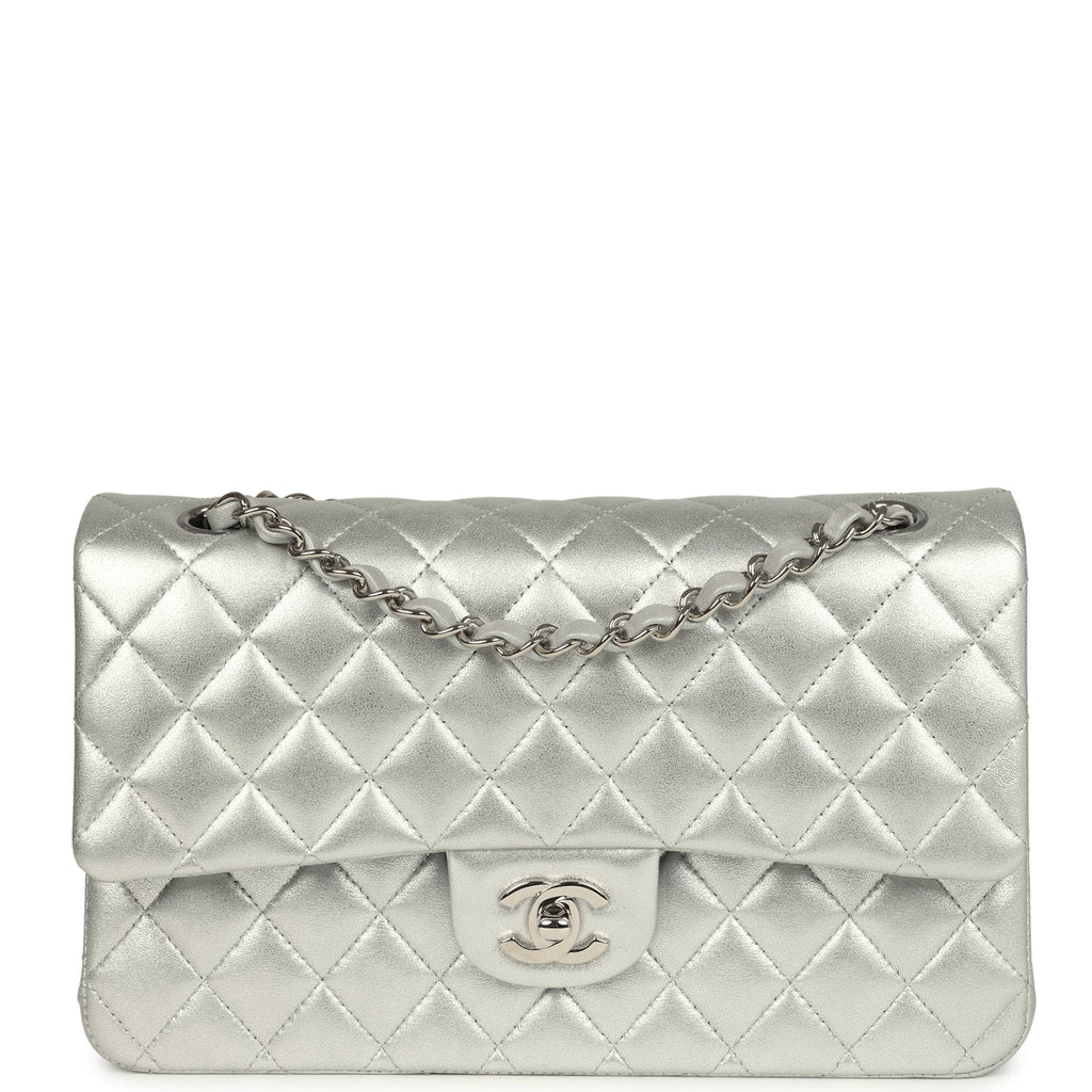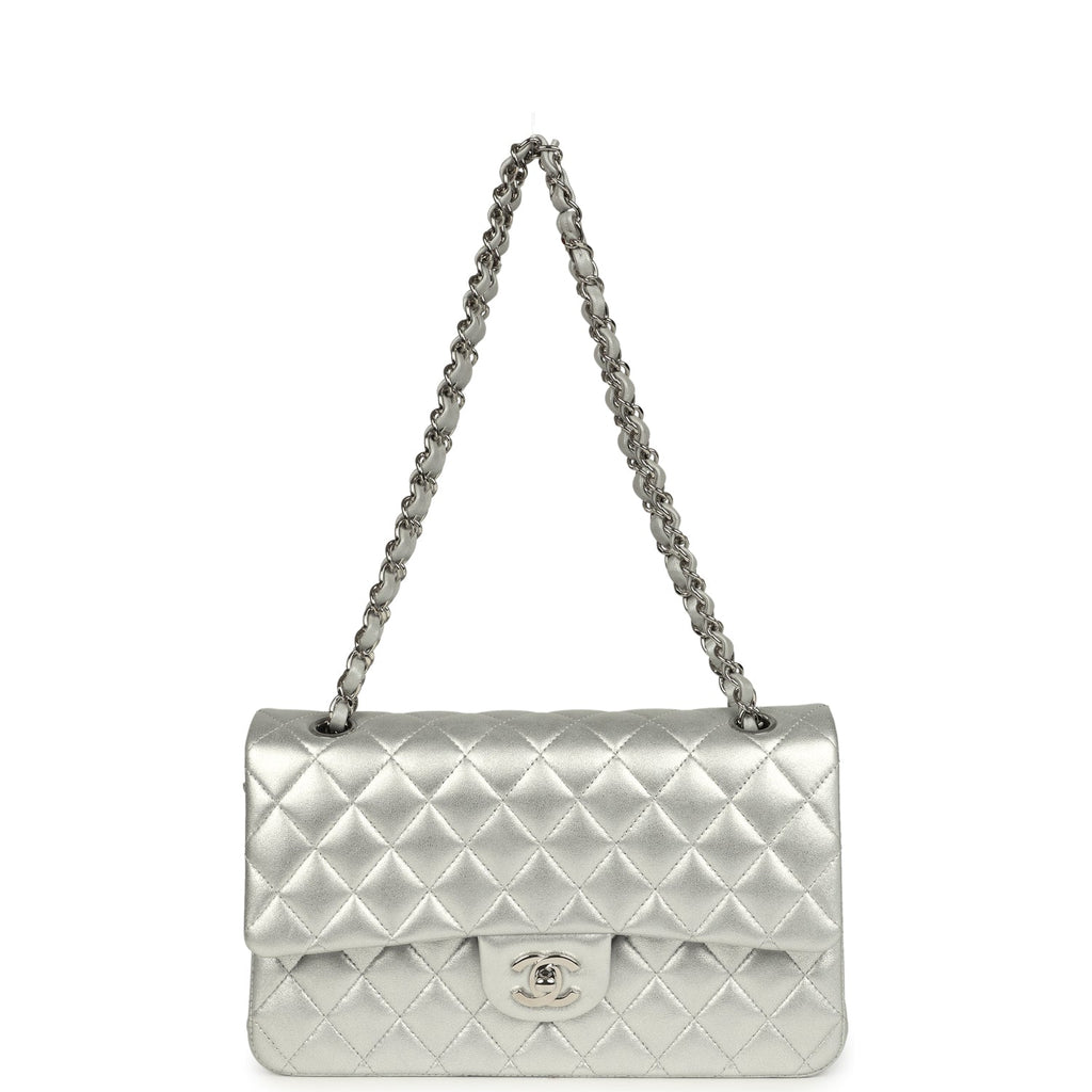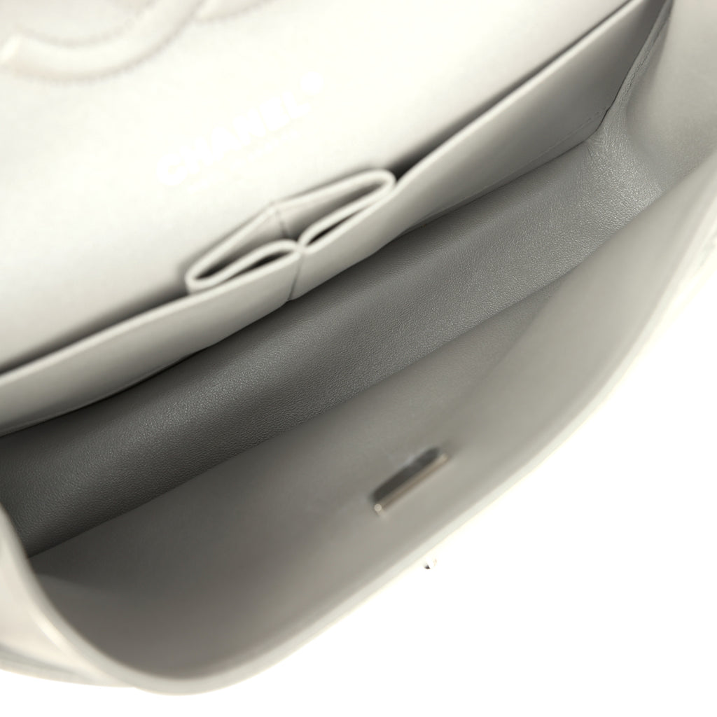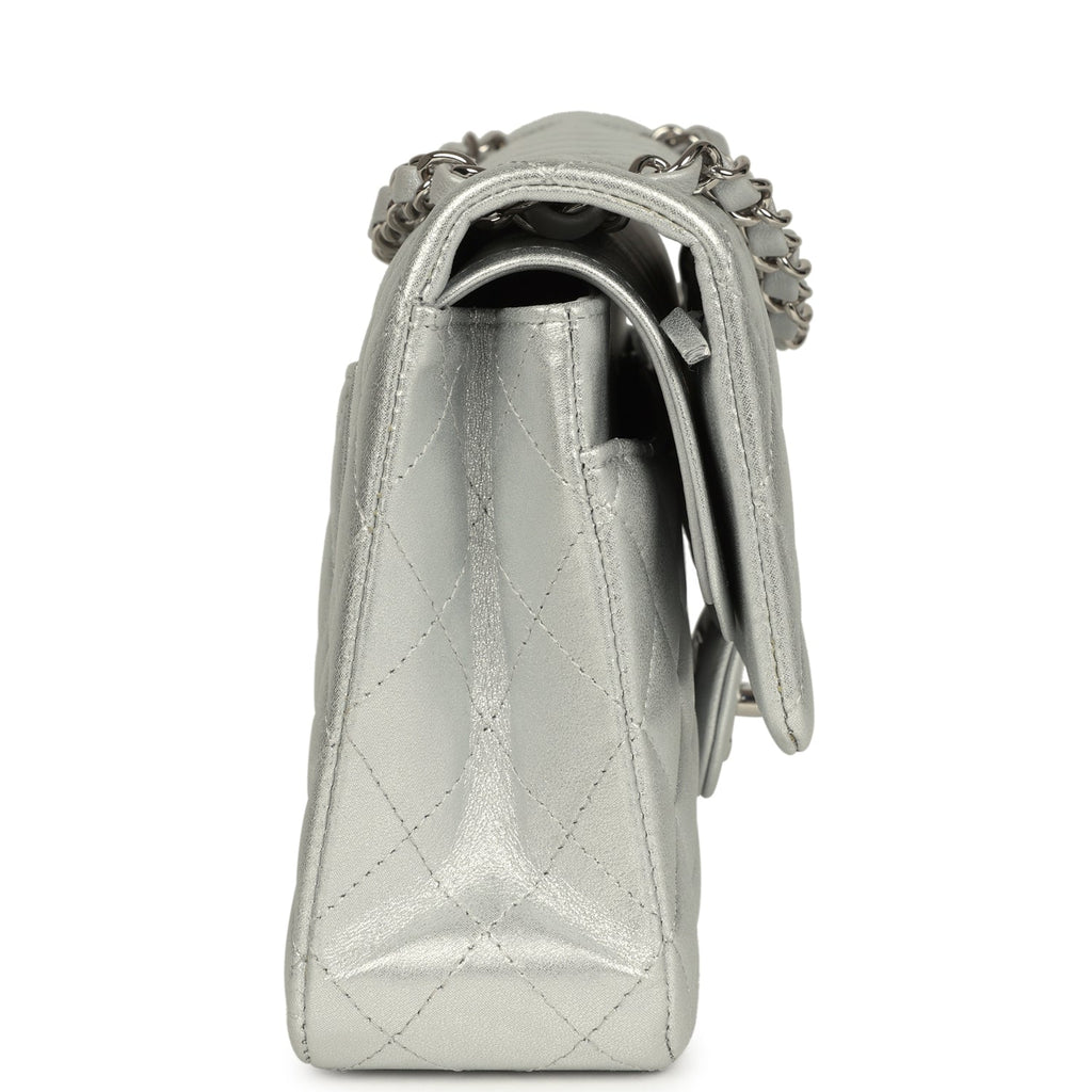 Chanel Medium Classic Double Flap Silver Metallic Lambskin Silver Hardware