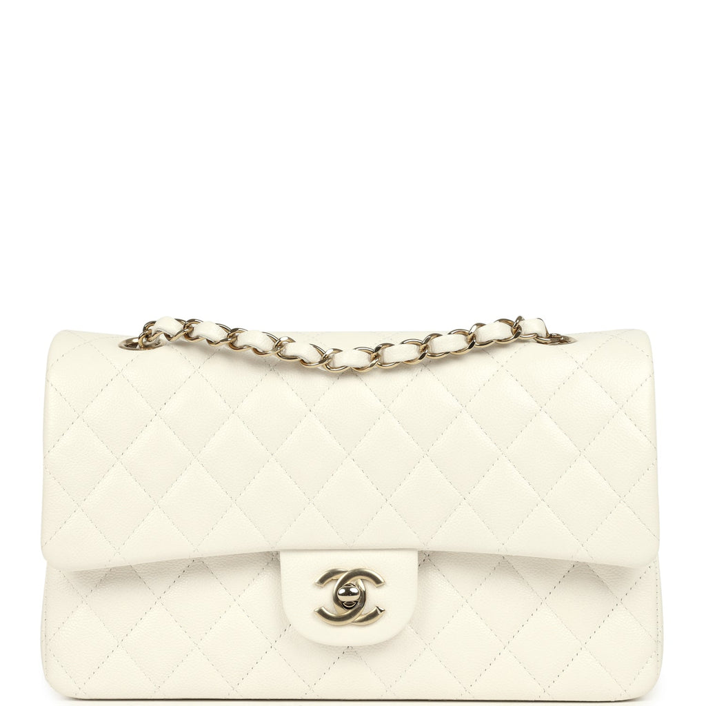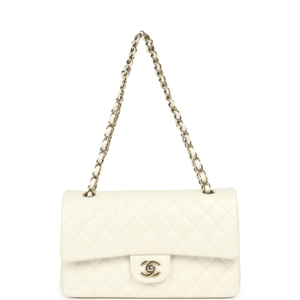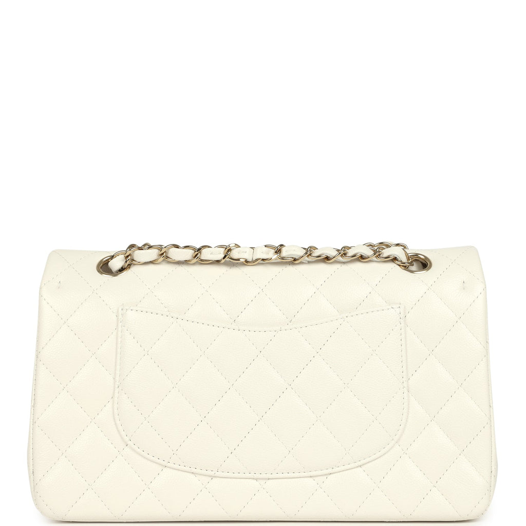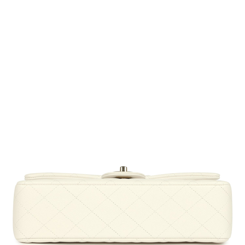 Chanel Medium Classic Double Flap White Caviar Light Gold Hardware