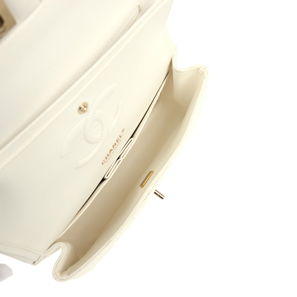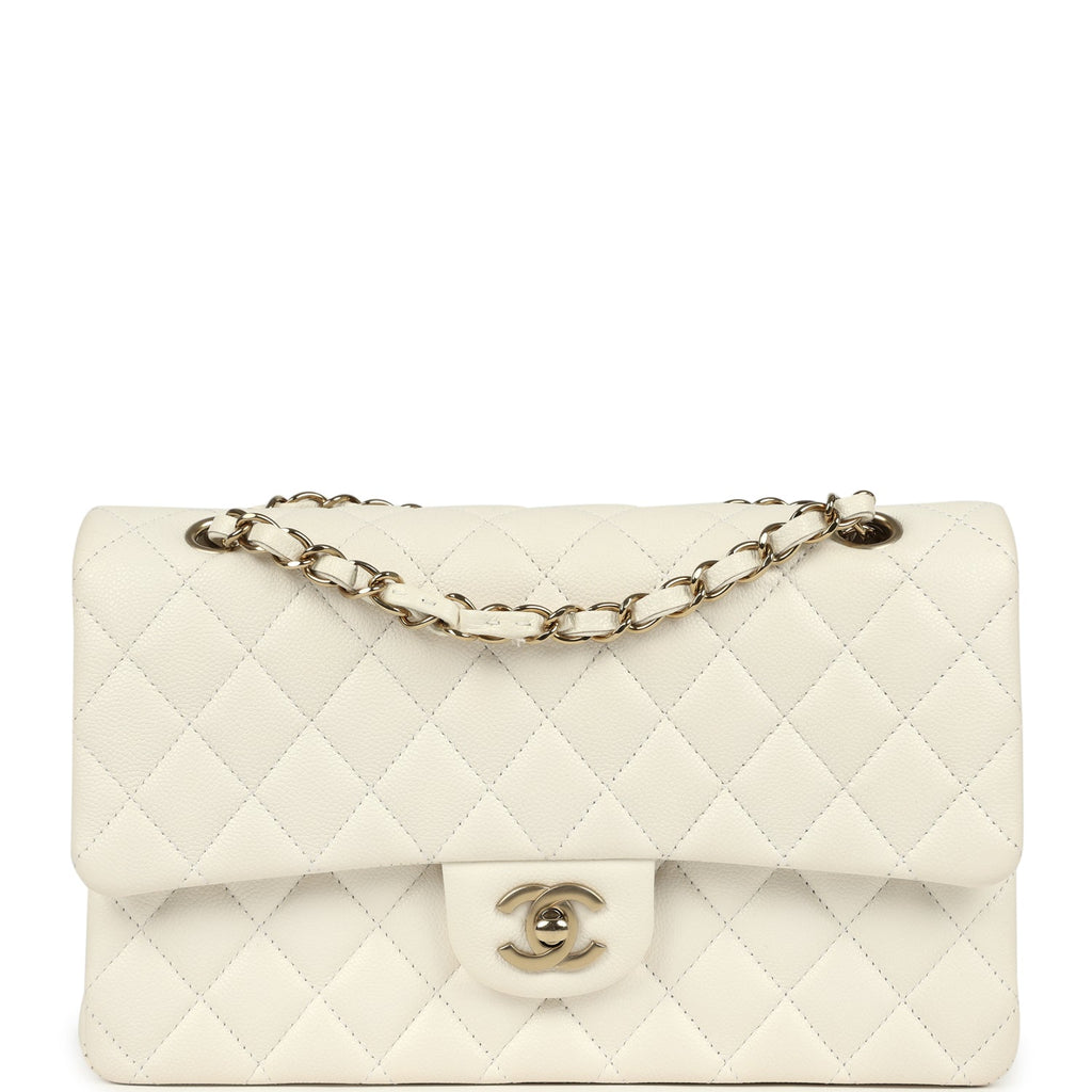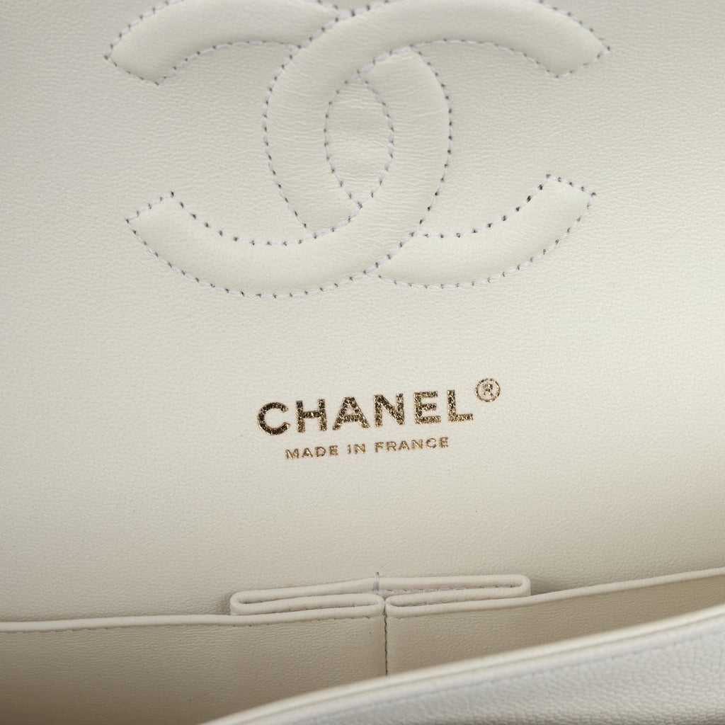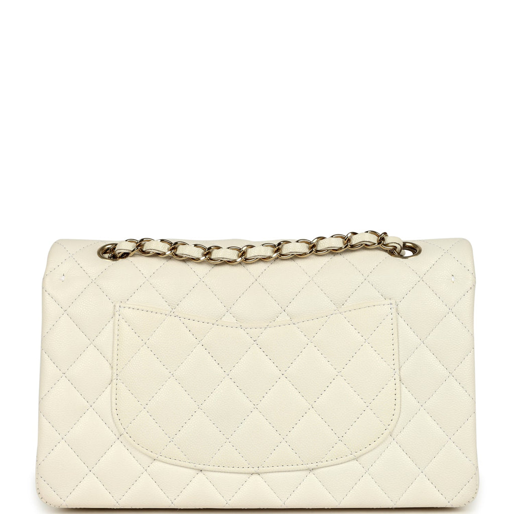 Chanel Medium Classic Double Flap White Caviar Light Gold Hardware