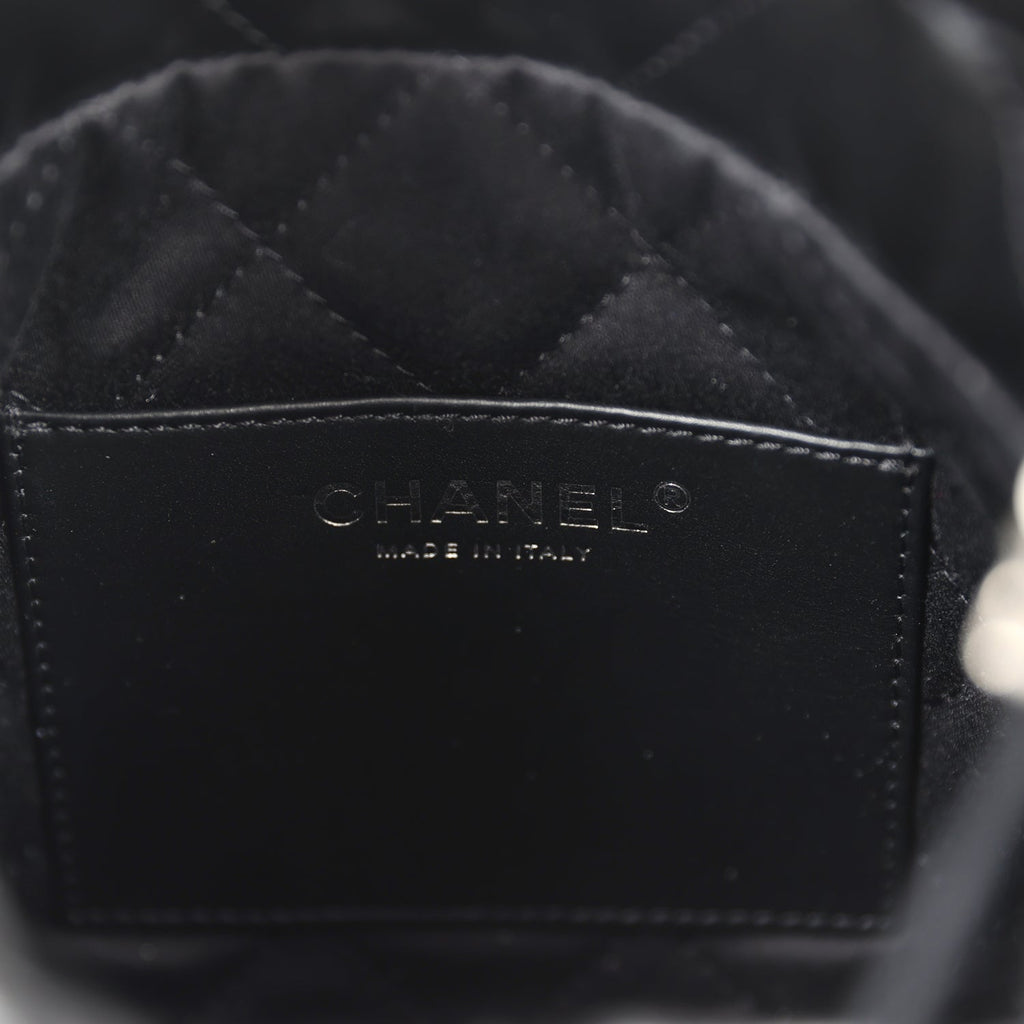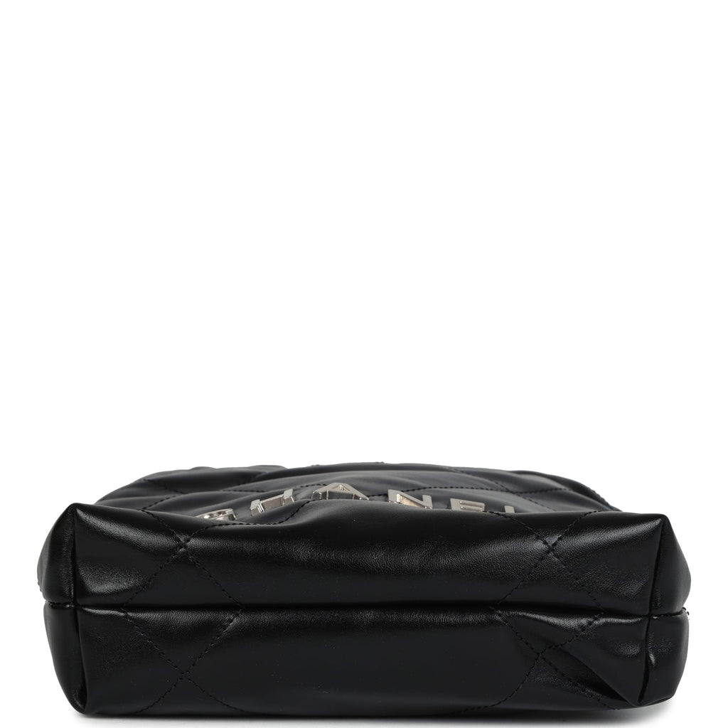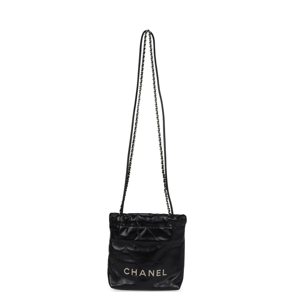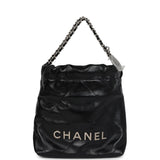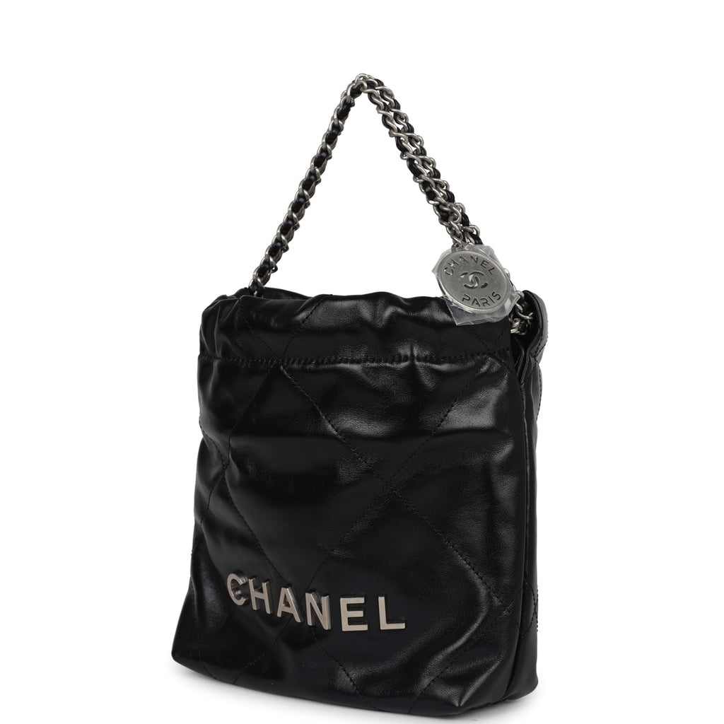 Chanel Mini 22 Bag Black Shiny Calfskin Brushed Silver Hardware