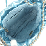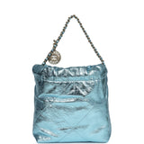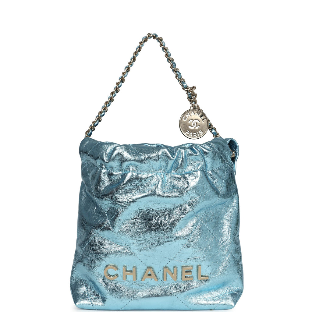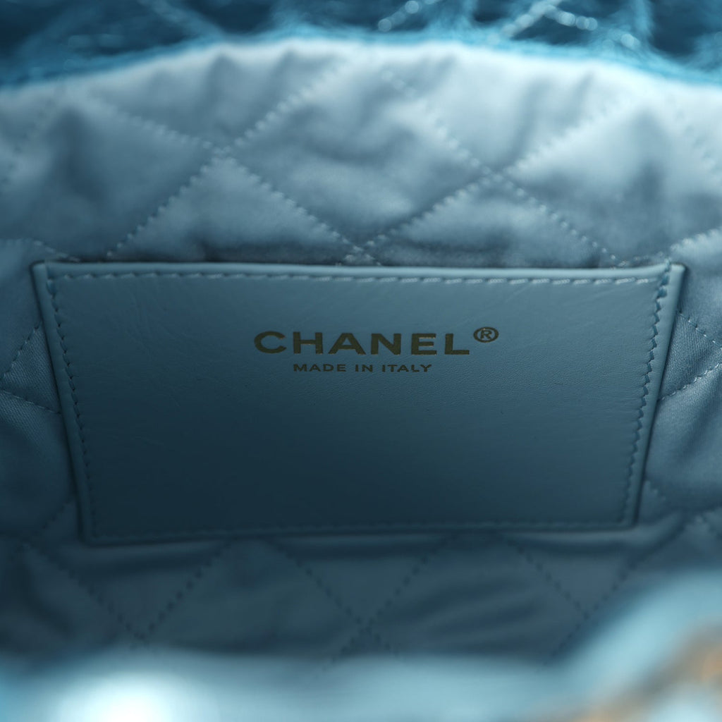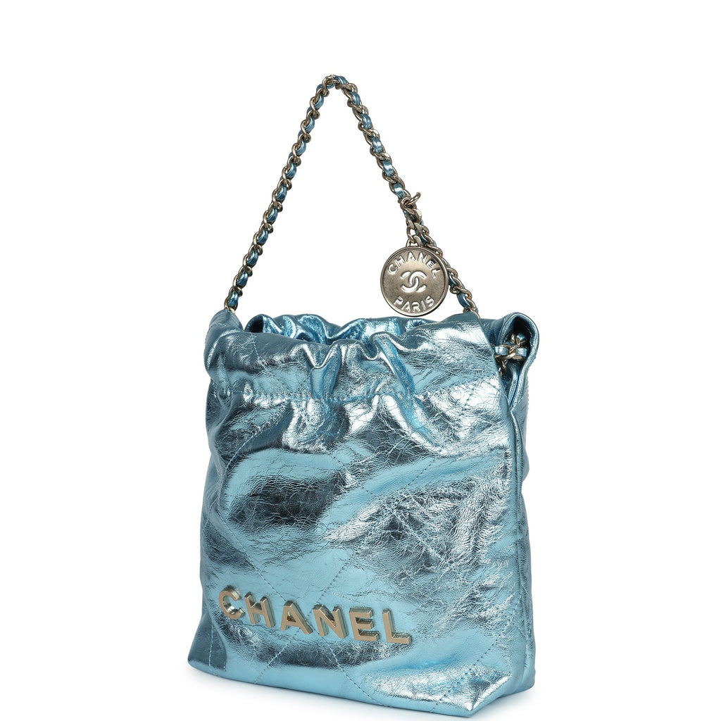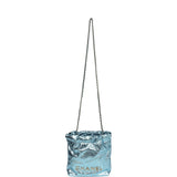 Chanel Mini 22 Bag Blue Metallic Calfskin Brushed Gold Hardware