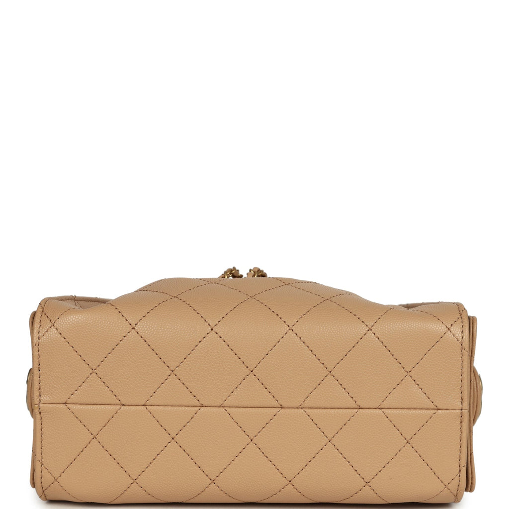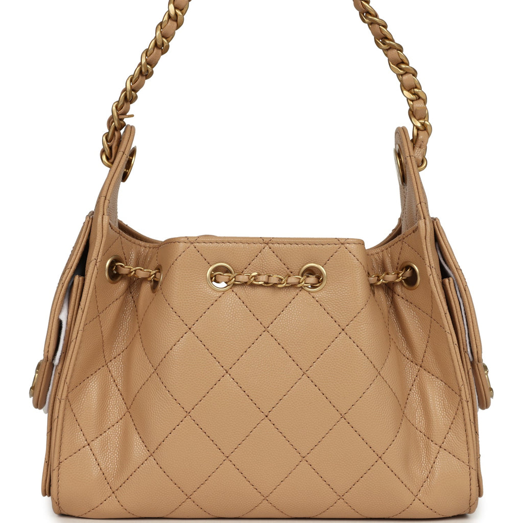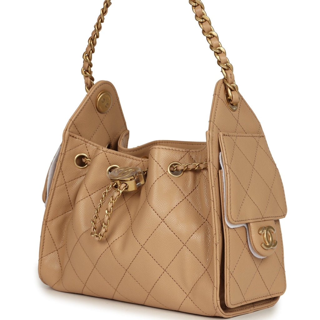 Chanel Mini 25 Hobo Bag Beige Caviar Antique Gold Hardware