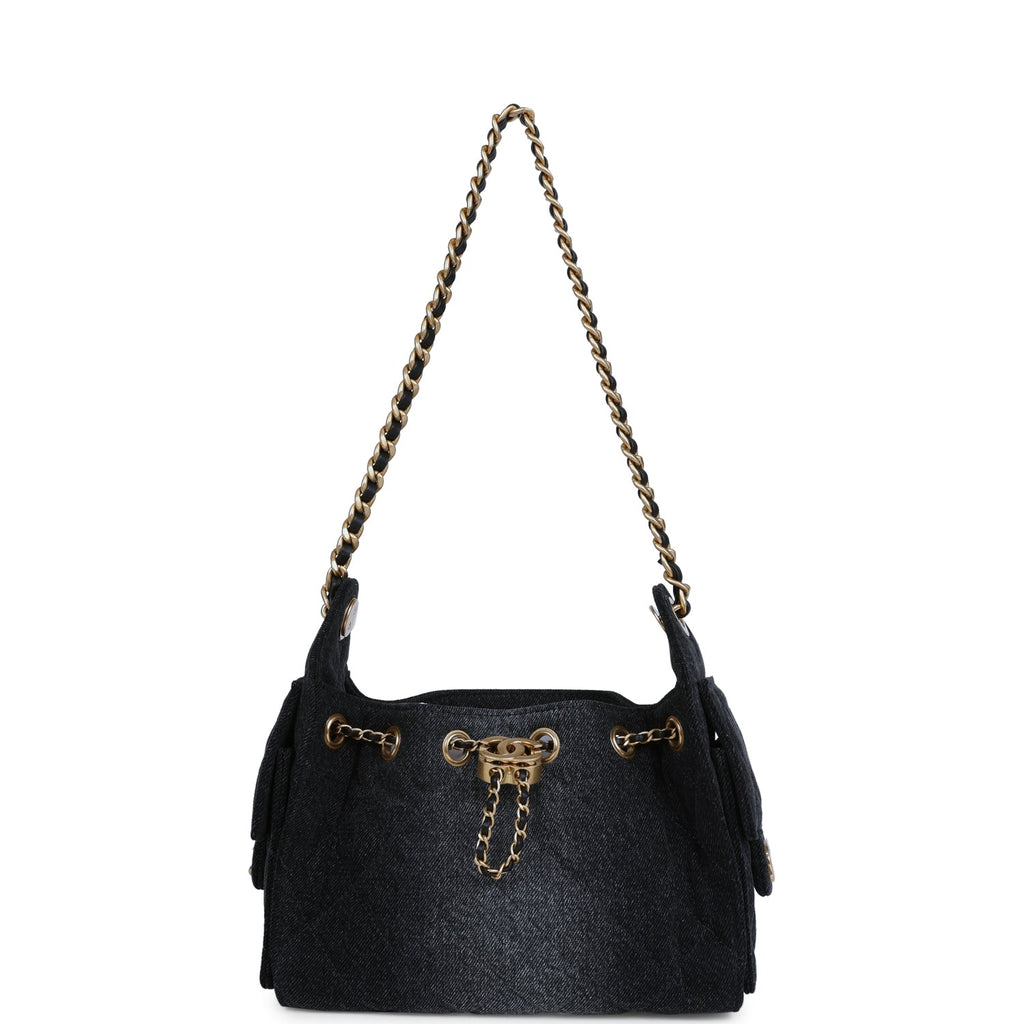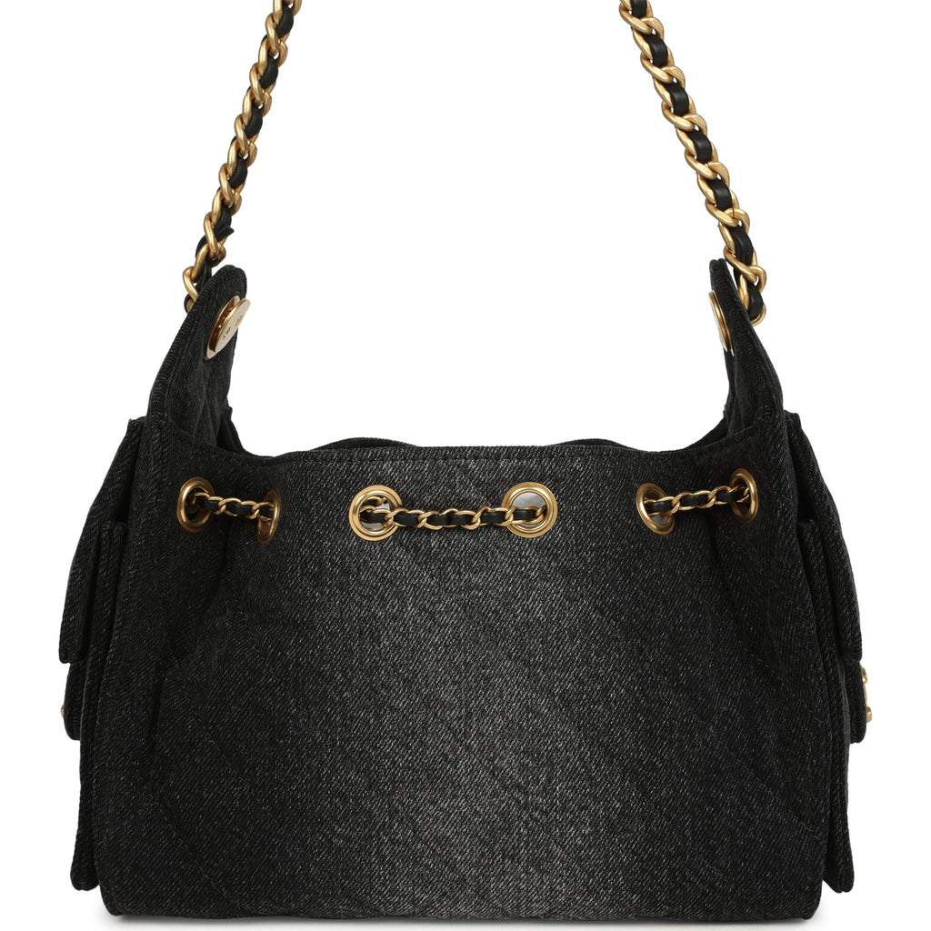 Chanel Mini 25 Hobo Bag Black Washed Denim Antique Gold Hardware