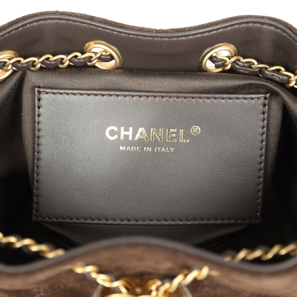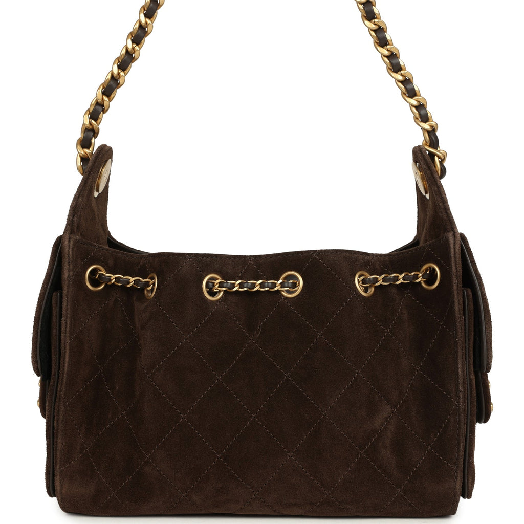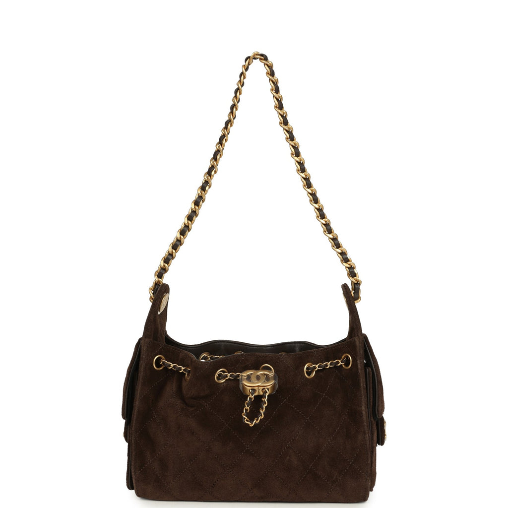 Chanel Mini 25 Hobo Bag Dark Brown Suede Antique Gold Hardware