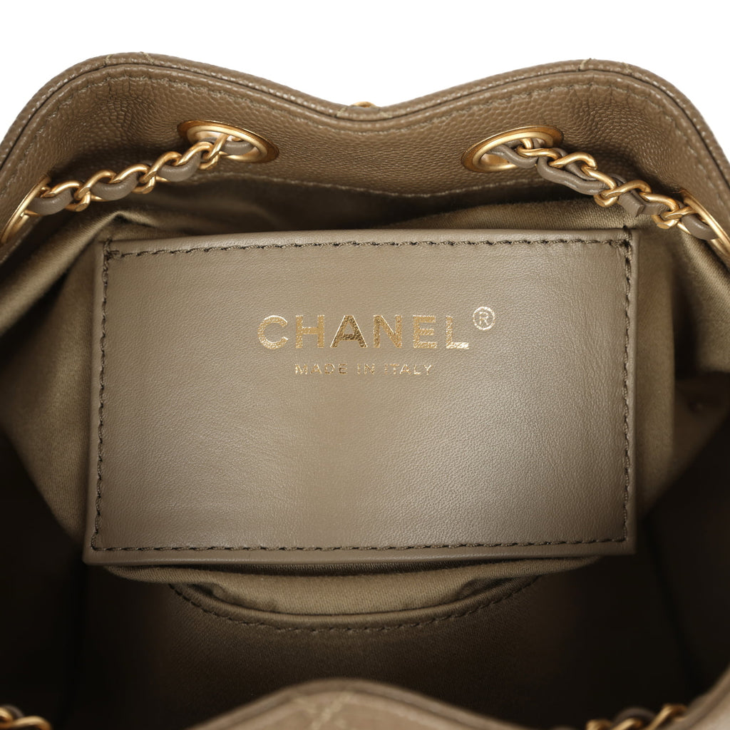 Chanel Mini 25 Hobo Bag Dark Khaki Caviar Antique Gold Hardware