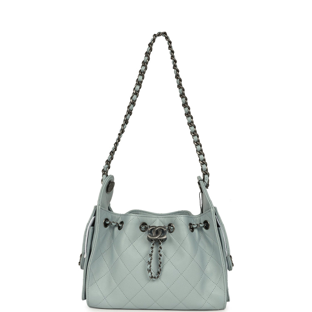 Chanel Mini 25 Hobo Bag Light Blue Caviar Aged Ruthenium Hardware