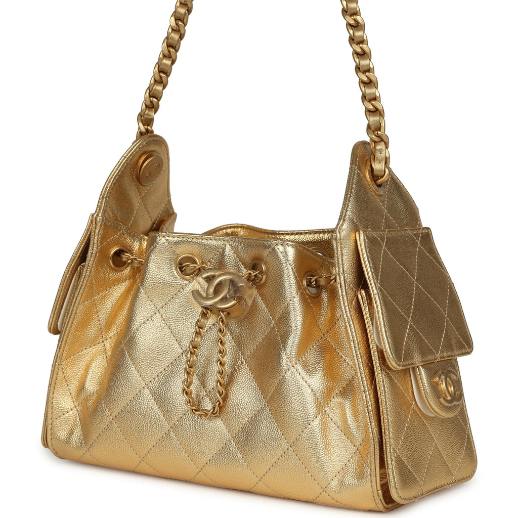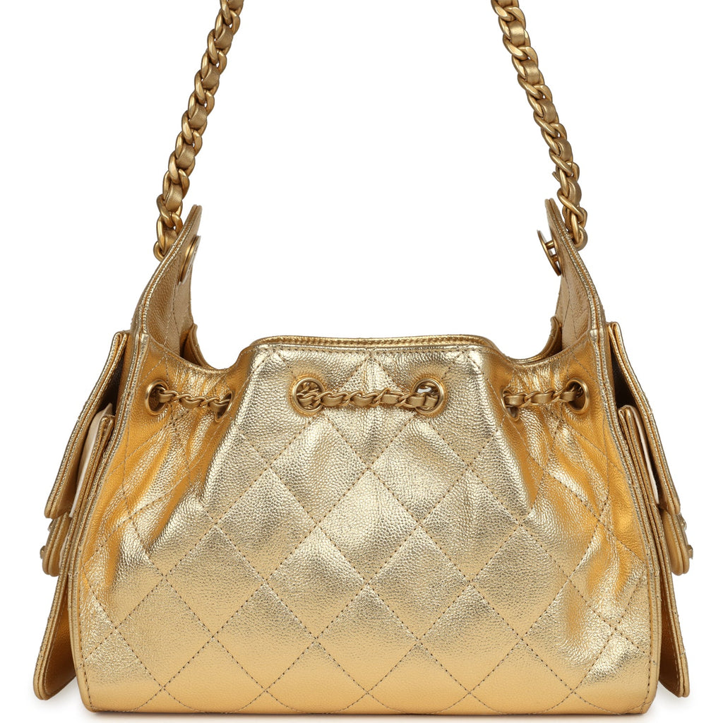 Chanel Mini 25 Hobo Bag Metallic Gold Caviar Caviar Antique Gold Hardware